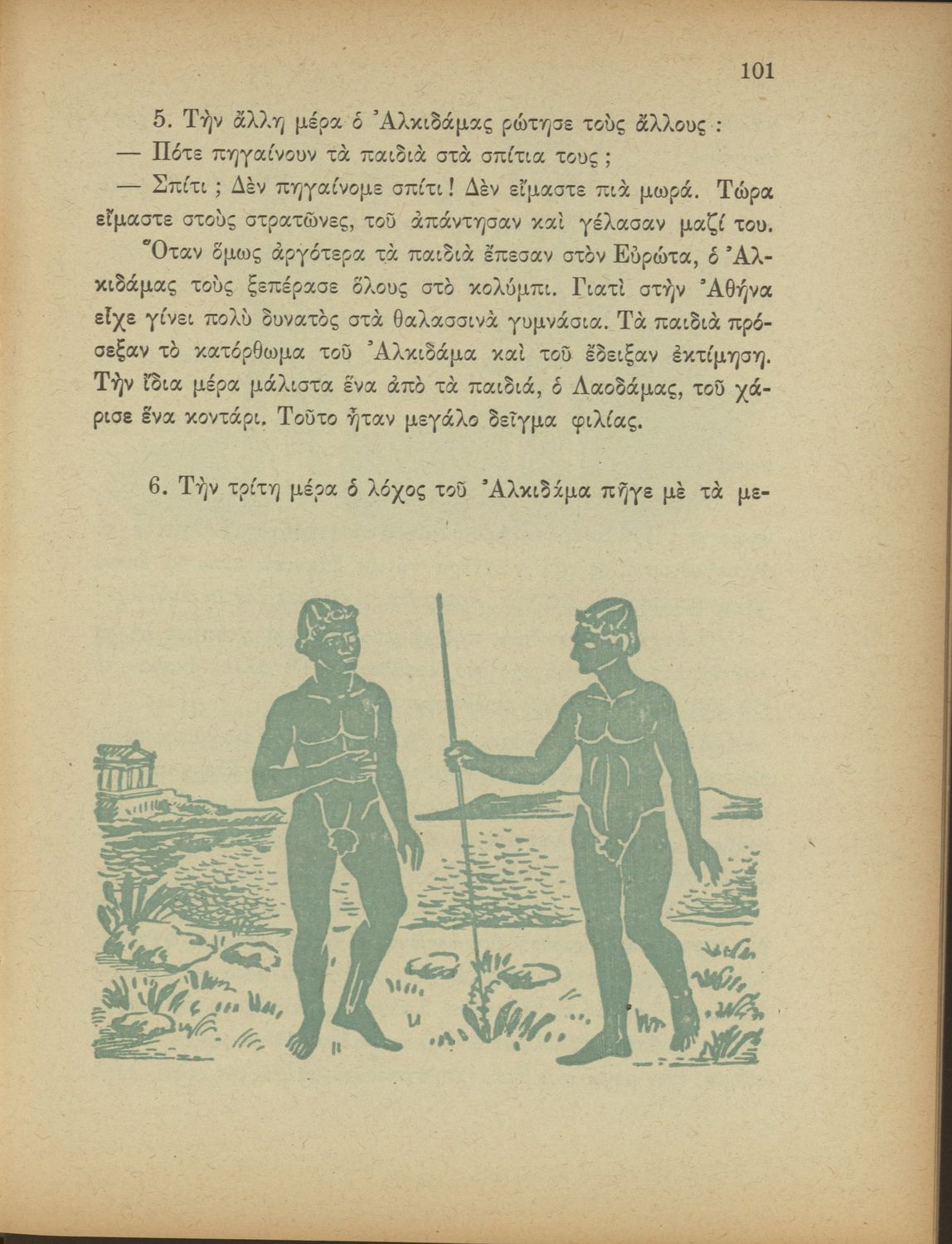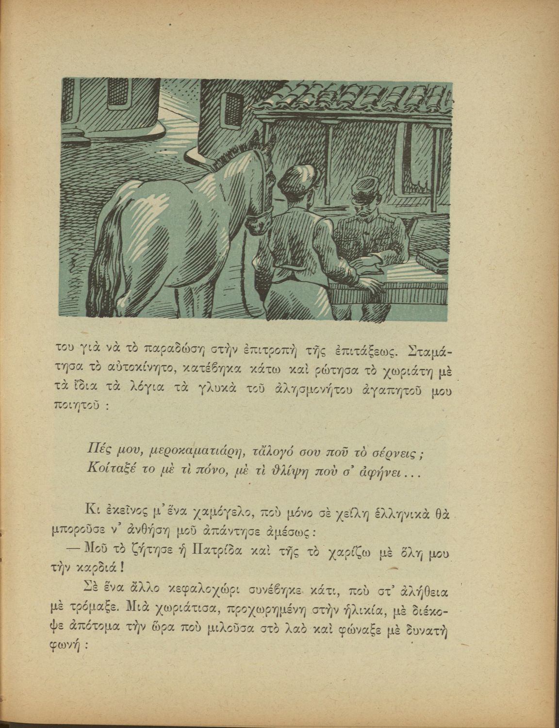 Αναγνωστικό για την Δ΄ τάξη του Δημοτικού. Περιλαμβάνει ένα κείμενο στο οποίο παρεμβάλλονται ποιήματα δημοτικά και Ελλήνων ποιητών.