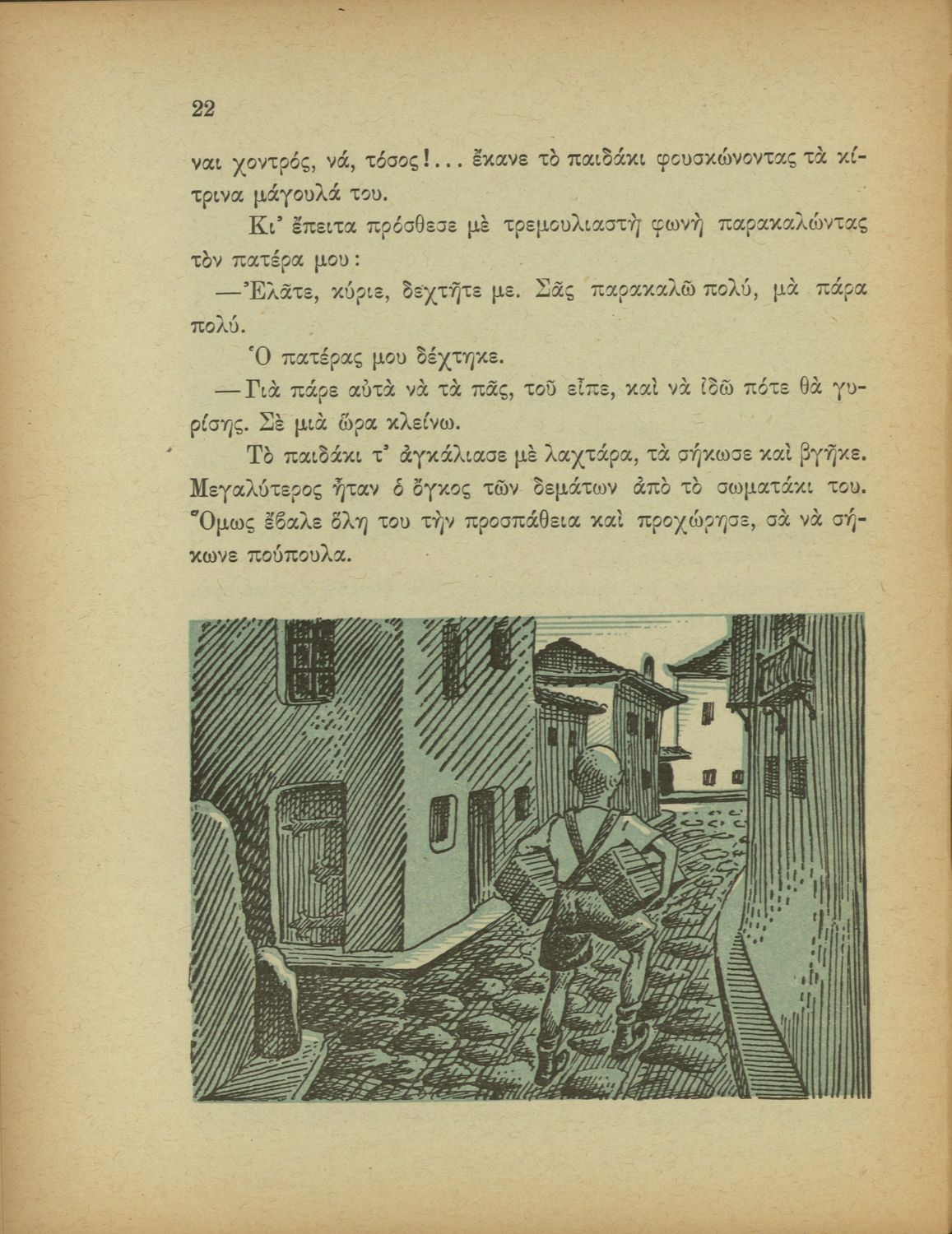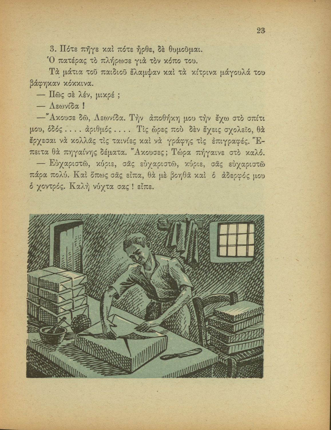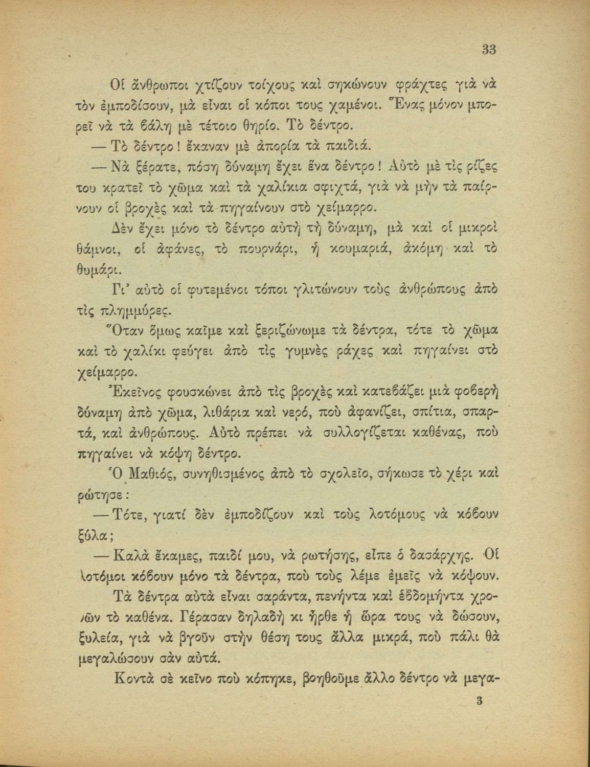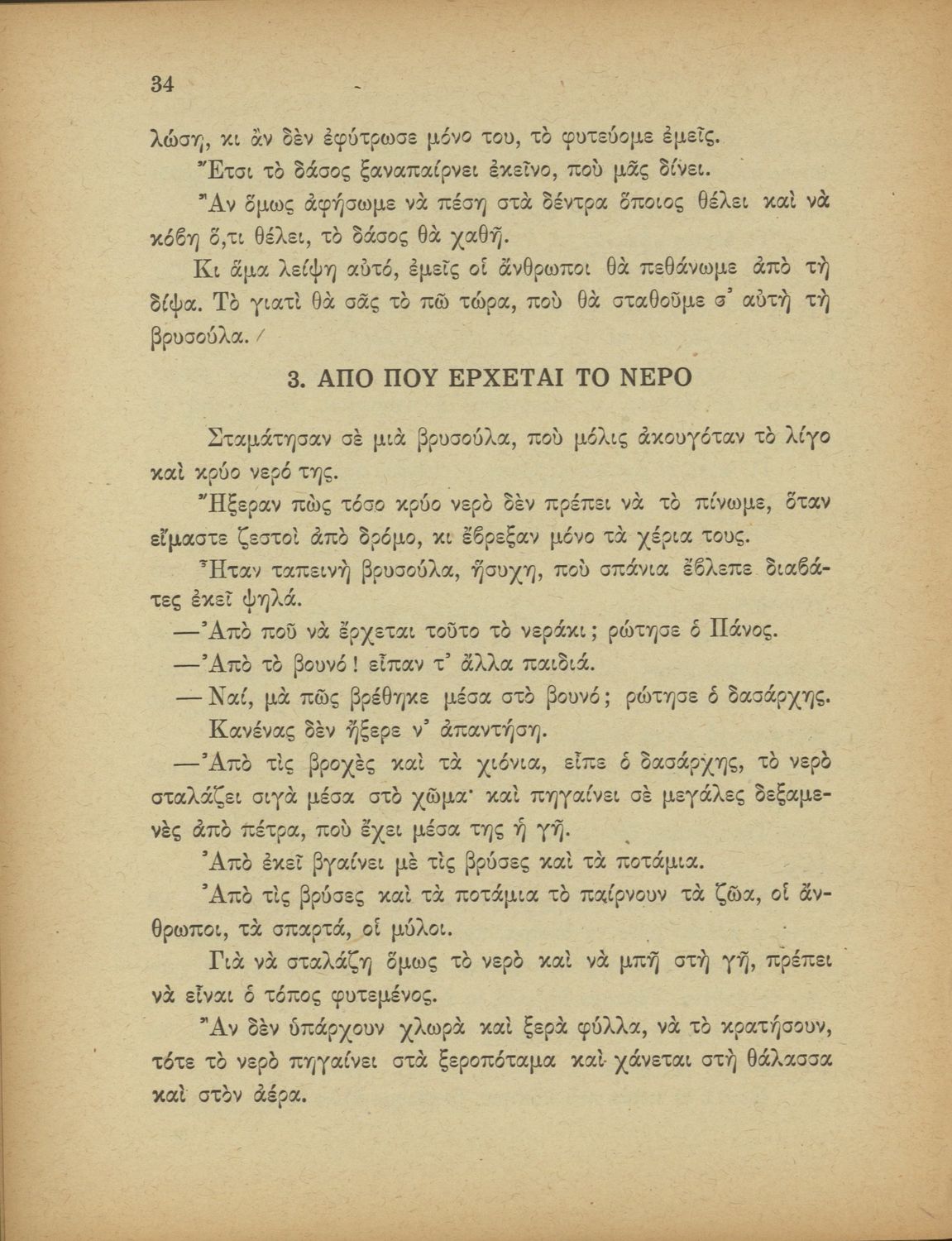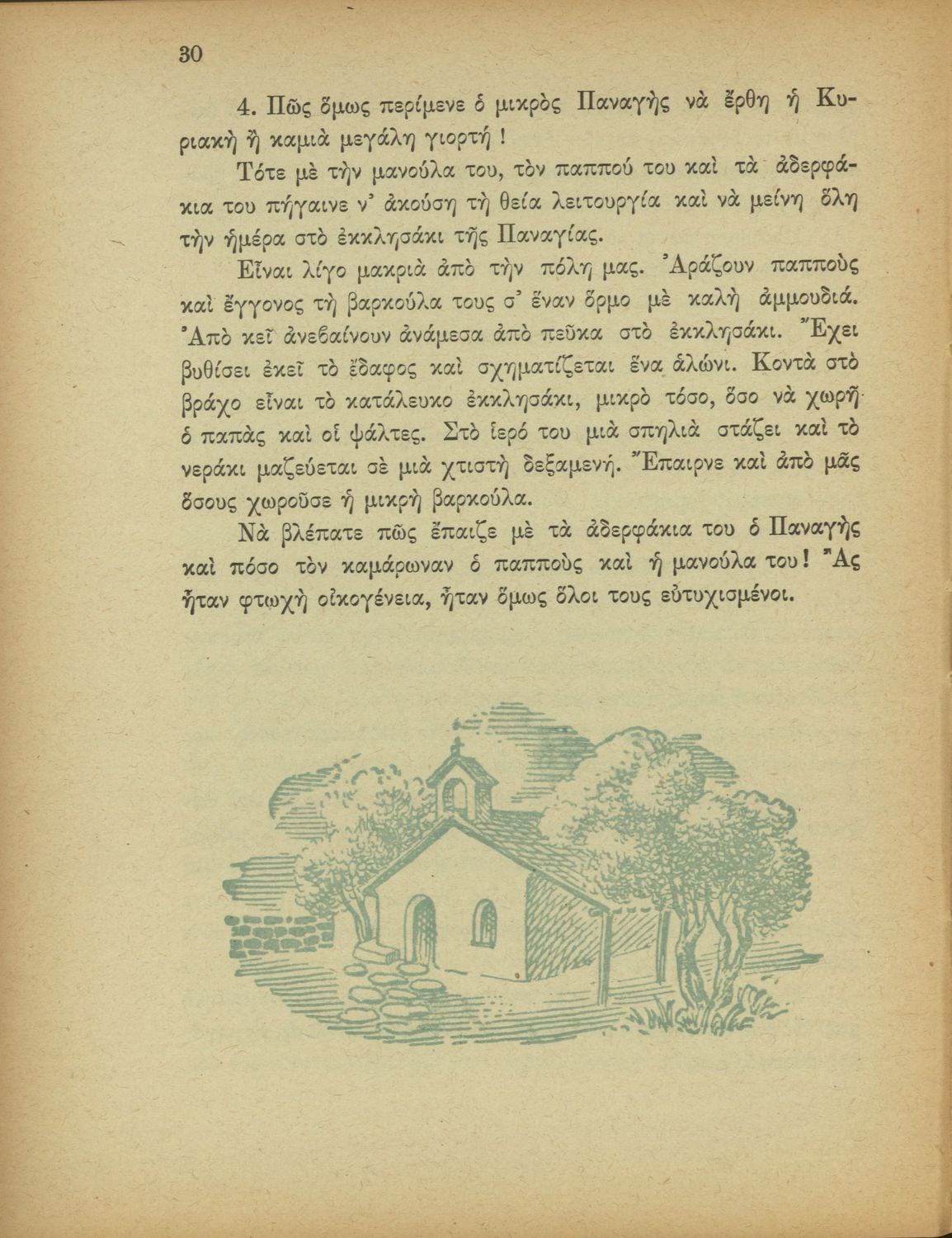 Αναγνωστικό Δ΄ Δημοτικού που περιέχει πεζά και ποιήματα με περιεχόμενο διδακτικό και ηθικοπλαστικό εμπνευσμένα από την ελληνική ιστορία και μυθολογία, και την αγροτική και κοινωνική ζωή.