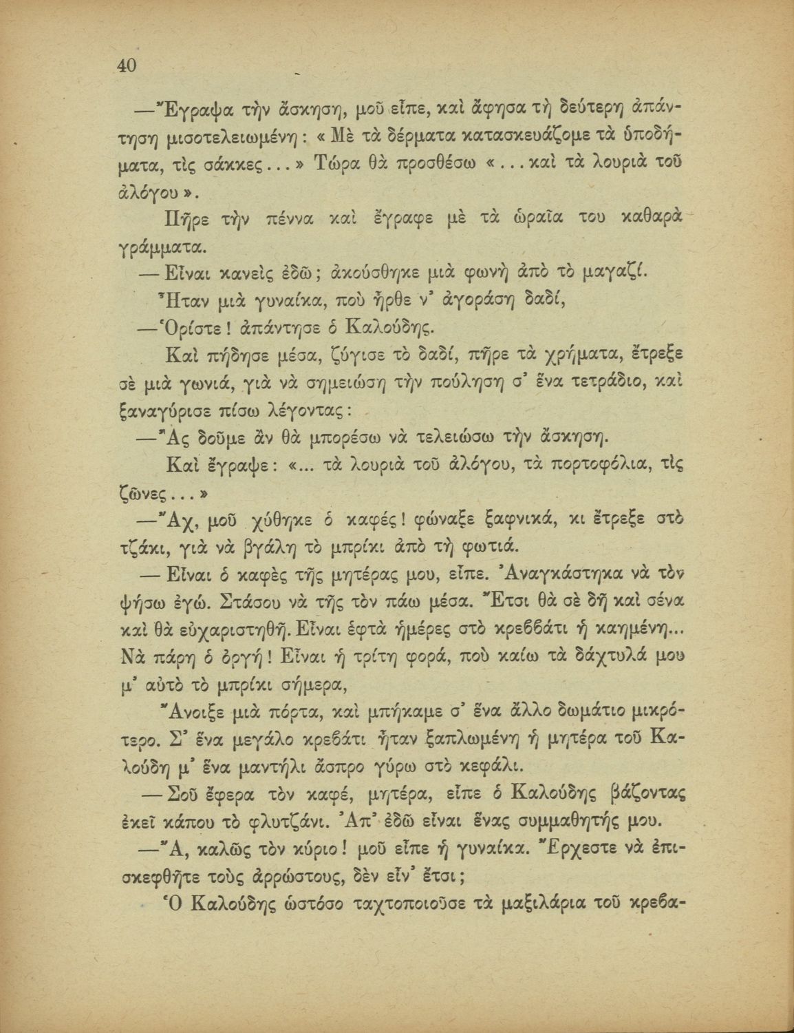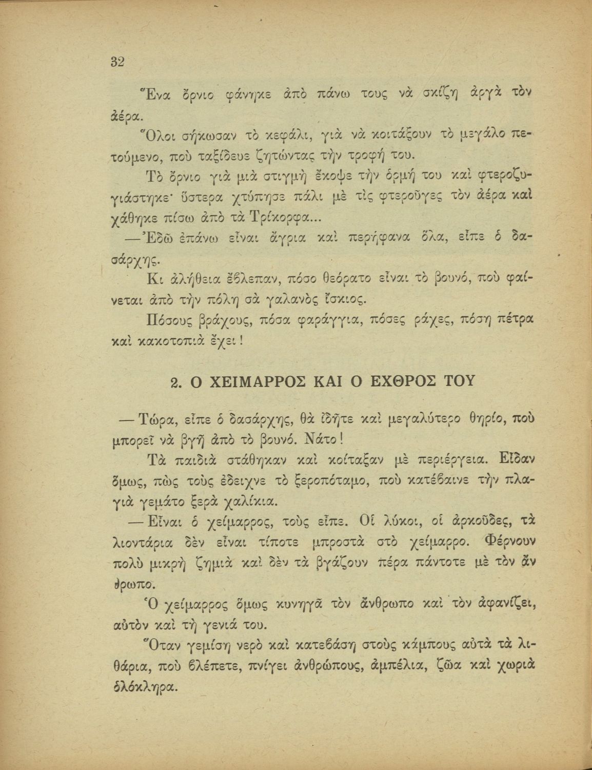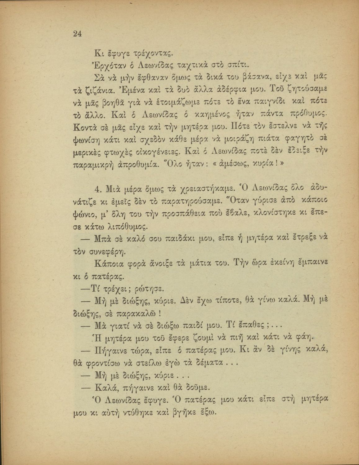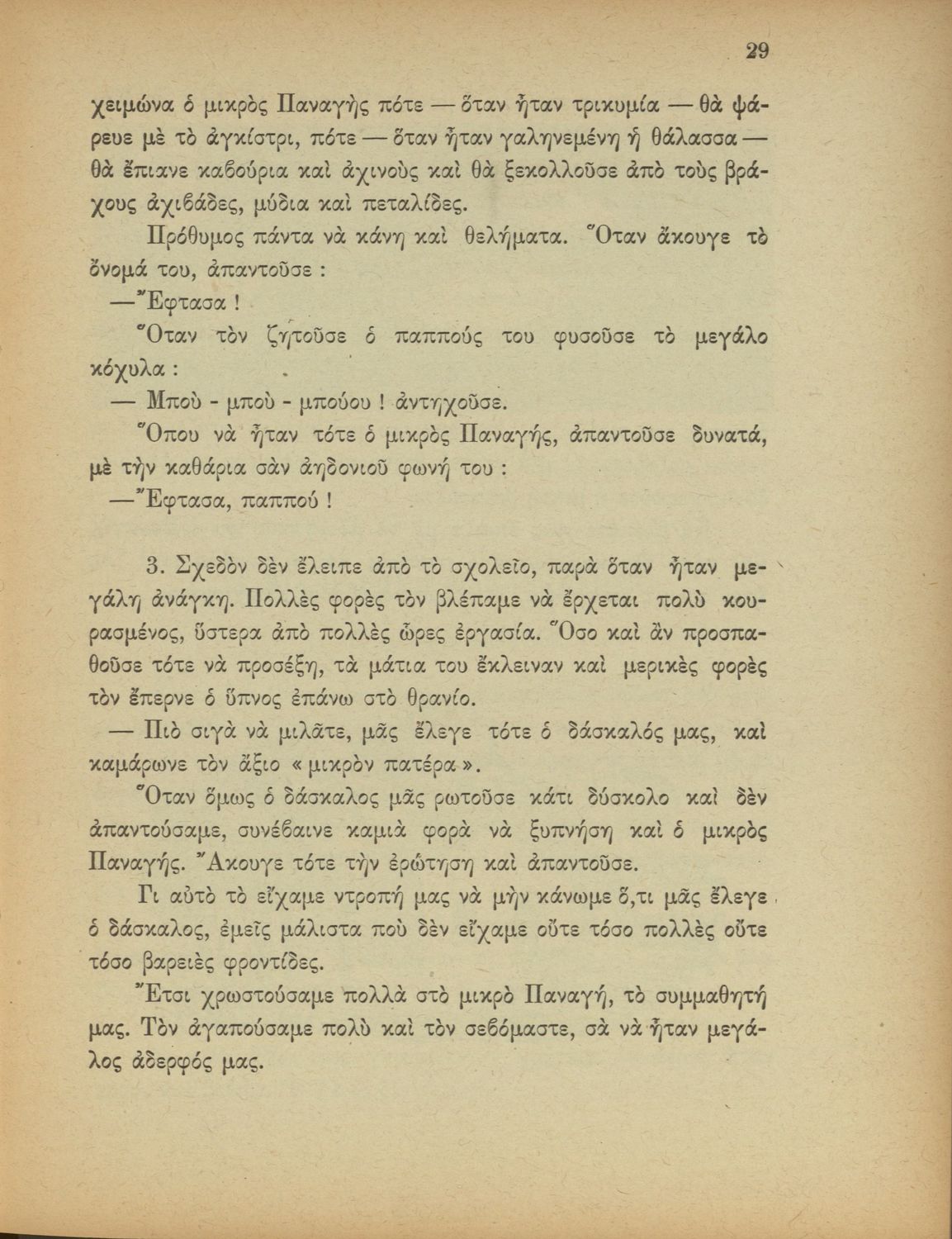 Αναγνωστικό Δ΄ Δημοτικού που περιέχει πεζά και ποιήματα με περιεχόμενο διδακτικό και ηθικοπλαστικό εμπνευσμένα από την ελληνική ιστορία και μυθολογία, και την αγροτική και κοινωνική ζωή.