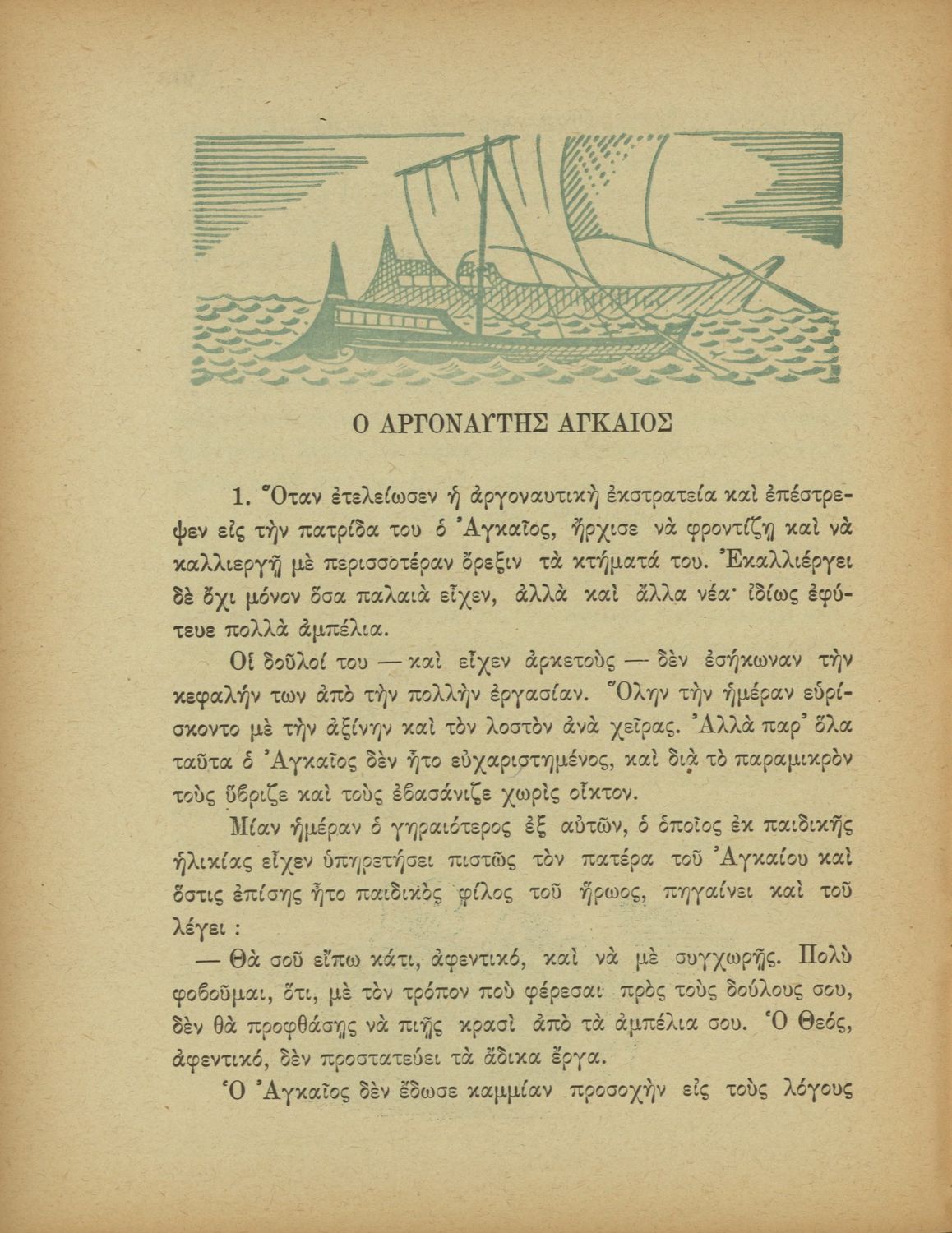 Αναγνωστικό Δ΄ Δημοτικού που περιέχει πεζά και ποιήματα εμπνευσμένα από την ελληνική ιστορία και μυθολογία, την κοινωνική ζωή και την ελληνική φύση.
