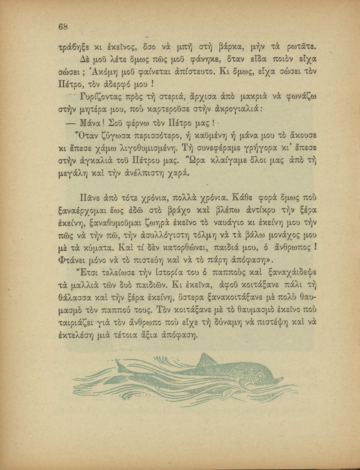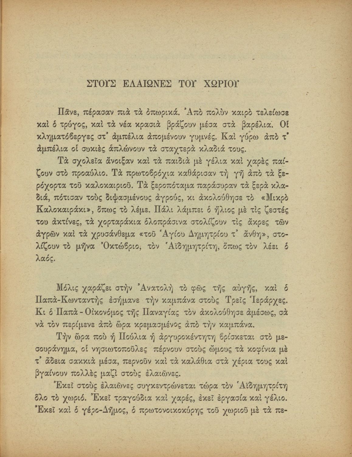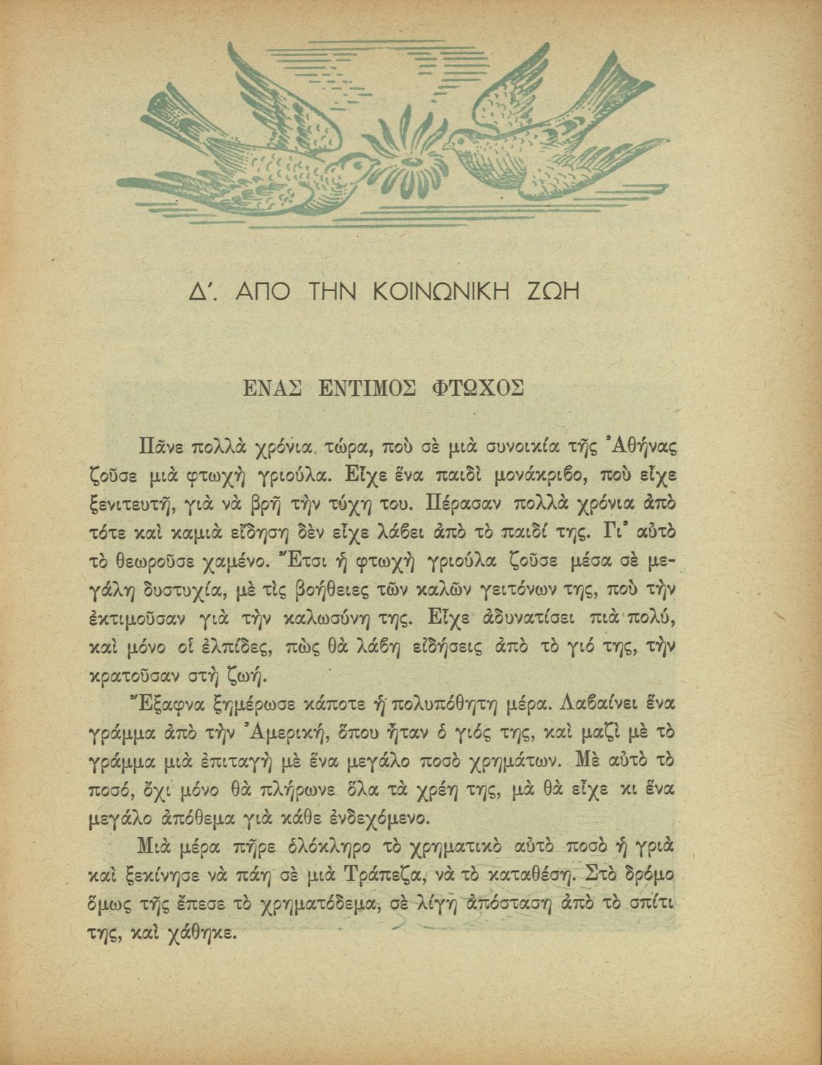 Αναγνωστικό Δ΄ Δημοτικού που περιέχει πεζά και ποιήματα με περιεχόμενο διδακτικό και ηθικοπλαστικό εμπνευσμένα από την ελληνική ιστορία και μυθολογία, και την αγροτική και κοινωνική ζωή.