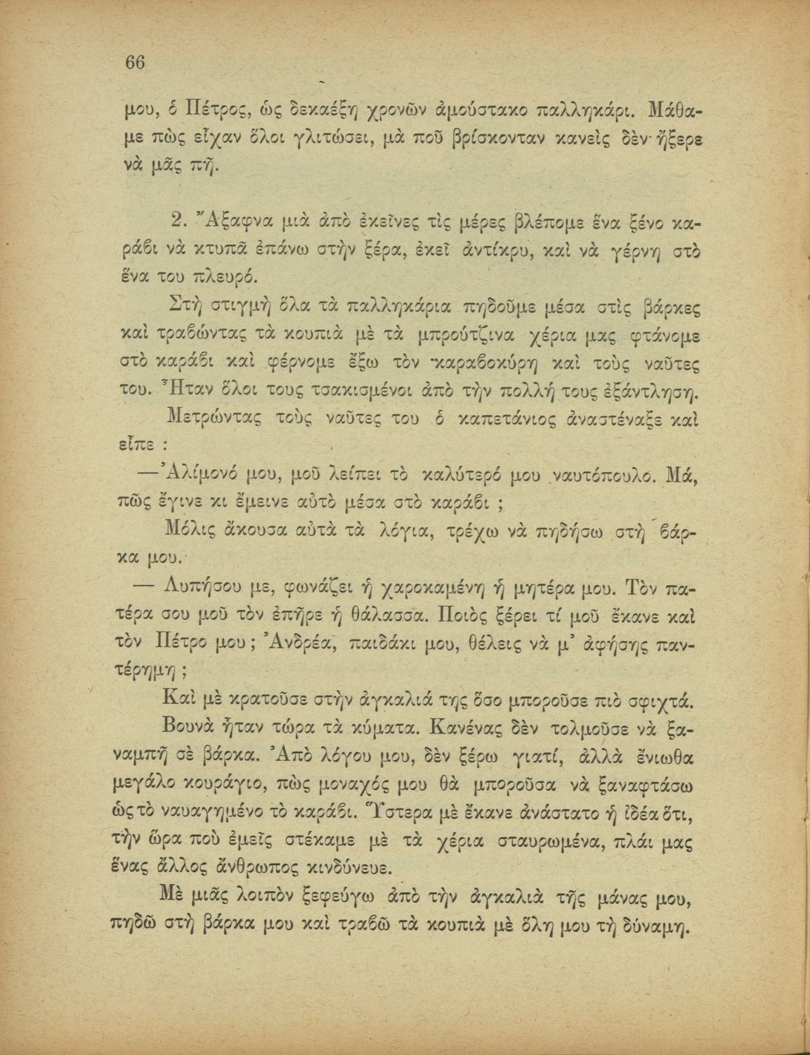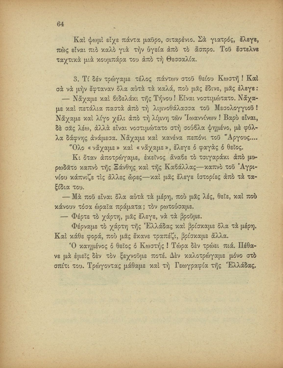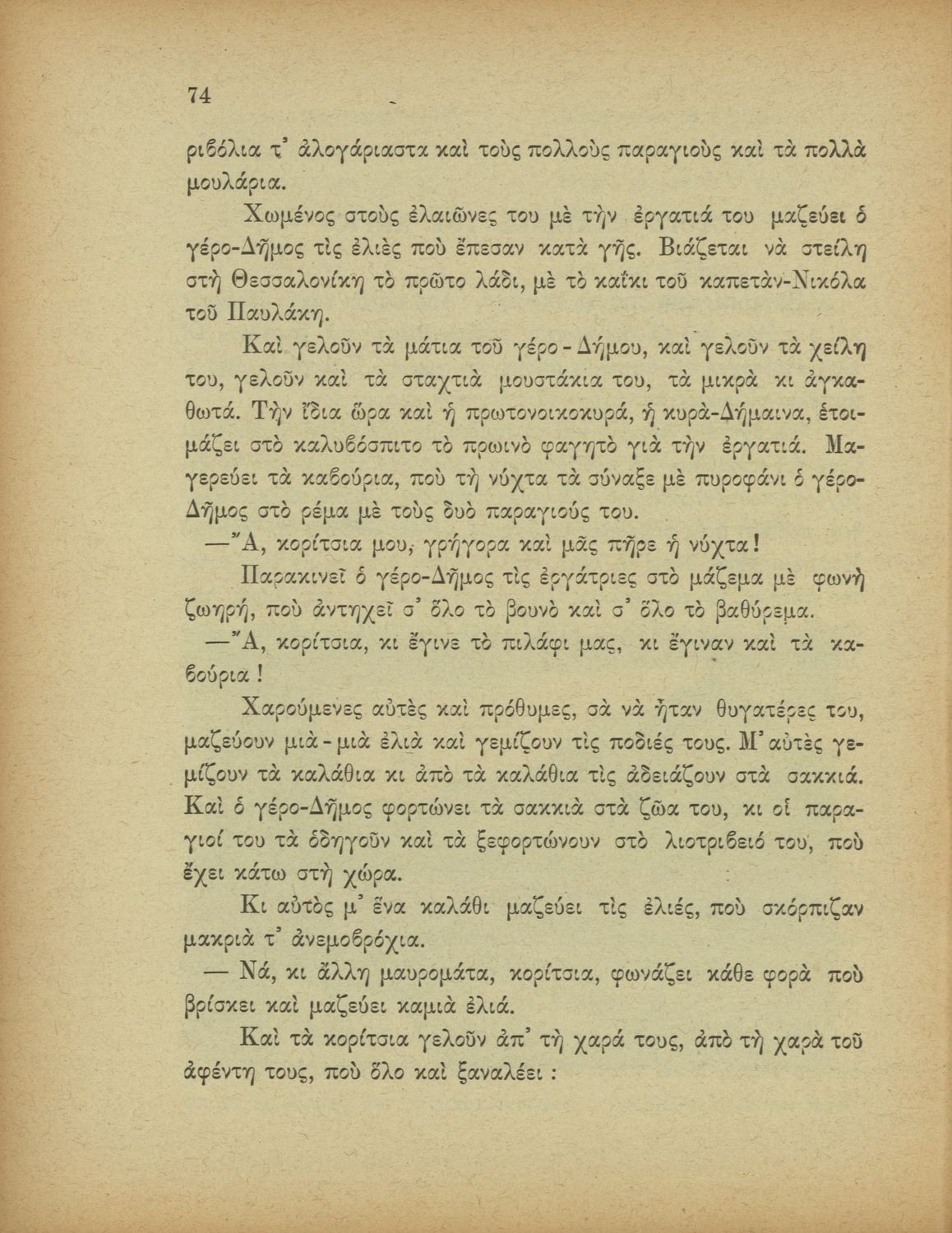 Αναγνωστικό Δ΄ Δημοτικού που περιέχει πεζά και ποιήματα με περιεχόμενο διδακτικό και ηθικοπλαστικό εμπνευσμένα από την ελληνική ιστορία και μυθολογία, και την αγροτική και κοινωνική ζωή.