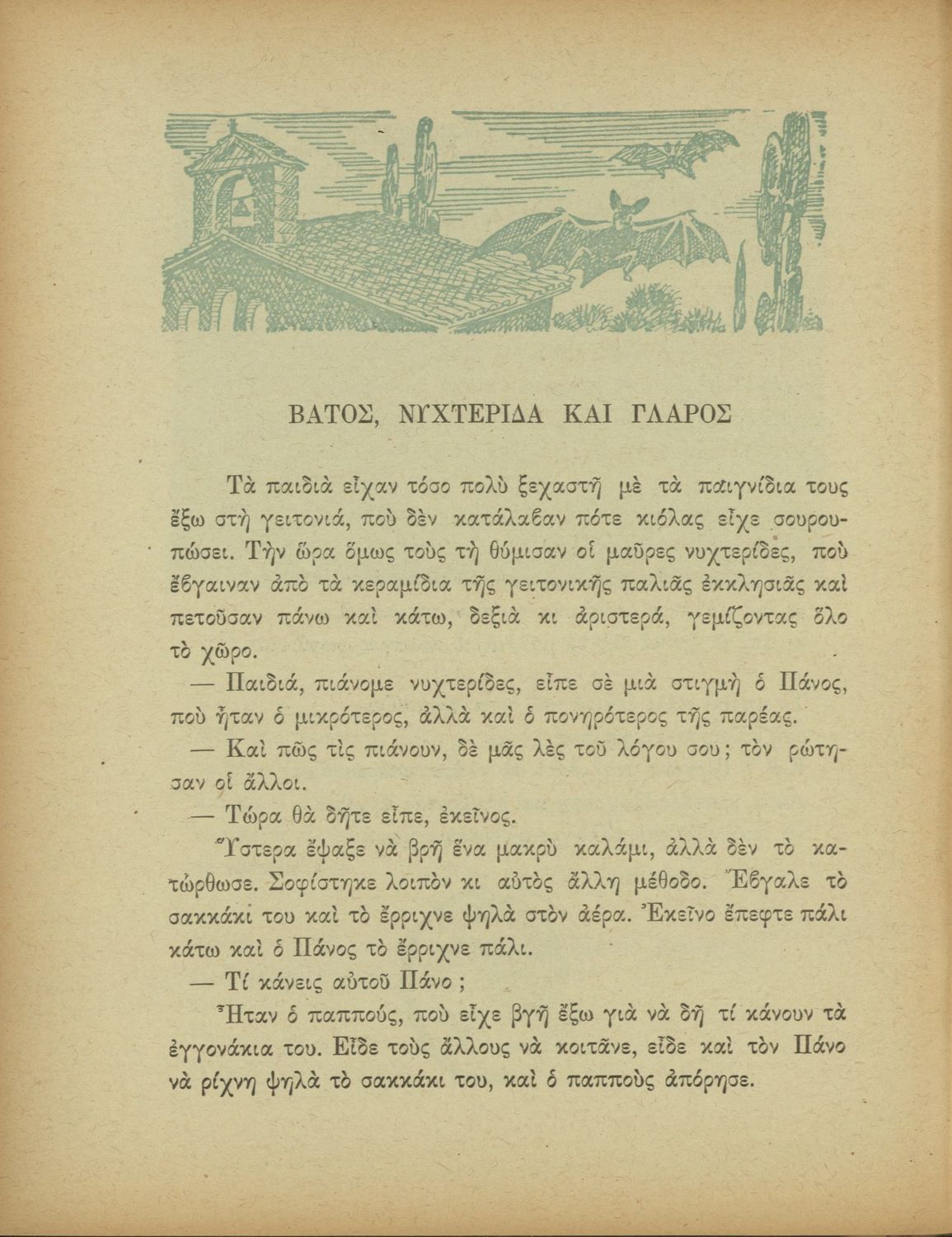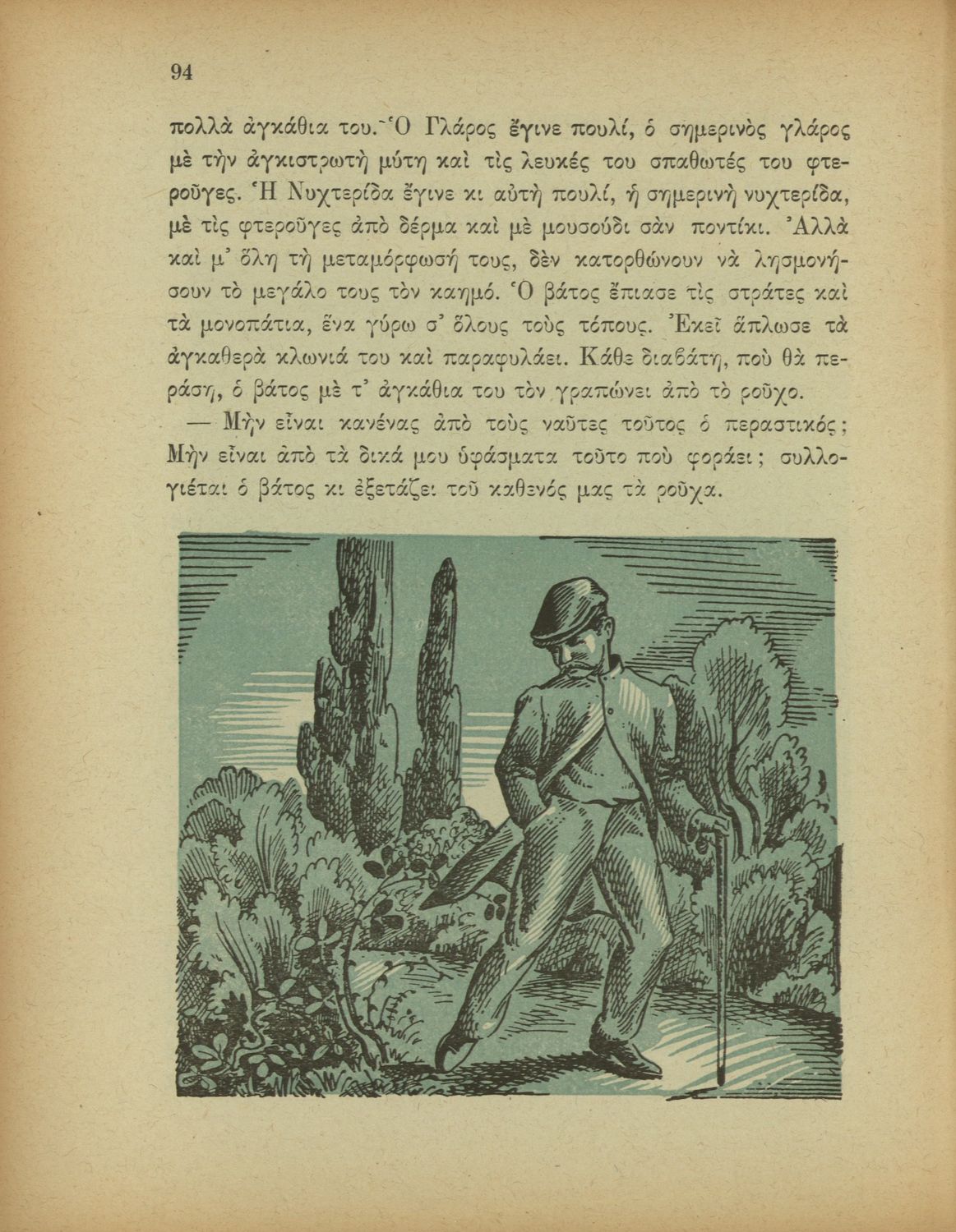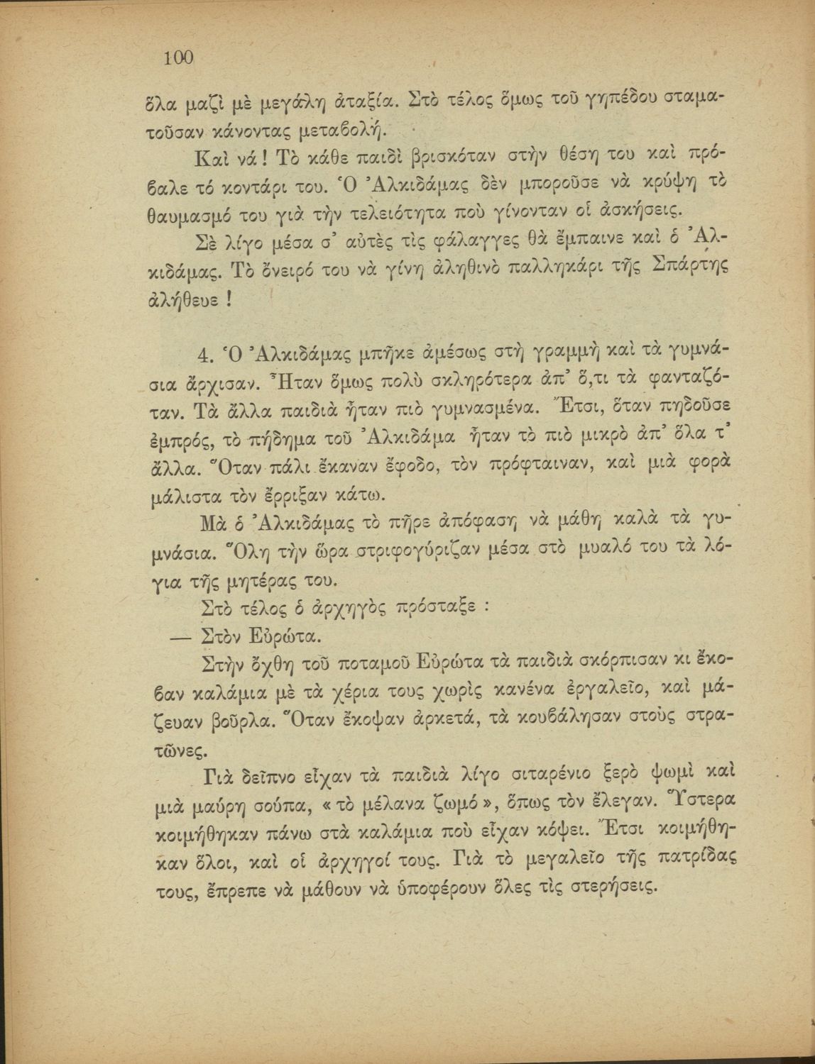 Αναγνωστικό Δ΄ Δημοτικού που περιέχει πεζά και ποιήματα με περιεχόμενο διδακτικό και ηθικοπλαστικό εμπνευσμένα από την ελληνική ιστορία και μυθολογία, και την αγροτική και κοινωνική ζωή.