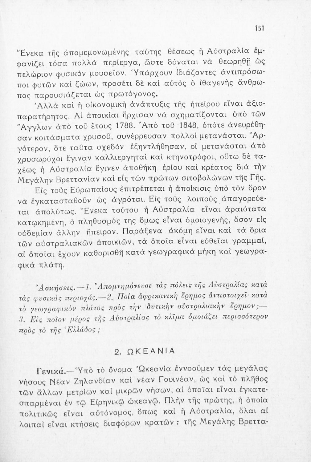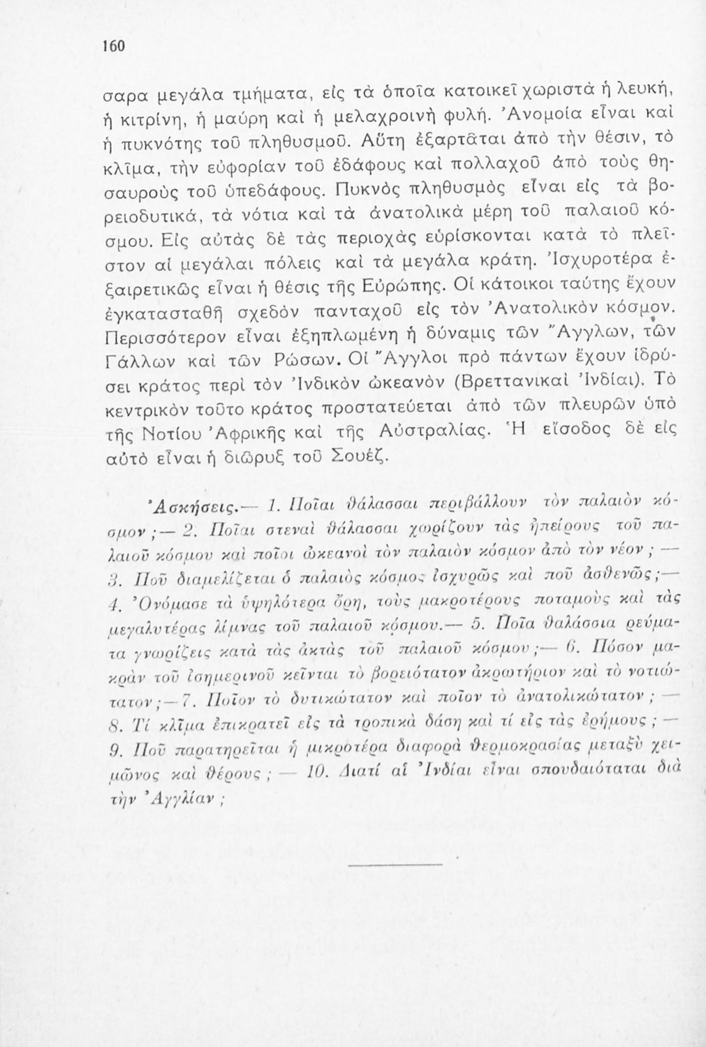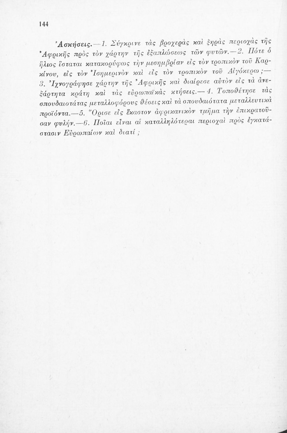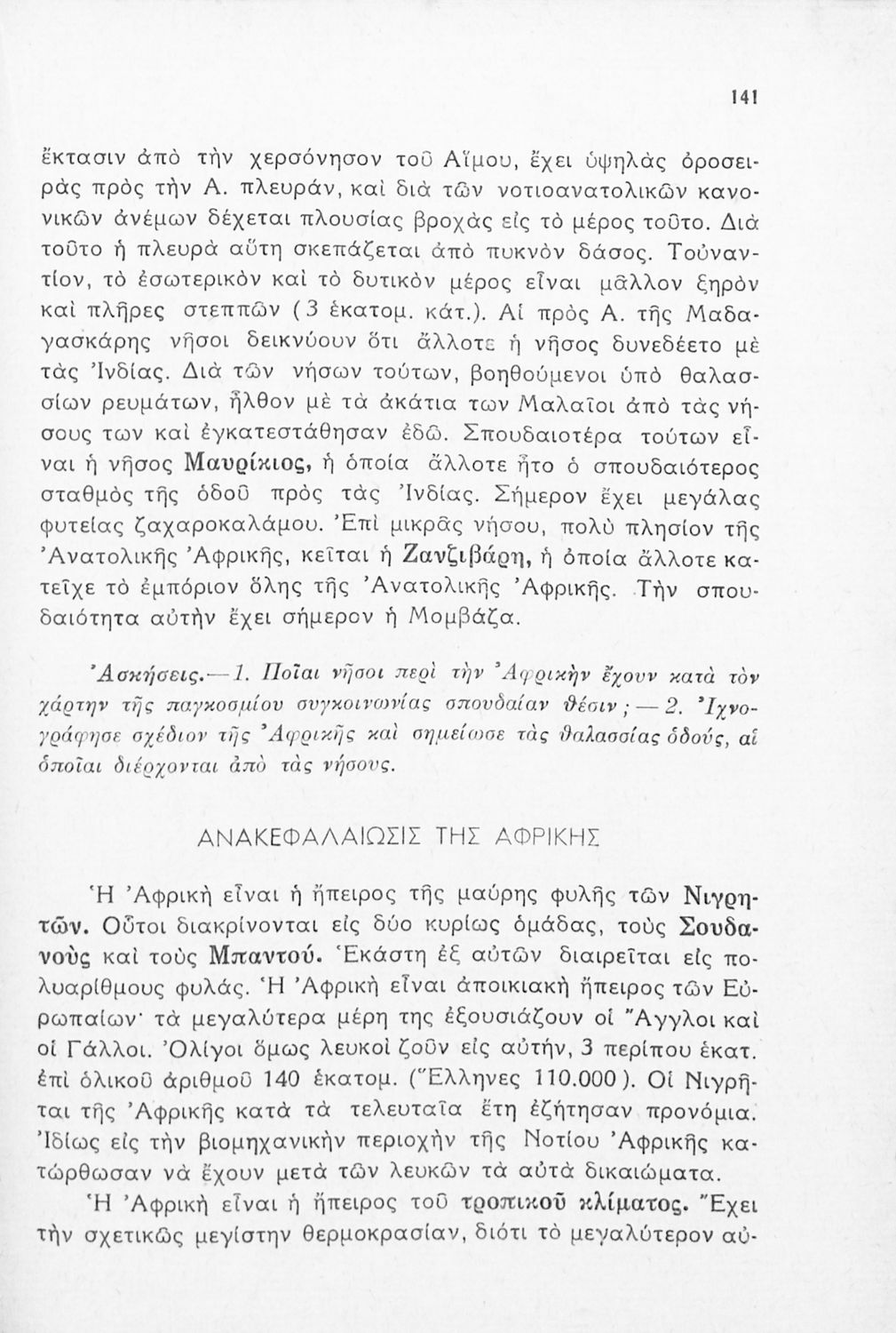 Βαθμίδα εκπαίδευσης: Δευτεροβάθμια Τάξη: Γ' Γυμνασίου Μάθημα: Γεωγραφία Γλώσσα: Απλή καθαρεύουσα Παρουσίαση περιεχομένου: Σχολικό εγχειρίδιο Γεωγραφίας Γ΄ Γυμνασίου που παρουσιάζει τις ηπείρους εκτός της Ευρώπης από γεωφυσική, πολιτική, πολιτισμική και οικονομική σκοπιά. Γίνεται ειδική αναφορά στις παγκόσμιες συγκοινωνίες. |