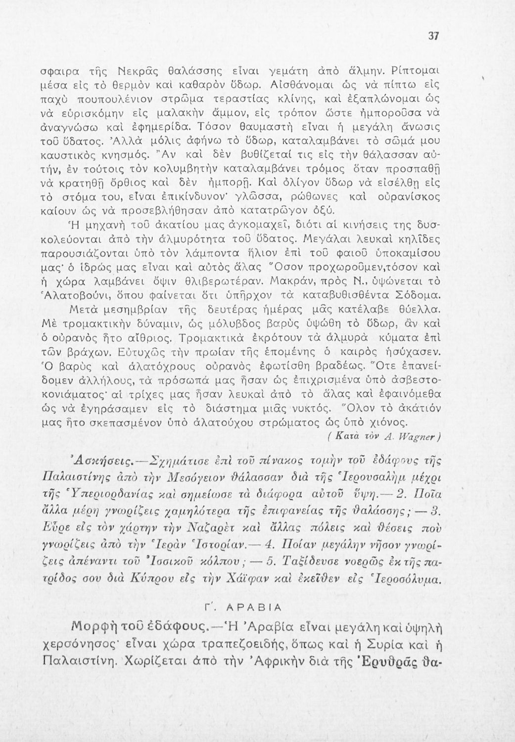 Βαθμίδα εκπαίδευσης: Δευτεροβάθμια Τάξη: Γ' Γυμνασίου Μάθημα: Γεωγραφία Γλώσσα: Απλή καθαρεύουσα Παρουσίαση περιεχομένου: Σχολικό εγχειρίδιο Γεωγραφίας Γ΄ Γυμνασίου που παρουσιάζει τις ηπείρους εκτός της Ευρώπης από γεωφυσική, πολιτική, πολιτισμική και οικονομική σκοπιά. Γίνεται ειδική αναφορά στις παγκόσμιες συγκοινωνίες. |