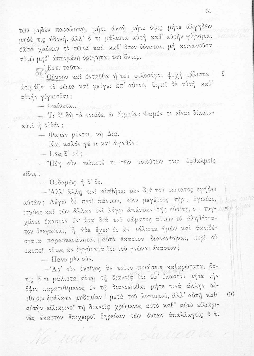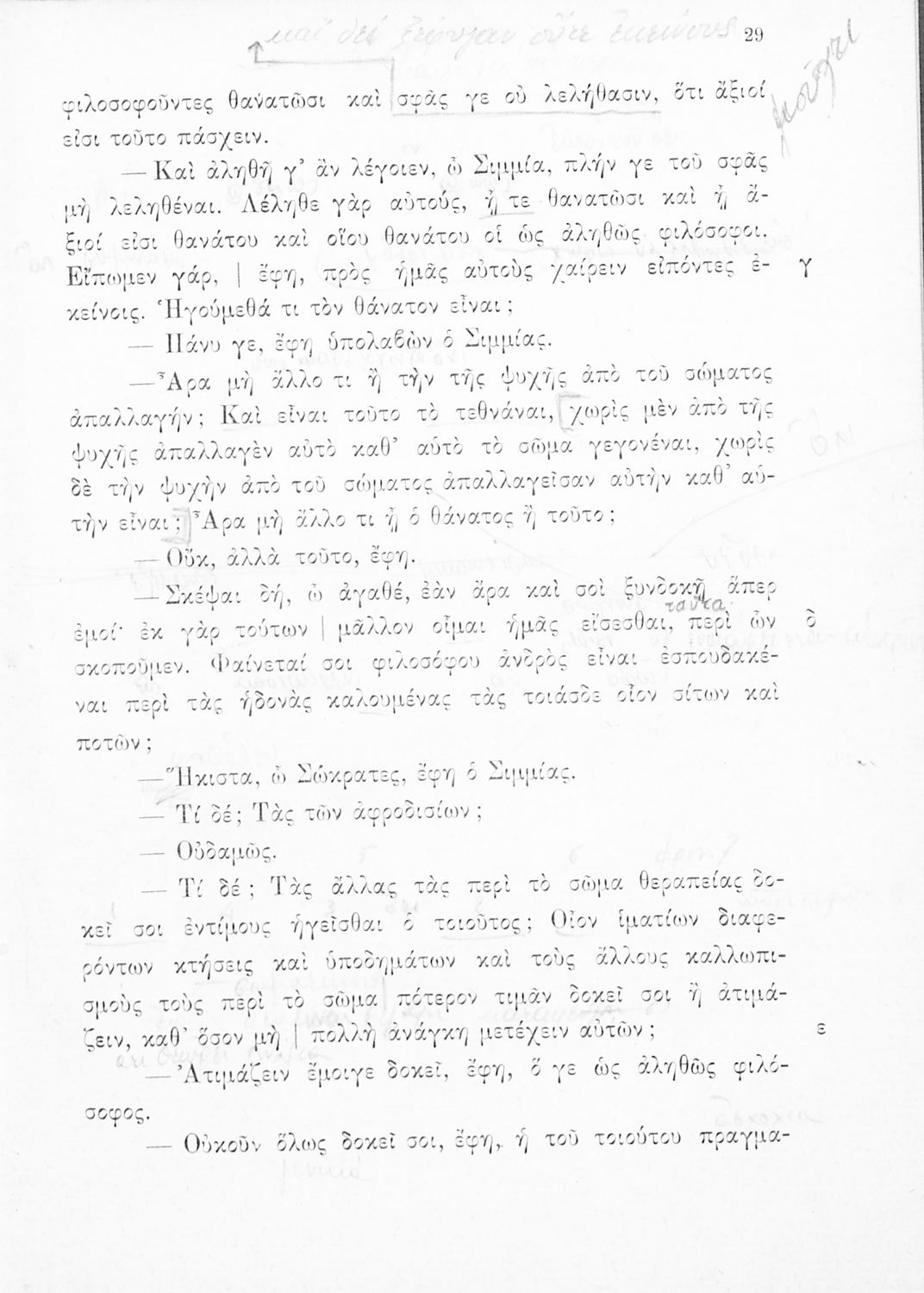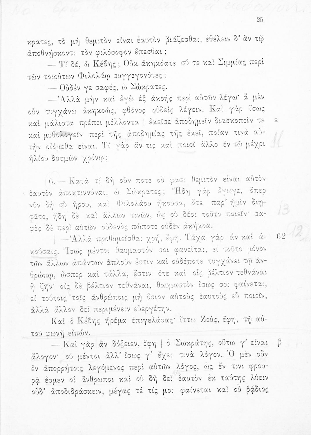 Σχολικό εγχειρίδιο Αρχαίων Ελληνικών της ΣΤ΄ Γυμνασίου το οποίο περιλαμβάνει το έργο του Πλάτωνα Φαίδων και ερμηνευτικές σημειώσεις.