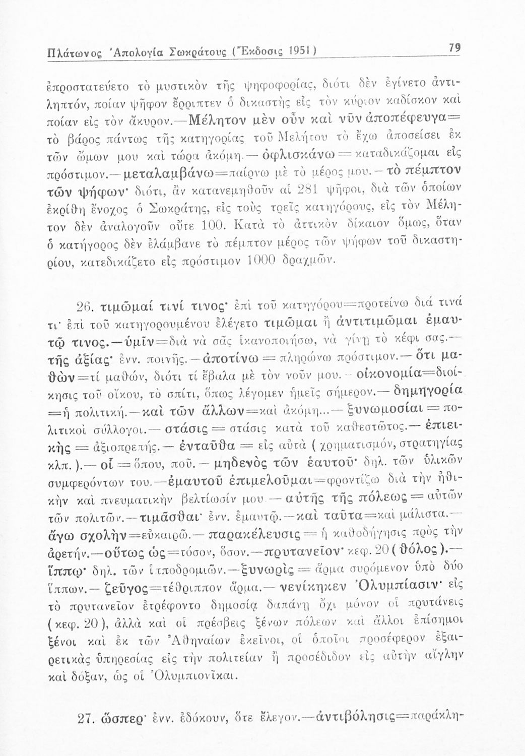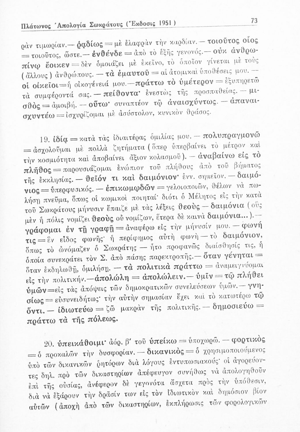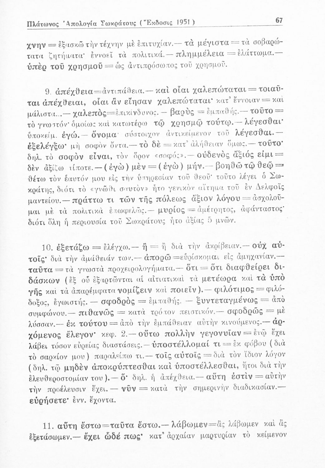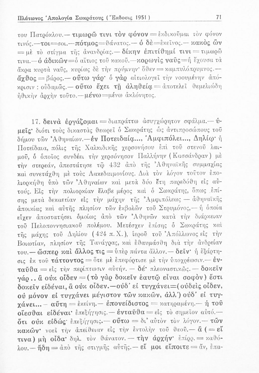 Σχολικό εγχειρίδιο της Γ΄ Γυμνασίου για το μάθημα των Αρχαίων. Περιέχει το πρωτότυπο κείμενο από το έργο του Πλάτωνα, Απολογία του Σωκράτη, με ερμηνευτικές και πραγματολογικές παρατηρήσεις του συγγραφέα.