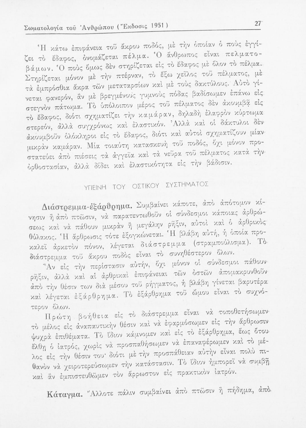 245 0# _aΣωματολογία του ανθρώπου μετά στοιχείων υγιεινής για την Ε΄ τάξιν των Εξαταξίων Γυμνασίων