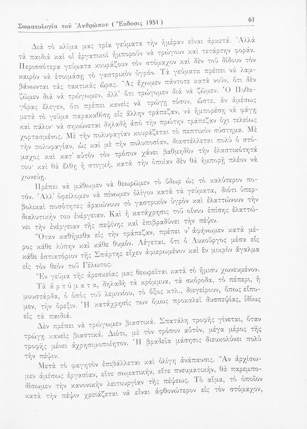 Βαθμίδα εκπαίδευσης: Δευτεροβάθμια Τάξη: Ε' Γυμνασίου Μάθημα: Ανθρωπολογία, Υγιεινή Γλώσσα: Απλή καθαρεύουσα Παρουσίαση περιεχομένου: Σχολικό εγχειρίδιο Ανθρωπολογίας για την Ε΄ τάξη των Εξαταξίων Γυμνασίων που εστιάζει στην ανατομία και φυσιολογία του ανθρώπινου σώματος καθώς και στα μικρόβια και νοσήματα. |