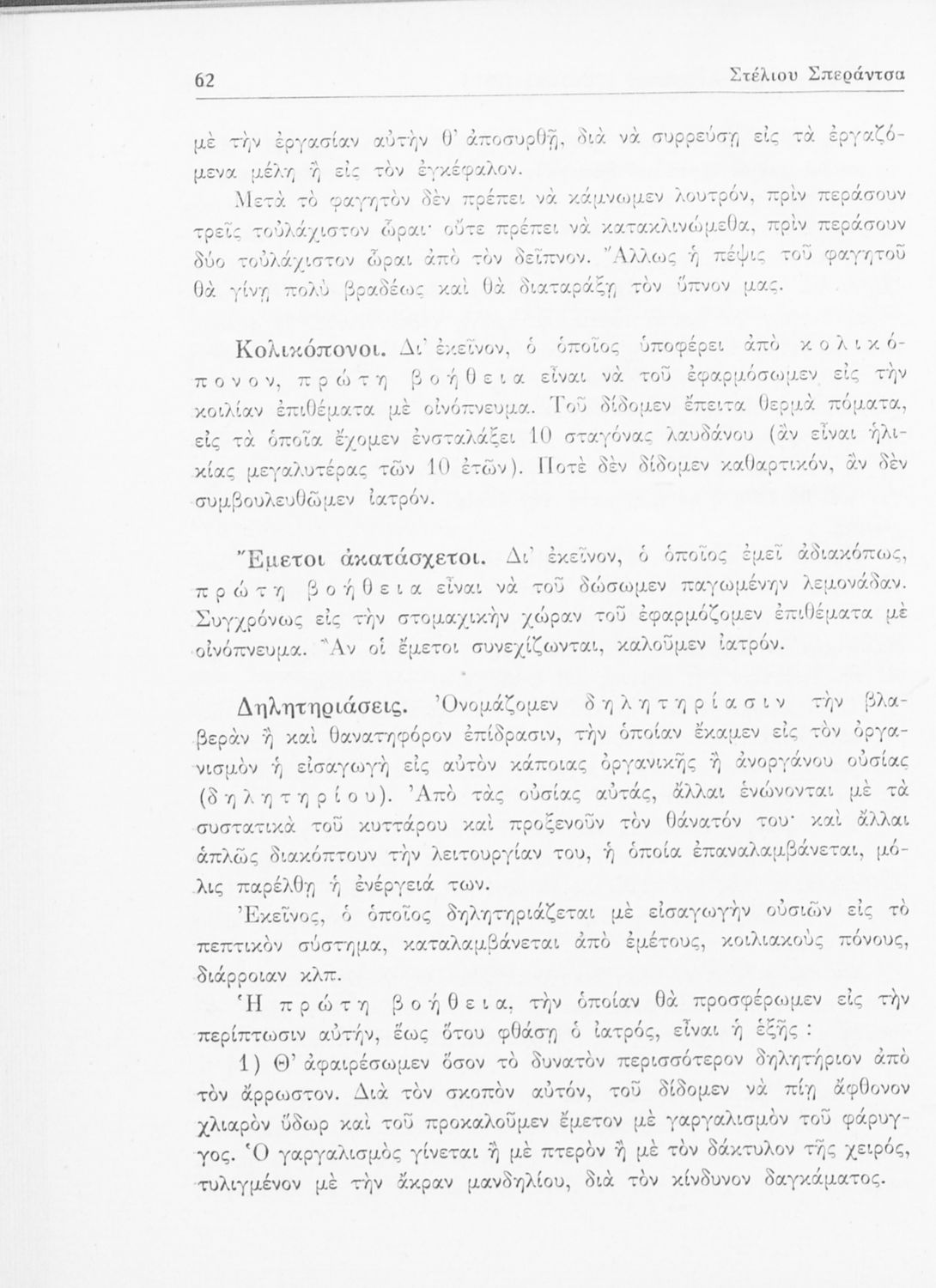 Κωδικός αναγνώρισης: 02-00918 Τίτλος: Σωματολογία του ανθρώπου μετά στοιχείων υγιεινής για την Ε΄ τάξιν των Εξαταξίων Γυμνασίων Συγγραφέας: Στέλιος Σπεράντσας Μέγεθος και υπόστρωμα: Σχολικό εγχειρίδιο, 168 σελίδες. Σκίτσα (ασπρόμαυρα). |