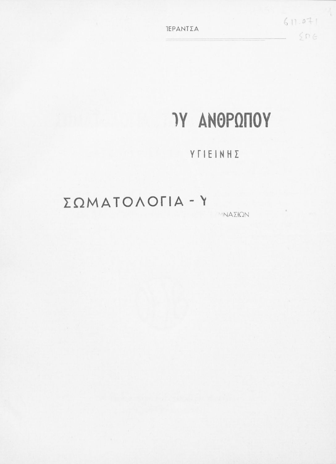 Βαθμίδα εκπαίδευσης: Δευτεροβάθμια Τάξη: Ε' Γυμνασίου Μάθημα: Ανθρωπολογία, Υγιεινή Γλώσσα: Απλή καθαρεύουσα Παρουσίαση περιεχομένου: Σχολικό εγχειρίδιο Ανθρωπολογίας για την Ε΄ τάξη των Εξαταξίων Γυμνασίων που εστιάζει στην ανατομία και φυσιολογία του ανθρώπινου σώματος καθώς και στα μικρόβια και νοσήματα. |