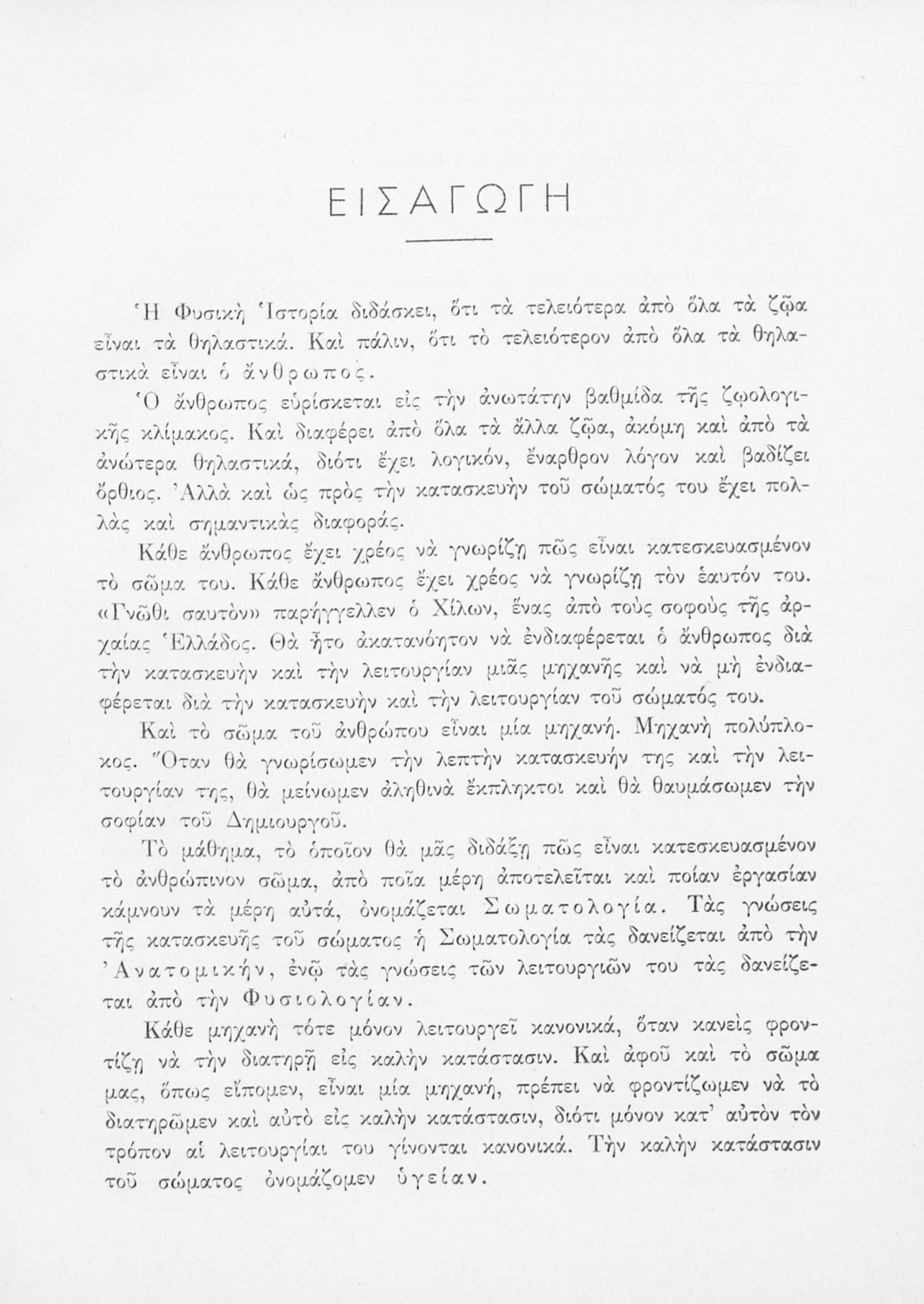 LDR 01151 2200169 4500 035 ## _a02-00918 040 ## _aΕλληνικό Λογοτεχνικό και Ιστορικό Αρχείο 041 ## _ael 100 ## _aΣτέλιος Σπεράντσας 245 0# _aΣωματολογία του ανθρώπου μετά στοιχείων υγιεινής για την Ε΄ τάξιν των Εξαταξίων Γυμνασίων 260 ## _aΑθήνα _bΟργανισμός Εκδόσεως Σχολικών Βιβλίων _c1951 300 ## _a168 _bΣκίτσα (ασπρόμαυρα) 520 ## _aΣχολικό εγχειρίδιο Ανθρωπολογίας για την Ε΄ τάξη των Εξαταξίων Γυμνασίων που εστιάζει στην ανατομία και φυσιολογία του ανθρώπινου σώματος καθώς και στα μικρόβια και νοσήματα. 521 ## _aΕ' Γυμνασίου 522 ## _aΕλλάδα 546 ## _aΑπλή καθαρεύουσα 650 #4 _aΑίμα _aΑκοή _aΑναπνοή _aΚαρδιά _aΝεύρα _aΟστά _aΠεπτικό σύστημα _aΣκελετός