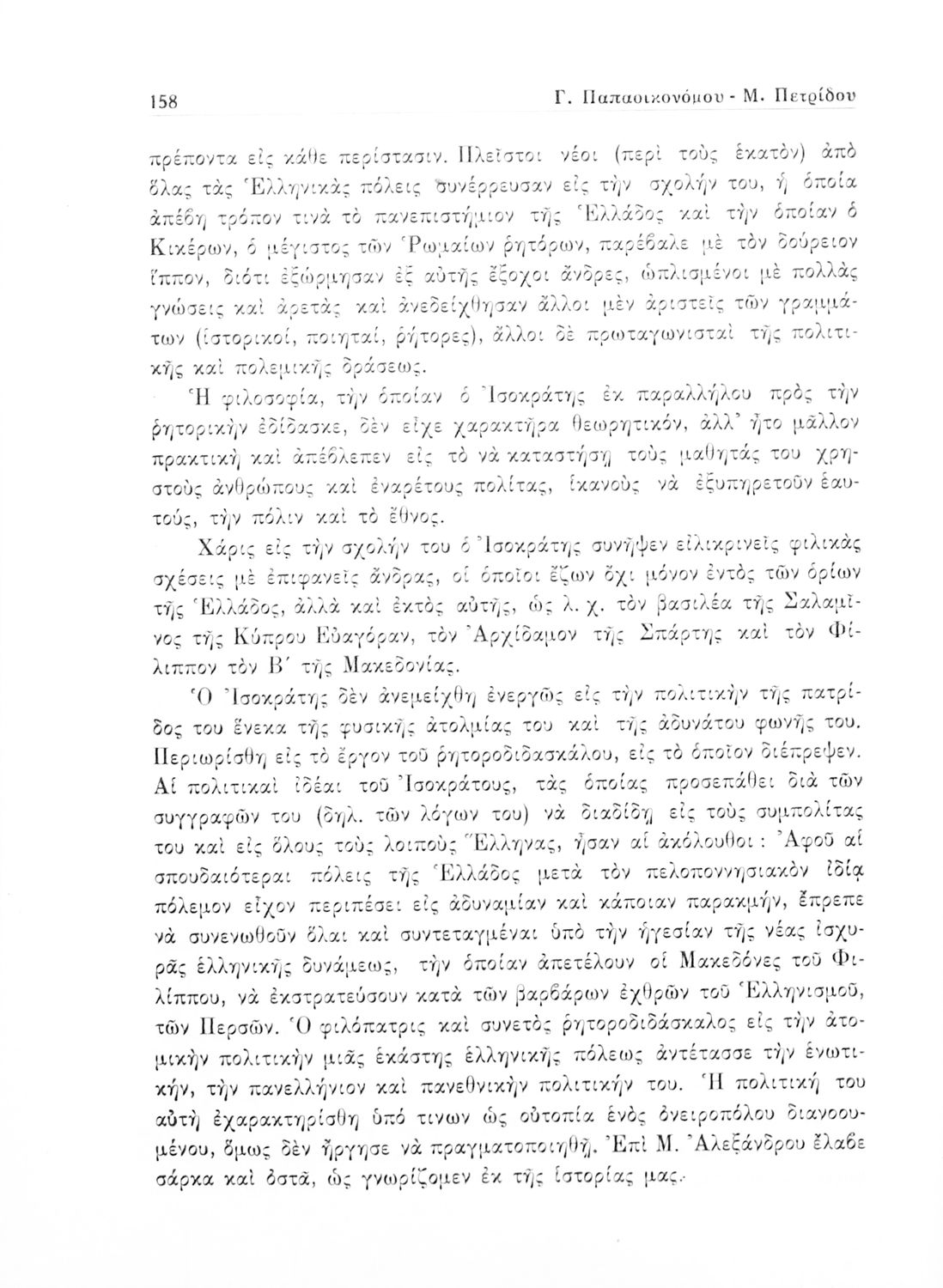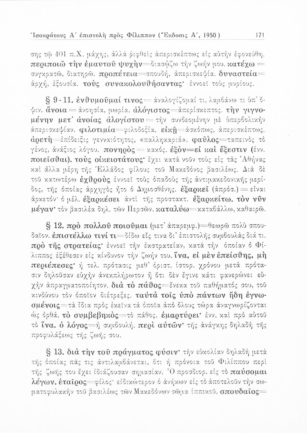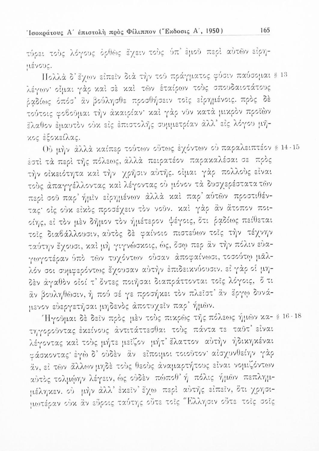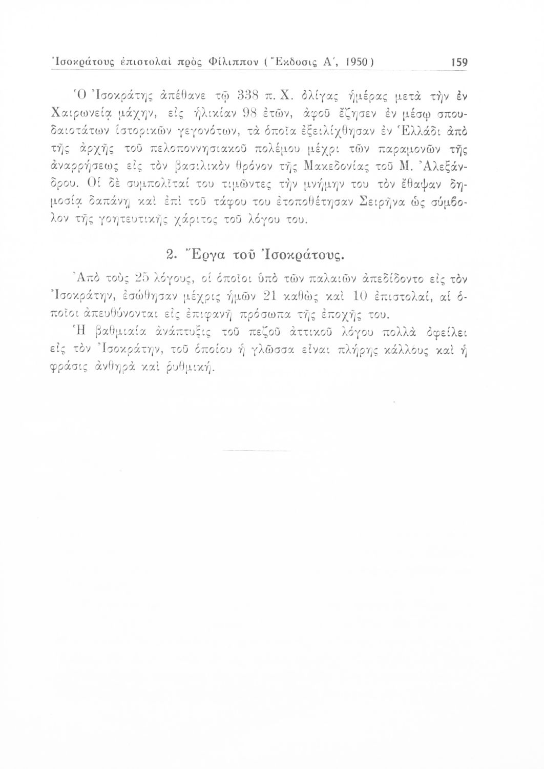 Σχολικό εγχειρίδιο Αρχαίων Ελληνικών Δ΄ Γυμνασίου που περιλαμβάνει εισαγωγή στη ζωή και το έργο του Ισοκράτη, τις επιστολές Α΄ και Β΄ προς Φίλιππο και ερμηνευτικές παρατηρήσεις.