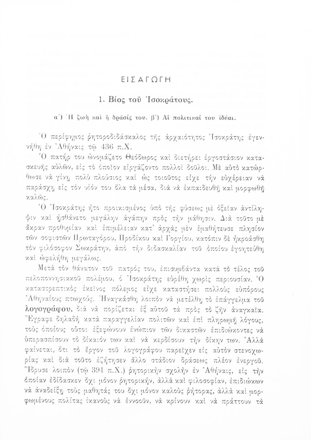 Βαθμίδα εκπαίδευσης: Δευτεροβάθμια Τάξη: Δ' Γυμνασίου Μάθημα: Αρχαία Ελληνικά Γλώσσα: Καθαρεύουσα Παρουσίαση περιεχομένου: Σχολικό εγχειρίδιο Αρχαίων Ελληνικών Δ΄ Γυμνασίου που περιλαμβάνει εισαγωγή στη ζωή και το έργο του Ισοκράτη, τις επιστολές Α΄ και Β΄ προς Φίλιππο και ερμηνευτικές παρατηρήσεις. |