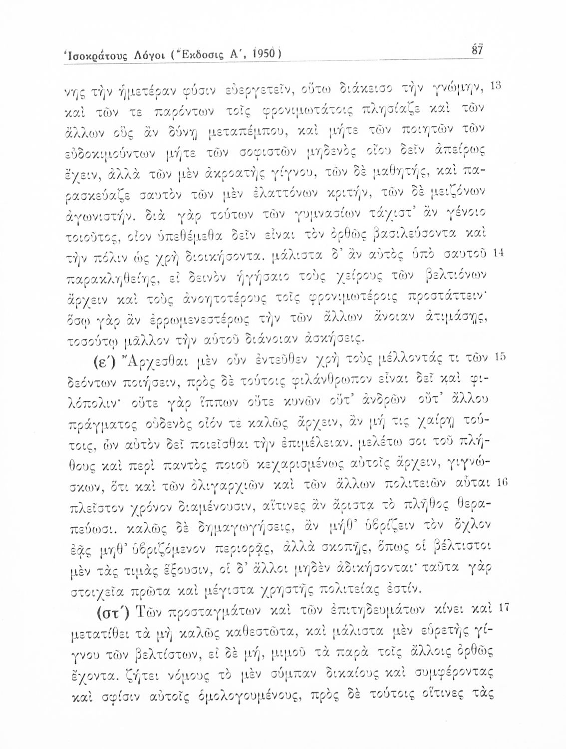 Ισοκράτης, Νικόλαος Ι. Ζαφειρίου (σχόλια)