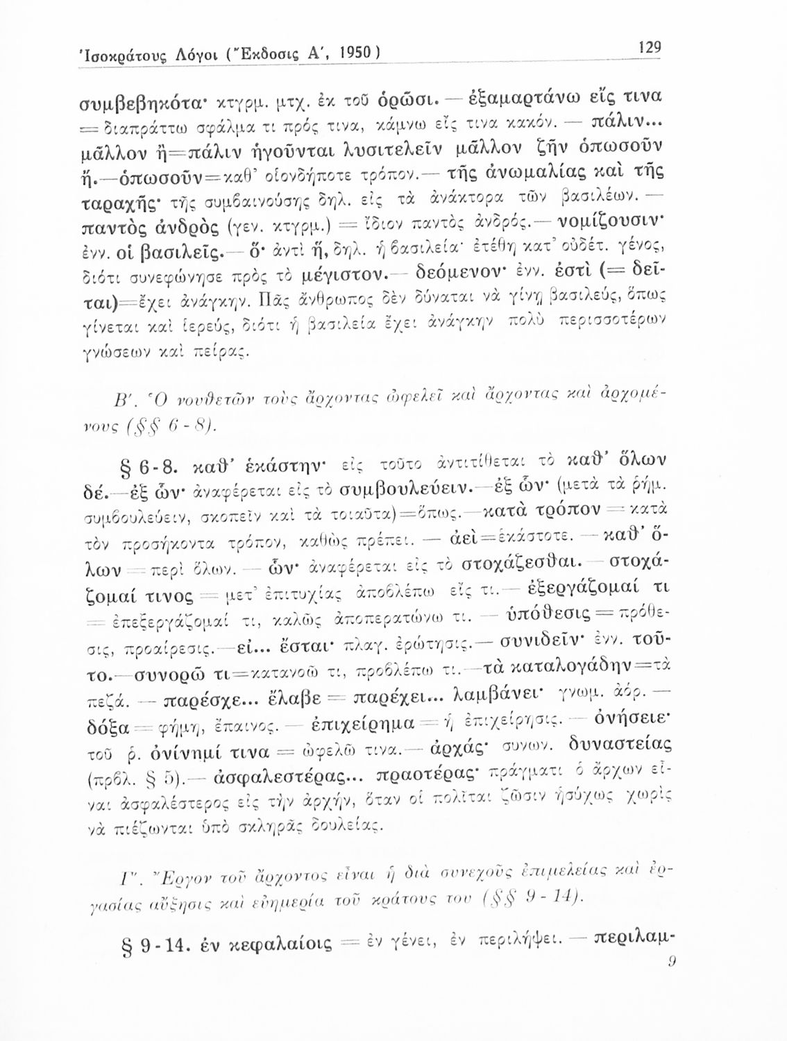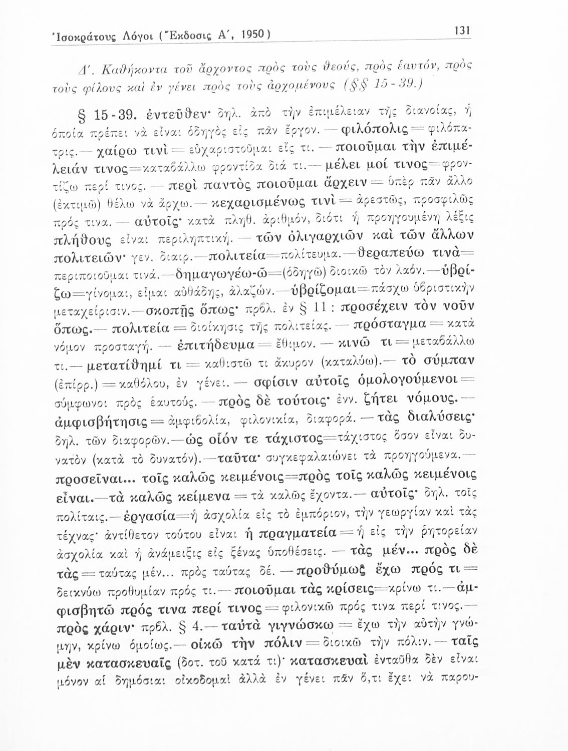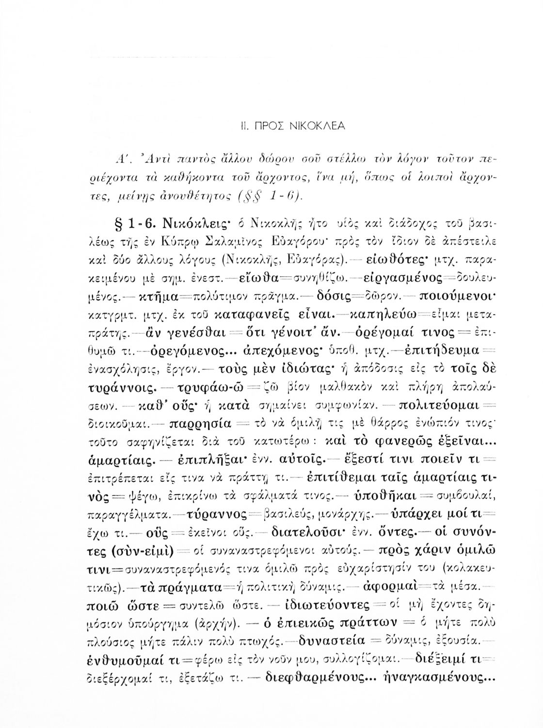 Σχολικό εγχειρίδιο Αρχαίων Ελληνικών που περιλαμβάνει εισαγωγή στη ζωή και το έργο του Ισοκράτη,τους Λόγους του Προς Δημόνικον, Προς Νικοκλέα και Ευαγόρας, και ερμηνευτικές σημειώσεις.