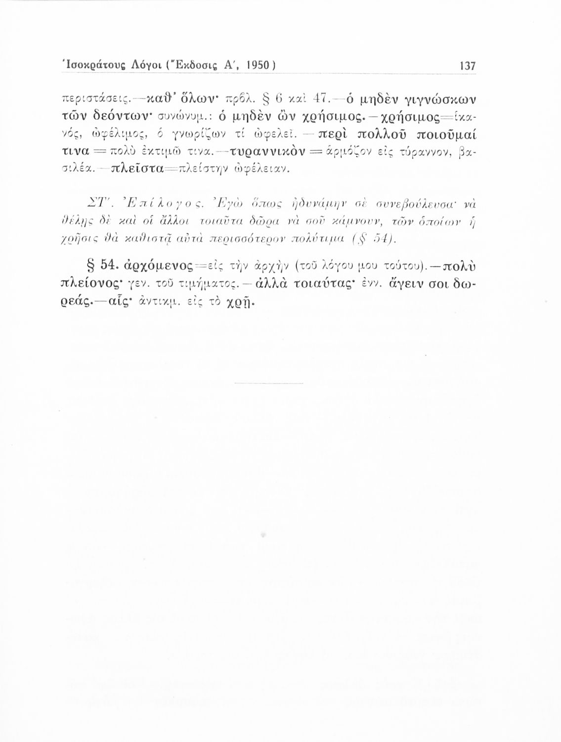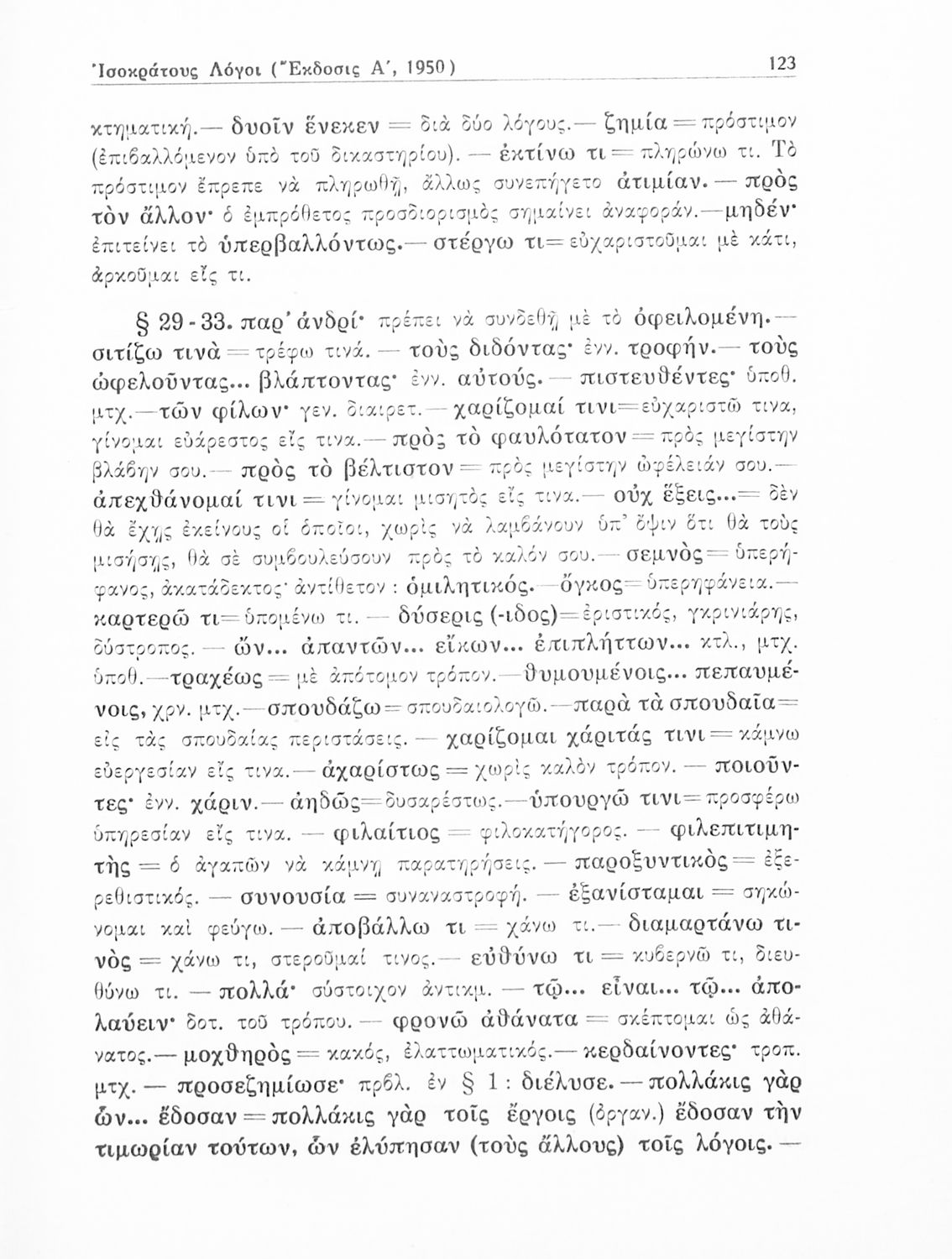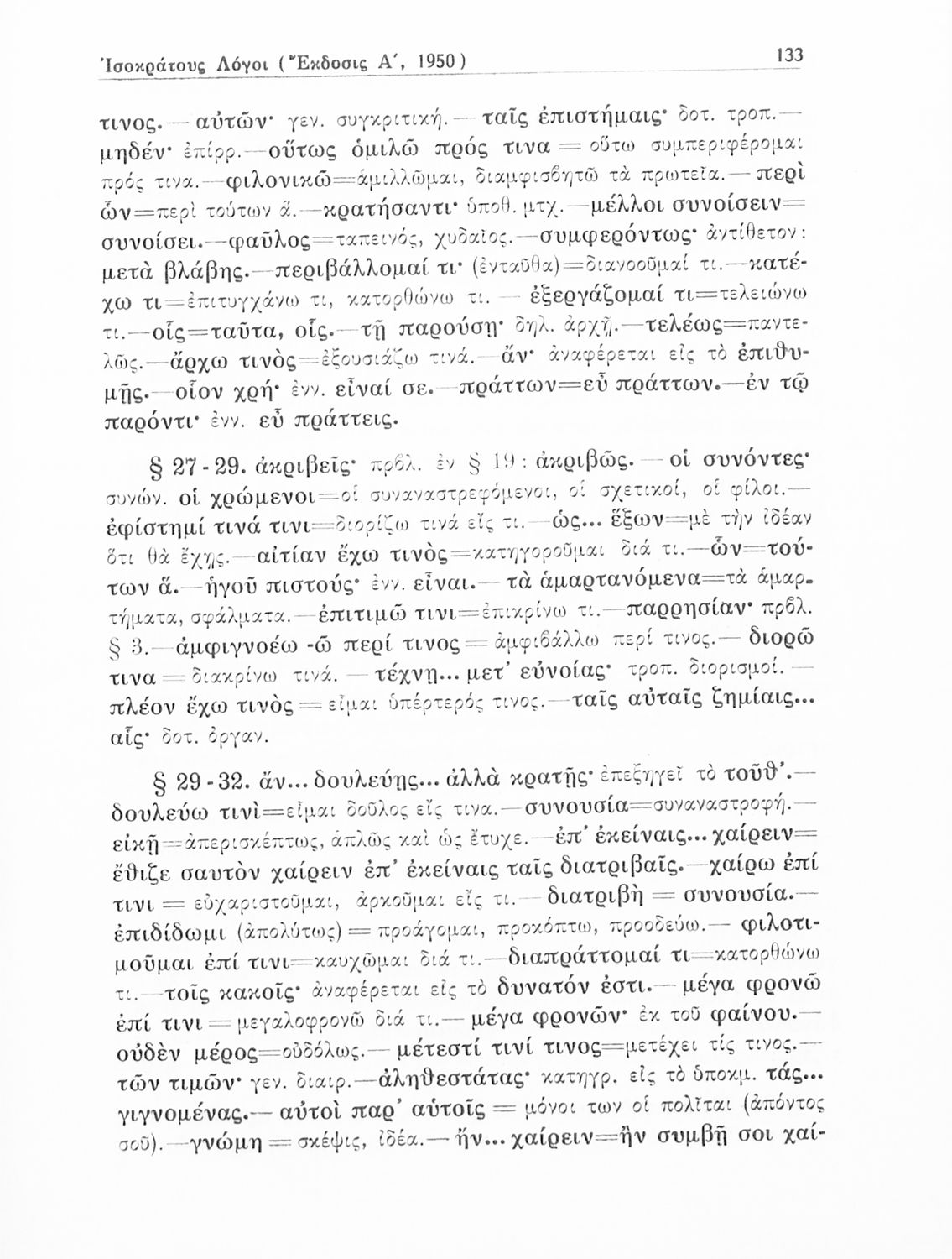 Σχολικό εγχειρίδιο Αρχαίων Ελληνικών που περιλαμβάνει εισαγωγή στη ζωή και το έργο του Ισοκράτη,τους Λόγους του Προς Δημόνικον, Προς Νικοκλέα και Ευαγόρας, και ερμηνευτικές σημειώσεις.