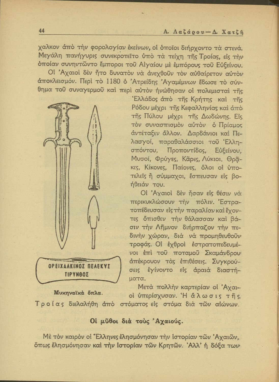 LDR 01459 2200205 4500 035 ## _a02-00950 040 ## _aΕλληνικό Λογοτεχνικό και Ιστορικό Αρχείο 041 ## _ael 100 ## _aΑ. Λαζάρου _aΔ. Χατζής 110 ## _a2-950 245 0# _aΙστορία της αρχαίας Ελλάδος από των αρχαιοτάτων χρόνων μέχρι των μηδικών πολέμων. Δια την Α΄ Τάξιν των Εξατάξιων Γυμνασίων 250 ## _a1η Έκδοση 260 ## _aΑθήνα _bΟργανισμός Εκδόσεως Διδακτικών Βιβλίων _c1949 300 ## _a252 _bΣκίτσα, εικόνες (ασπρόμαυρα) 520 ## _aΣχολικό εγχειρίδιο Ιστορίας Α΄ Γυμνασίου που καλύπτει την περίοδο από τους προϊστορικούς χρόνους ως τις μεταρρυθμίσεις του Κλεισθένη. Περιέχει και εκτενή αναφορά στην ανάπτυξη των γραμμάτων, των τεχνών και του εμπορίου. 521 ## _aΑ' Γυμνασίου 522 ## _aΕλλάδα 546 ## _aΑπλή καθαρεύουσα 563 ## _aΣκληρό Εξώφυλλο 650 #4 _aΑχαιοί _aΔημοκρατία _aΔωριείς _aΕλληνικές αποικίες _aΙωνία _aΛυκούργος _aΠεισίστρατος _aΣόλων