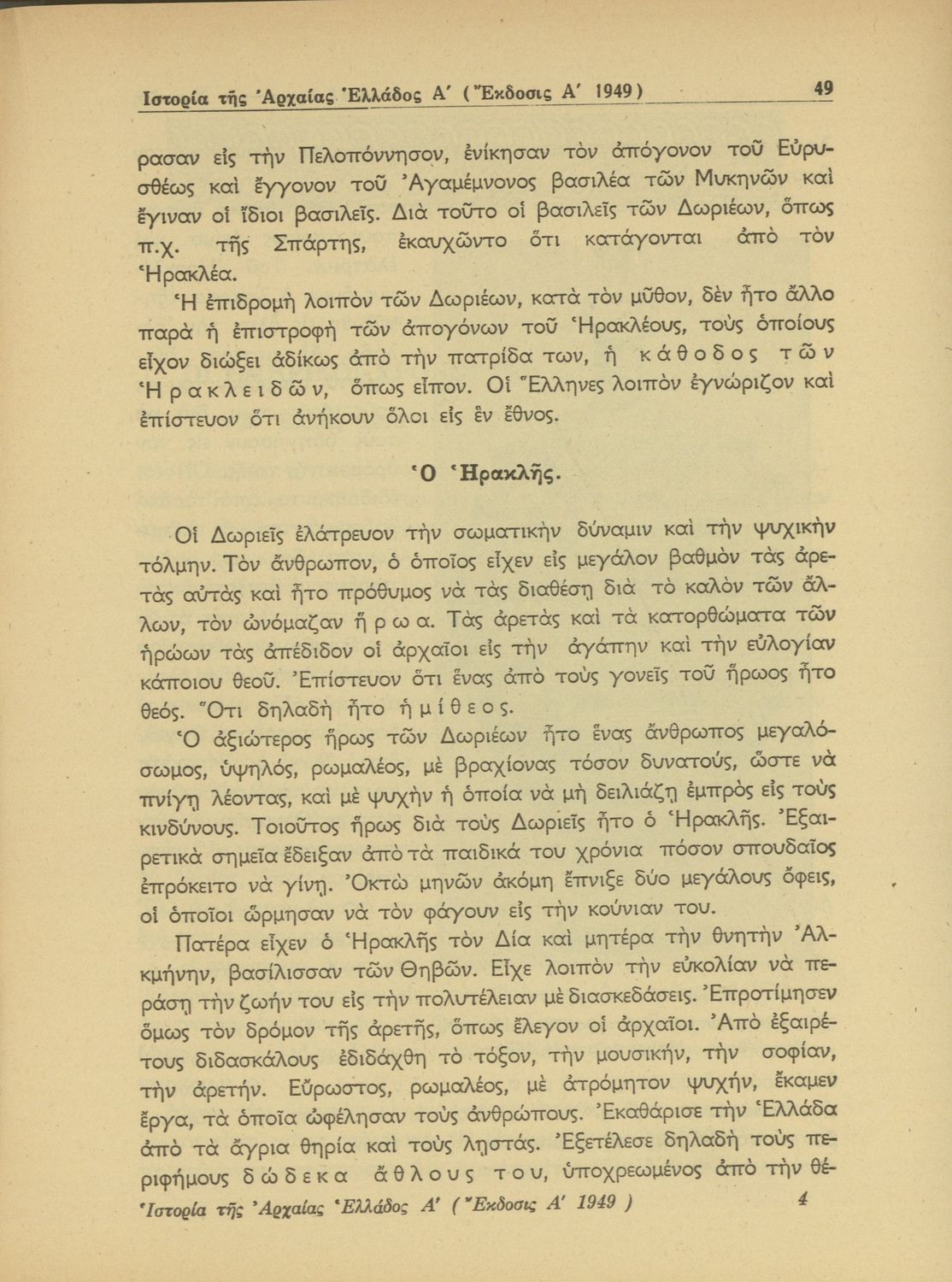 Βαθμίδα εκπαίδευσης: Δευτεροβάθμια Τάξη: Α' Γυμνασίου Μάθημα: Ιστορία Γλώσσα: Απλή καθαρεύουσα Παρουσίαση περιεχομένου: Σχολικό εγχειρίδιο Ιστορίας Α΄ Γυμνασίου που καλύπτει την περίοδο από τους προϊστορικούς χρόνους ως τις μεταρρυθμίσεις του Κλεισθένη. Περιέχει και εκτενή αναφορά στην ανάπτυξη των γραμμάτων, των τεχνών και του εμπορίου. |