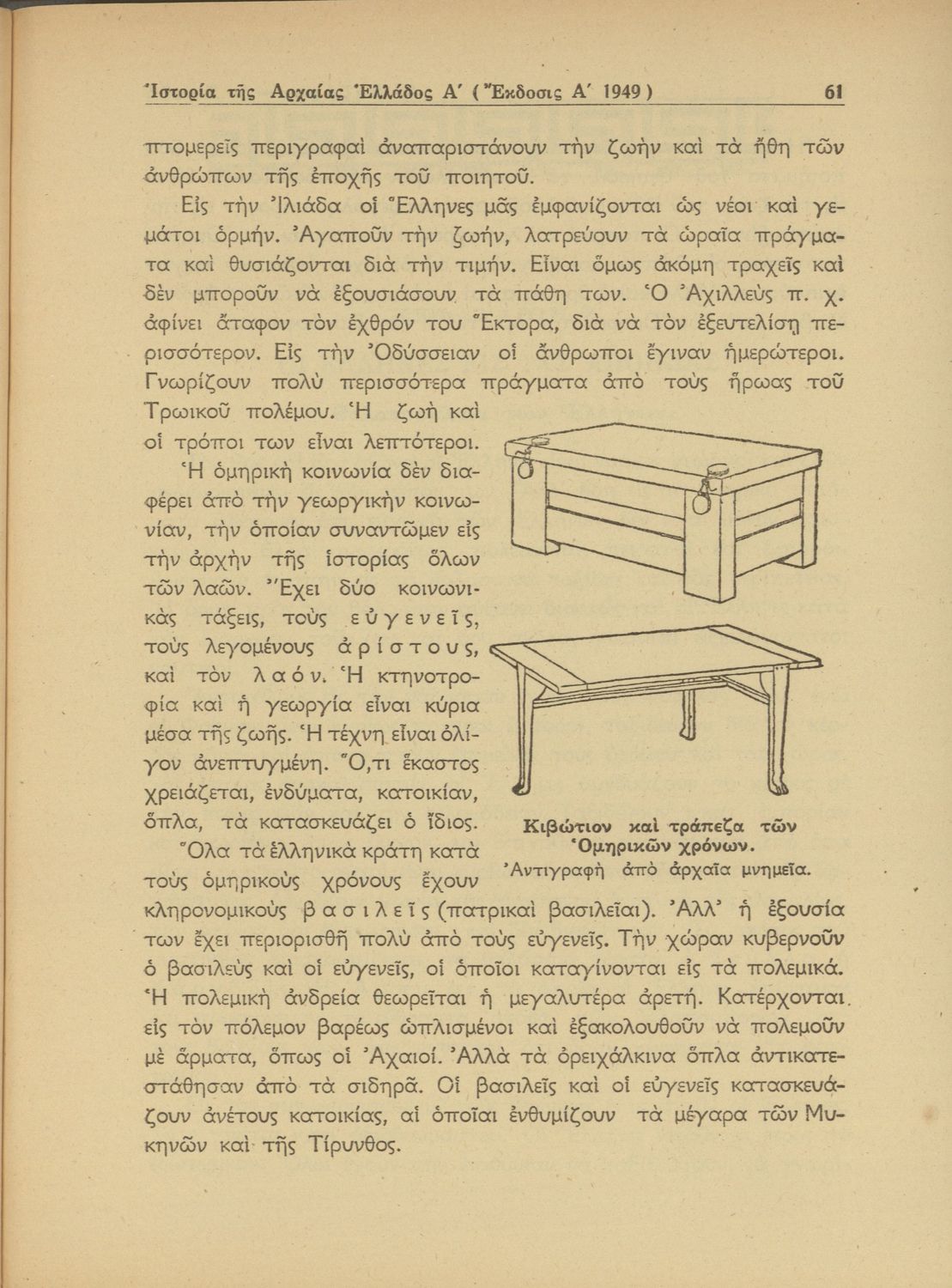 Σχολικό εγχειρίδιο Ιστορίας Α΄ Γυμνασίου που καλύπτει την περίοδο από τους προϊστορικούς χρόνους ως τις μεταρρυθμίσεις του Κλεισθένη. Περιέχει και εκτενή αναφορά στην ανάπτυξη των γραμμάτων, των τεχνών και του εμπορίου.