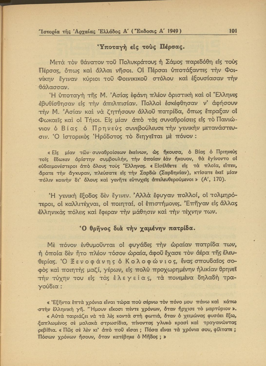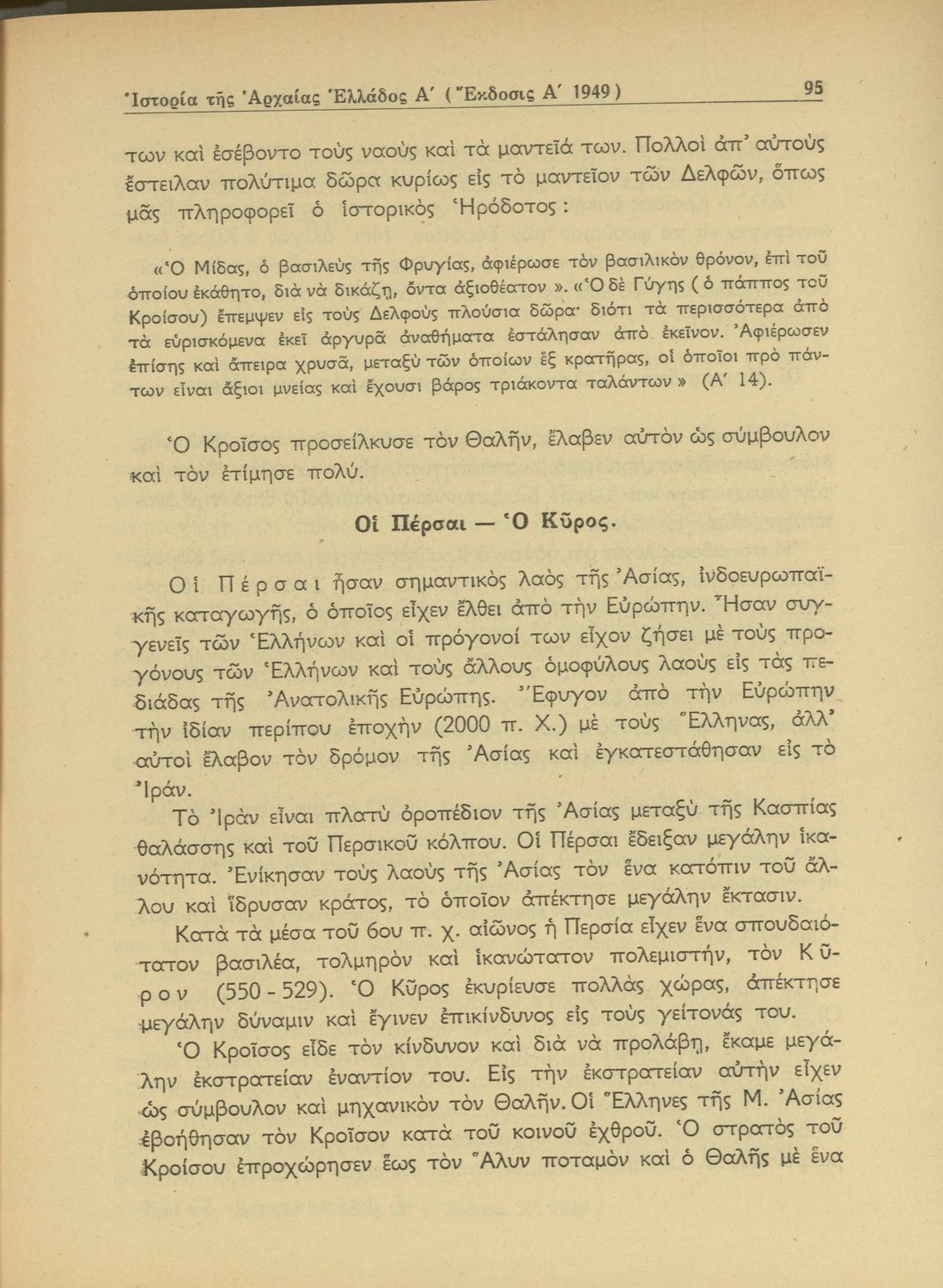 245 0# _aΙστορία της αρχαίας Ελλάδος από των αρχαιοτάτων χρόνων μέχρι των μηδικών πολέμων. Δια την Α΄ Τάξιν των Εξατάξιων Γυμνασίων