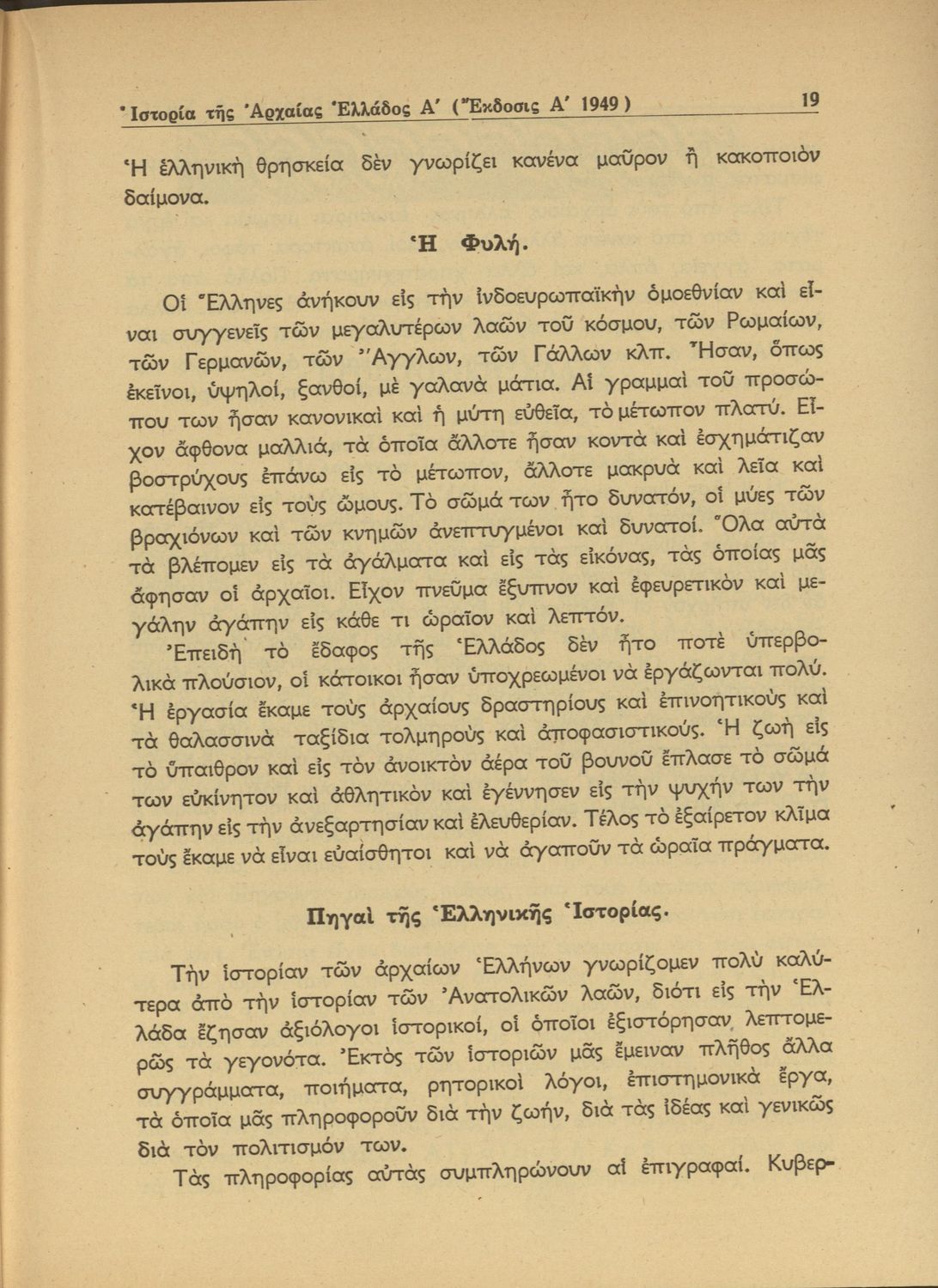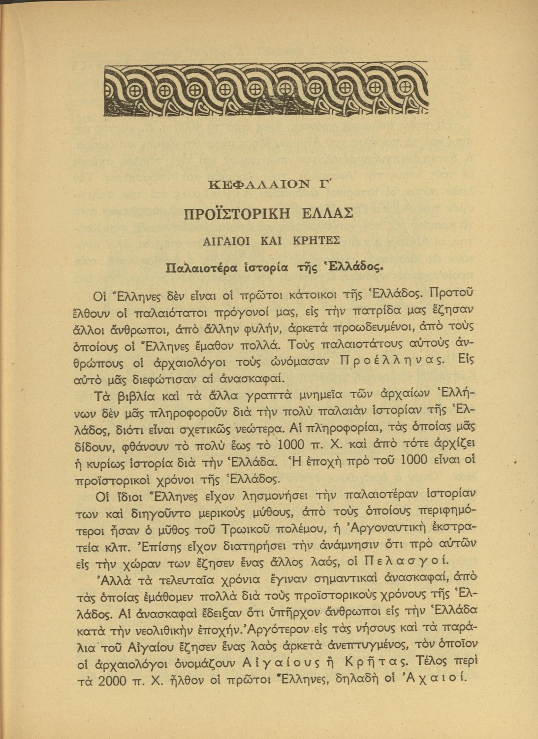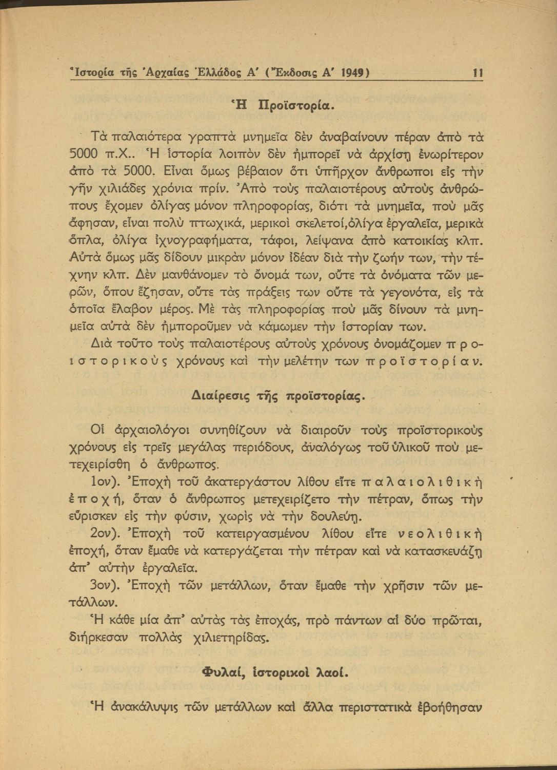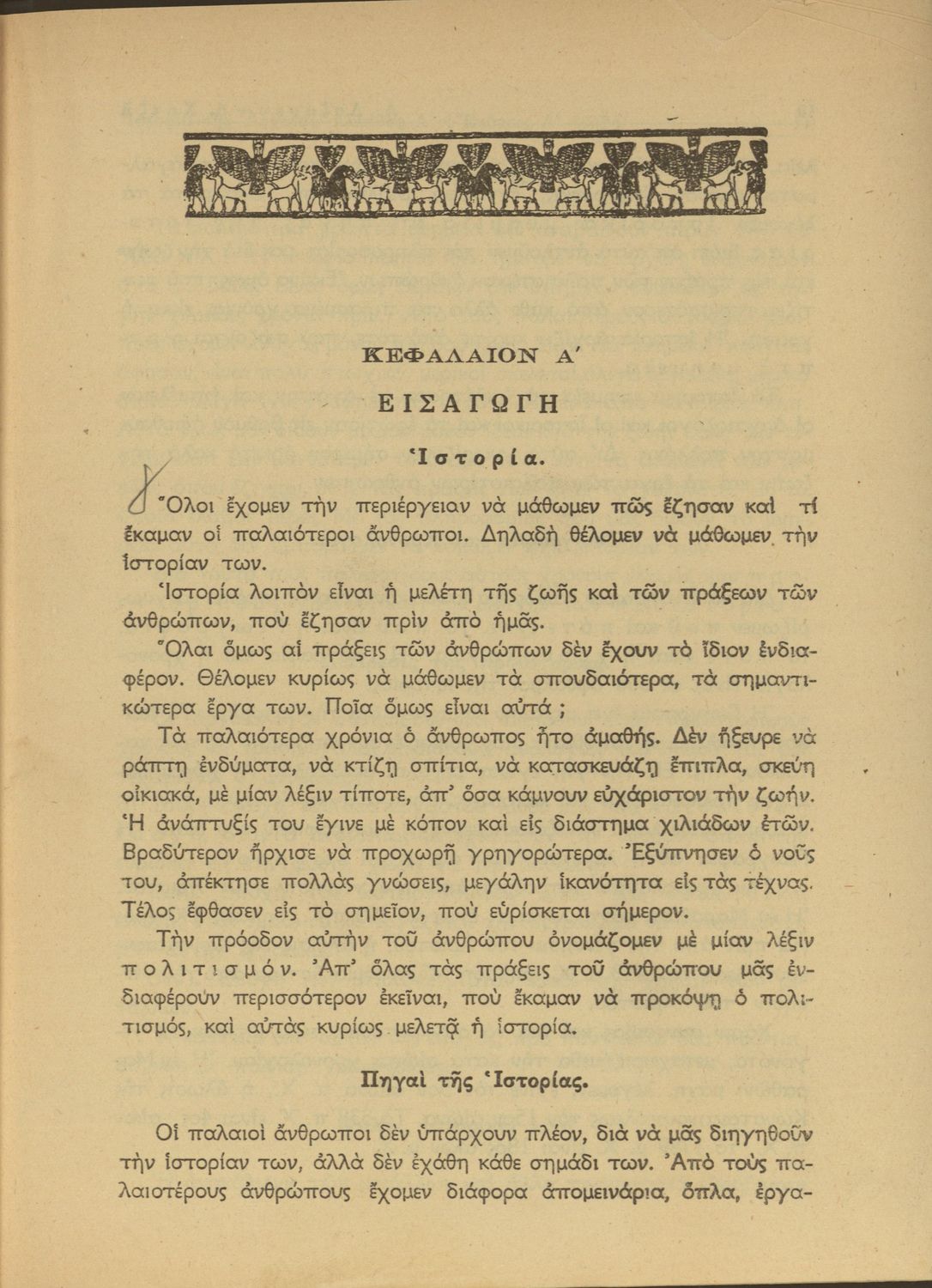 Βαθμίδα εκπαίδευσης: Δευτεροβάθμια Τάξη: Α' Γυμνασίου Μάθημα: Ιστορία Γλώσσα: Απλή καθαρεύουσα Παρουσίαση περιεχομένου: Σχολικό εγχειρίδιο Ιστορίας Α΄ Γυμνασίου που καλύπτει την περίοδο από τους προϊστορικούς χρόνους ως τις μεταρρυθμίσεις του Κλεισθένη. Περιέχει και εκτενή αναφορά στην ανάπτυξη των γραμμάτων, των τεχνών και του εμπορίου. |