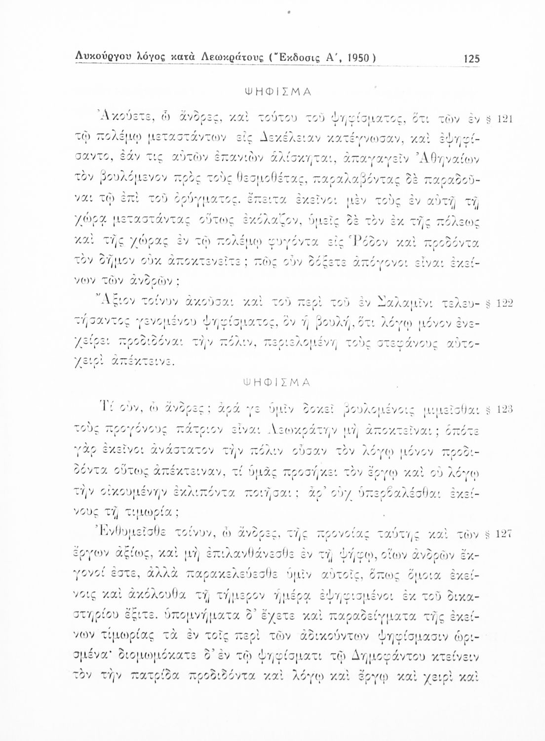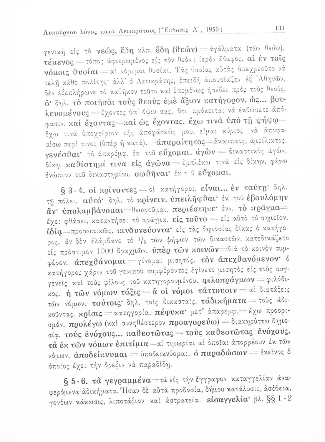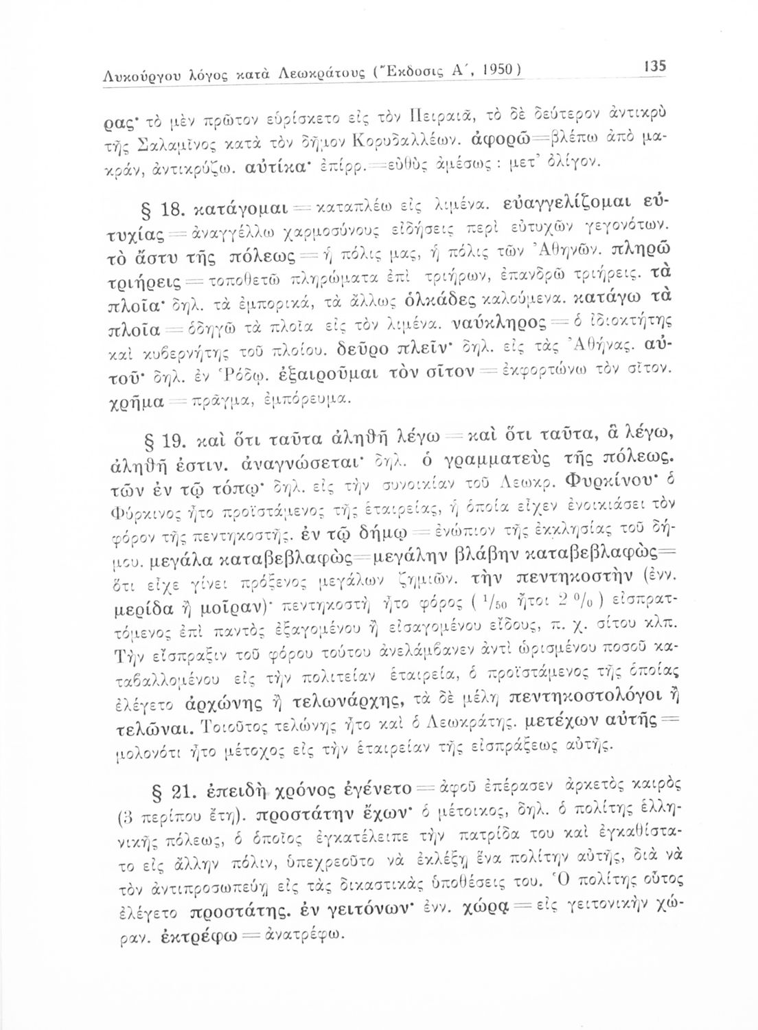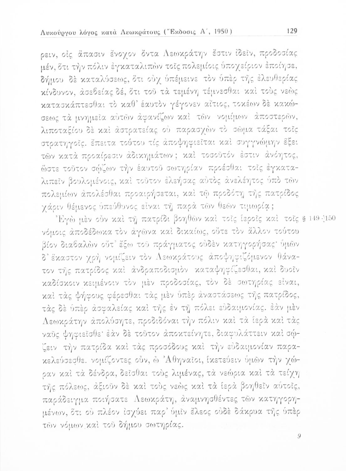 Σχολικό εγχειρίδιο Αρχαίων Ελληνικών Δ΄ Γυμνασίου που περιλαμβάνει εισαγωγή στη ζωή και το έργο του Λυκούργου, τον Λόγο κατά Λεωκράτους και ερμηνευτικά και πραγματολογικά σχόλια.