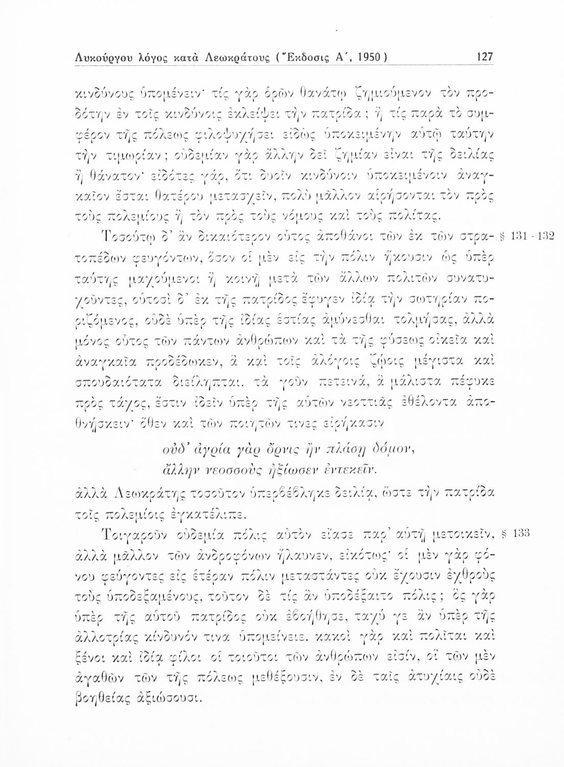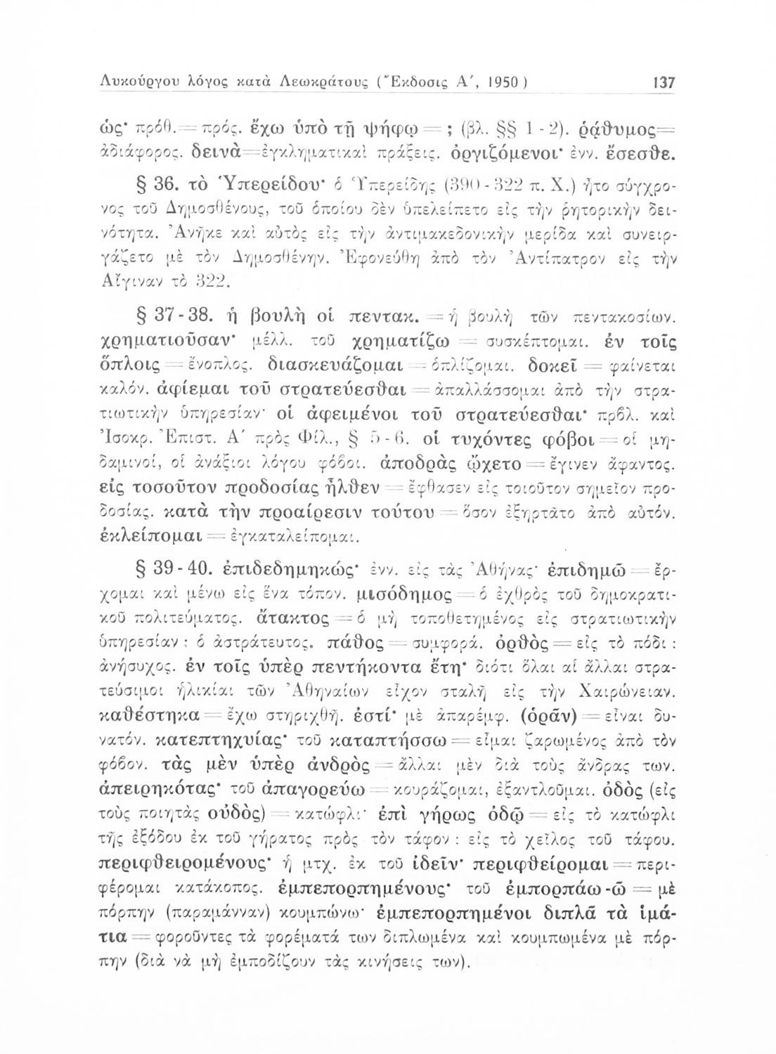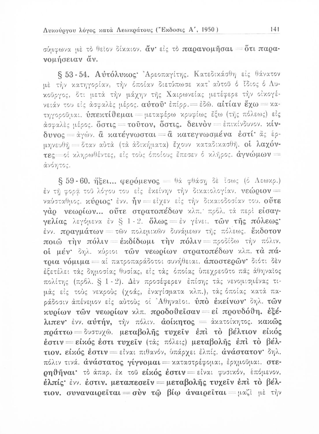 Σχολικό εγχειρίδιο Αρχαίων Ελληνικών Δ΄ Γυμνασίου που περιλαμβάνει εισαγωγή στη ζωή και το έργο του Λυκούργου, τον Λόγο κατά Λεωκράτους και ερμηνευτικά και πραγματολογικά σχόλια.