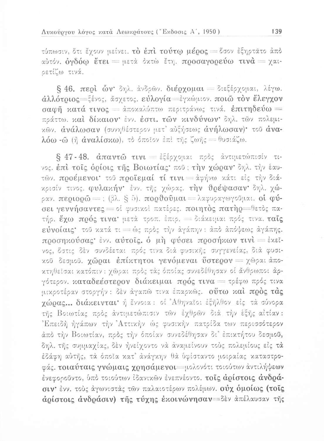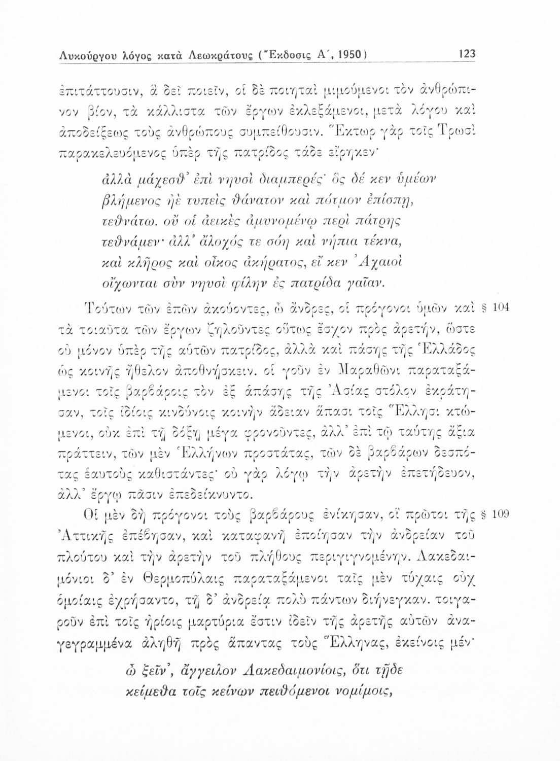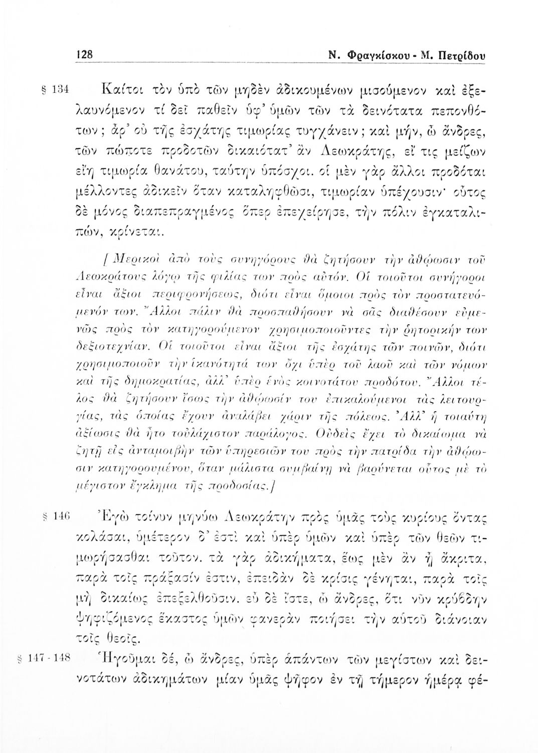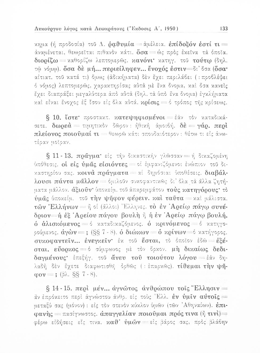 Σχολικό εγχειρίδιο Αρχαίων Ελληνικών Δ΄ Γυμνασίου που περιλαμβάνει εισαγωγή στη ζωή και το έργο του Λυκούργου, τον Λόγο κατά Λεωκράτους και ερμηνευτικά και πραγματολογικά σχόλια.