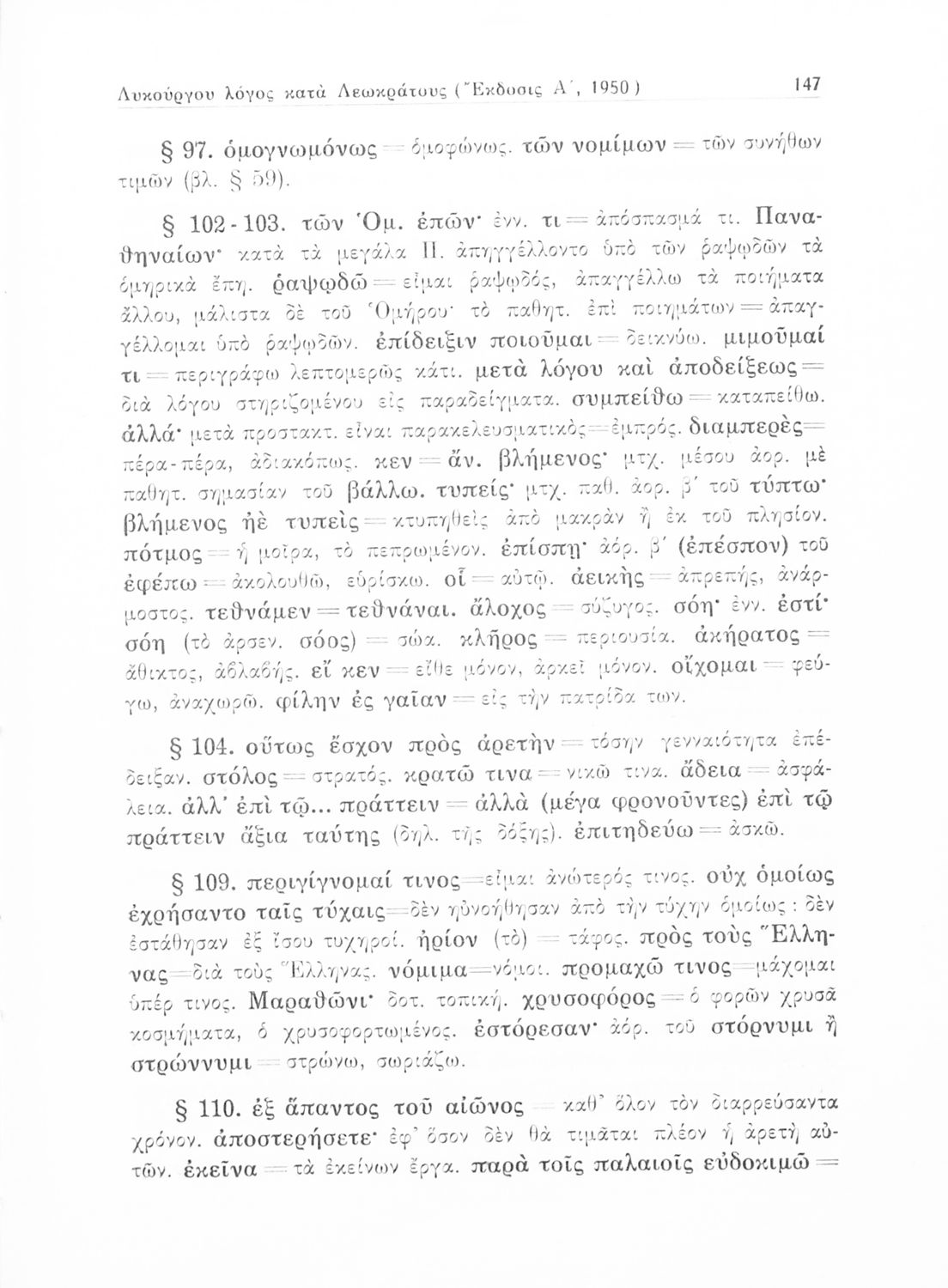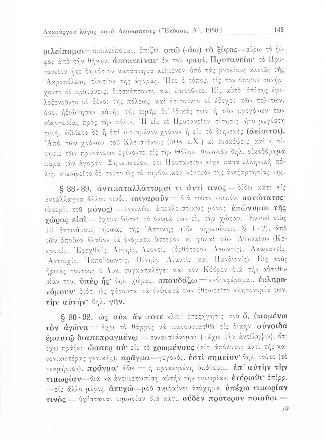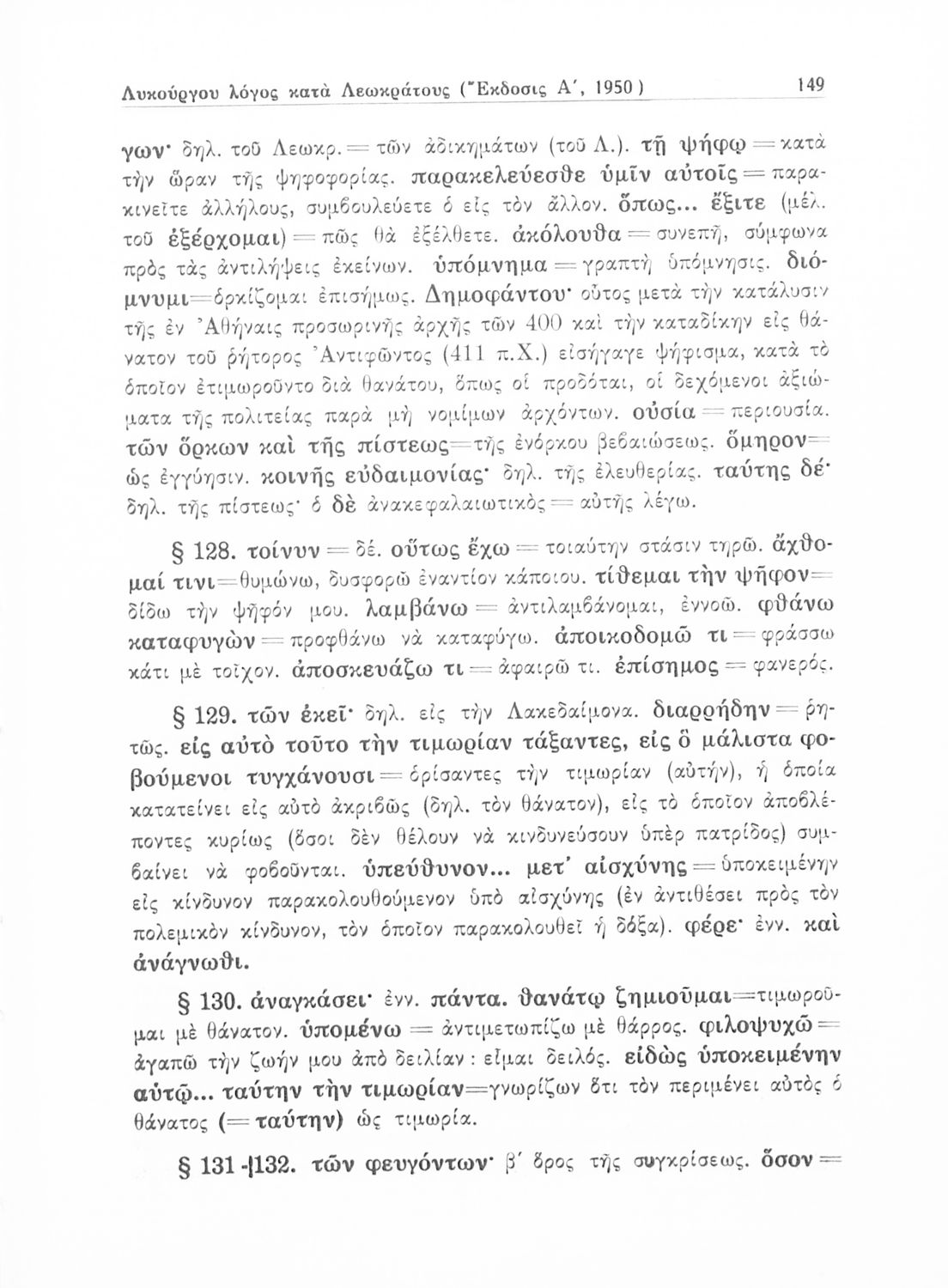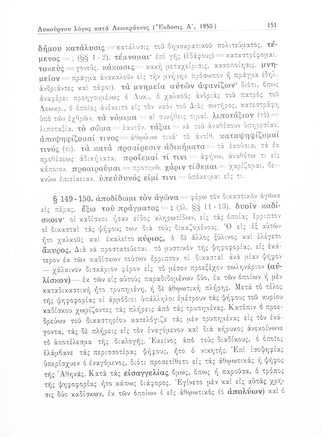 Σχολικό εγχειρίδιο Αρχαίων Ελληνικών Δ΄ Γυμνασίου που περιλαμβάνει εισαγωγή στη ζωή και το έργο του Λυκούργου, τον Λόγο κατά Λεωκράτους και ερμηνευτικά και πραγματολογικά σχόλια.
