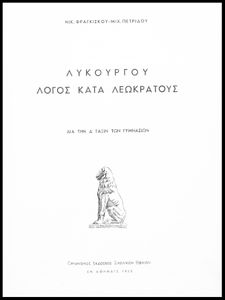 Σχολικό εγχειρίδιο Αρχαίων Ελληνικών Δ΄ Γυμνασίου που περιλαμβάνει εισαγωγή στη ζωή και το έργο του Λυκούργου, τον Λόγο κατά Λεωκράτους και ερμηνευτικά και πραγματολογικά σχόλια.