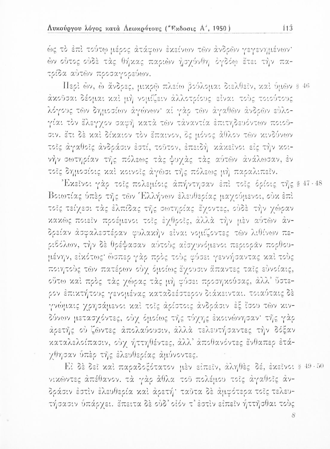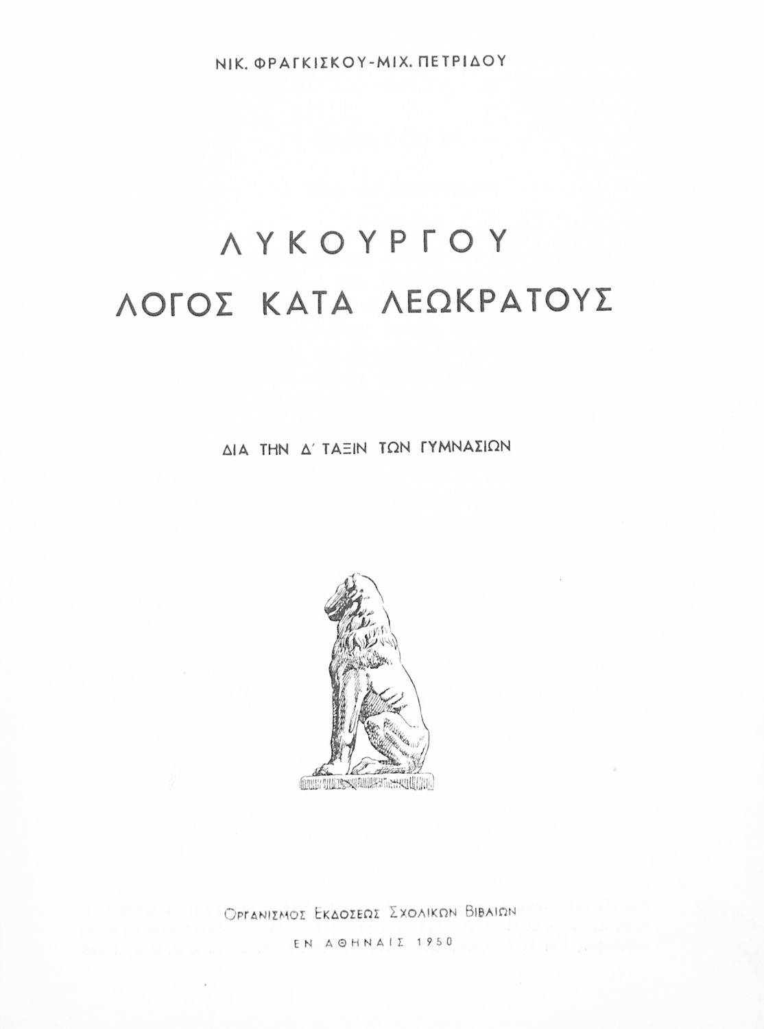 Τίτλος: Λυκούργου Λόγος κατά Λεωκράτους, διά την Δ΄ τάξιν των Γυμνασίων