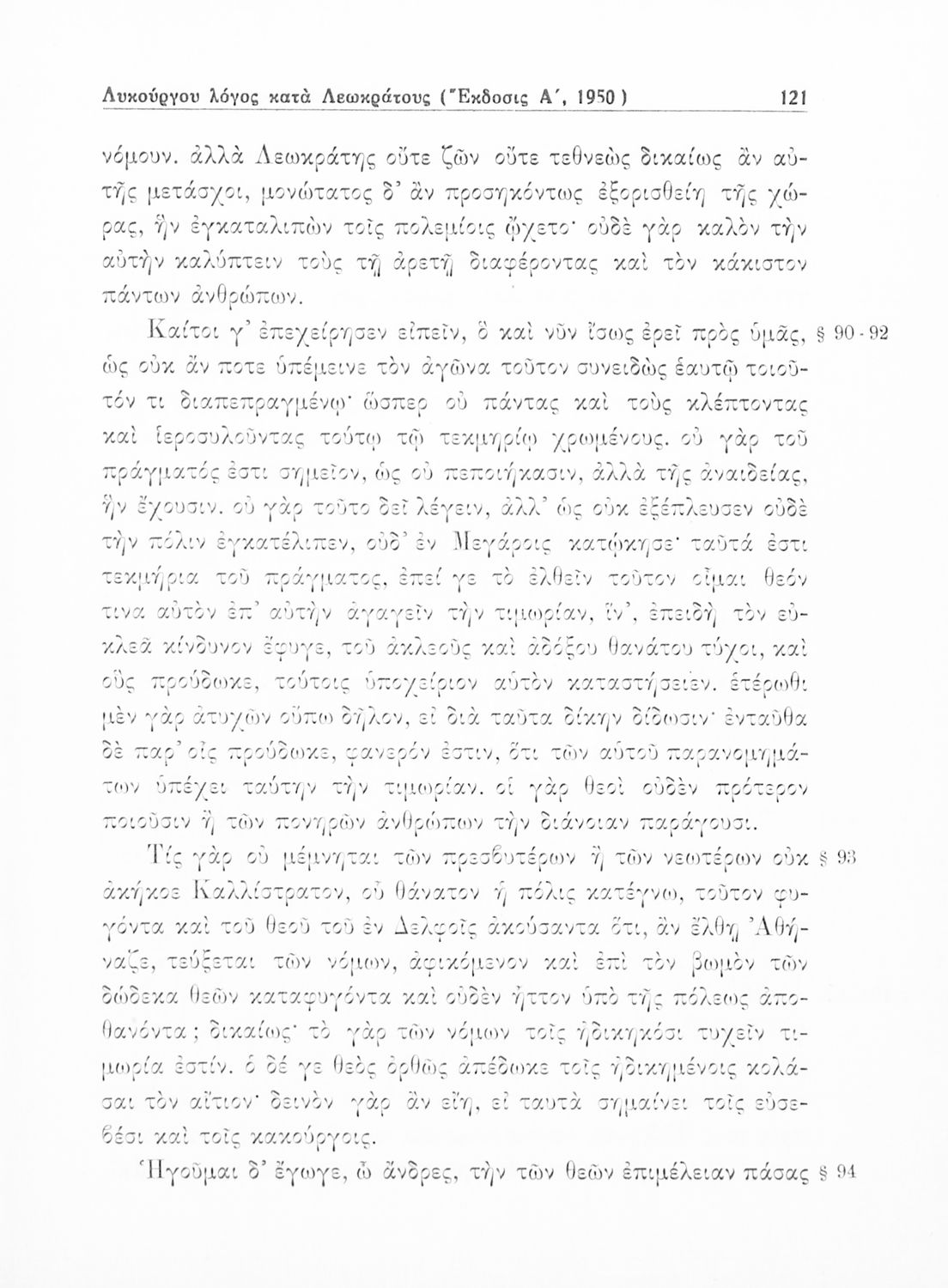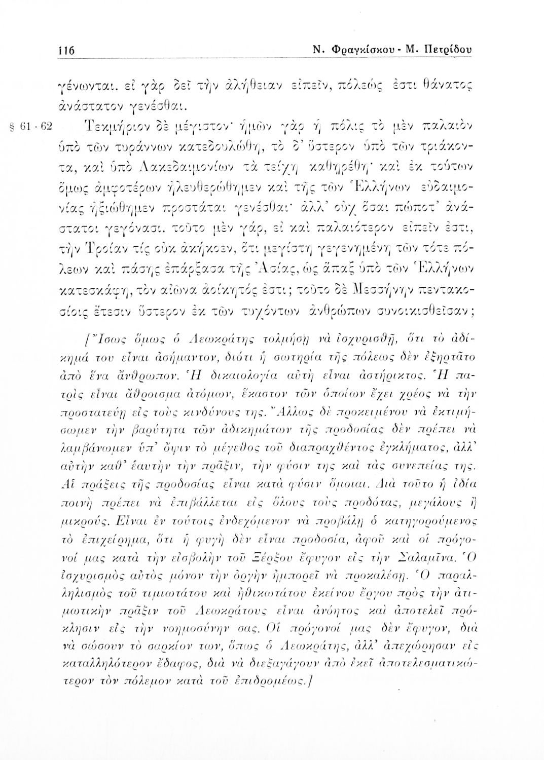 Λυκούργος, Ισοκράτης, Νικ. Εμμ. Φραγκίσκος (σχόλια)