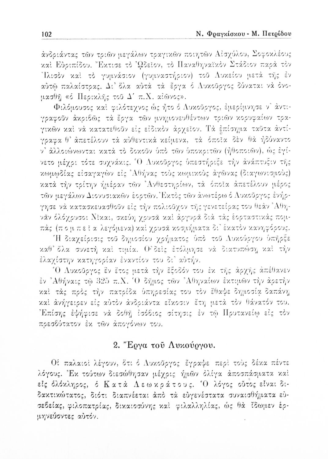 Λυκούργος, Νικόλαος Ε. Φραγκίσκος, Μιχαήλ Γ. Πετρίδης (σχόλια)