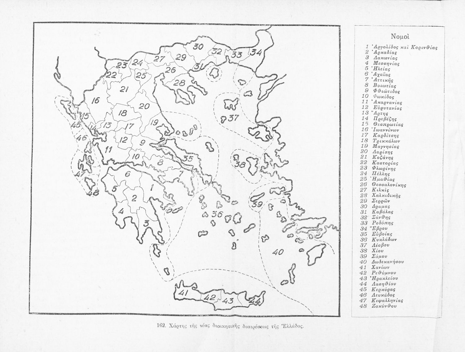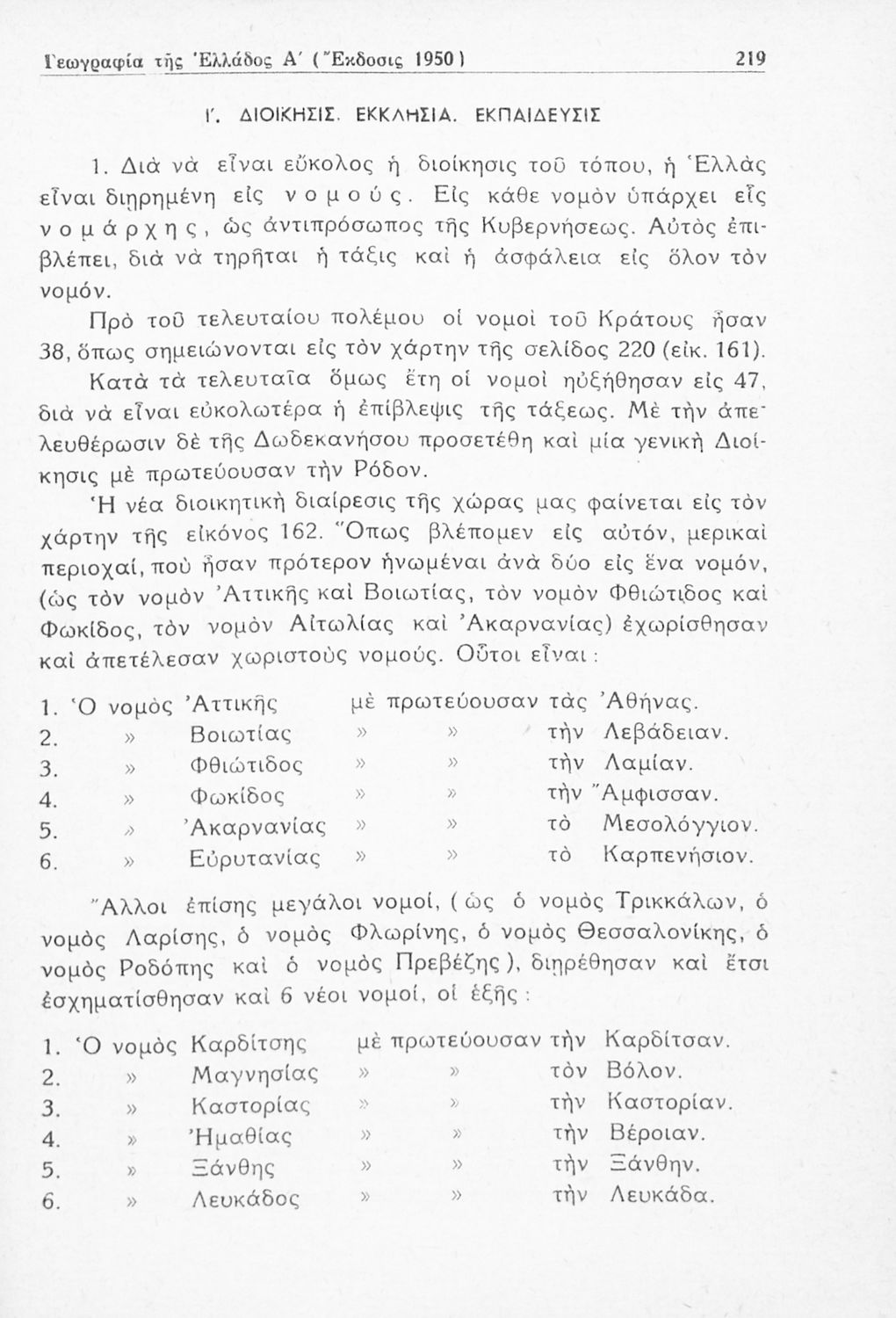 Σχολικό εγχειρίδιο Γεωγραφίας Α' Γυμνασίου που εξετάζει την Ελλάδα ανά διαμέρισμα και νομό από γεωφυσική, οικονομική και πολιτική άποψη.