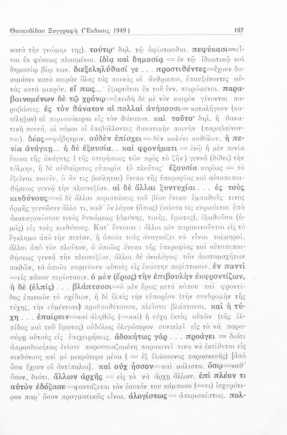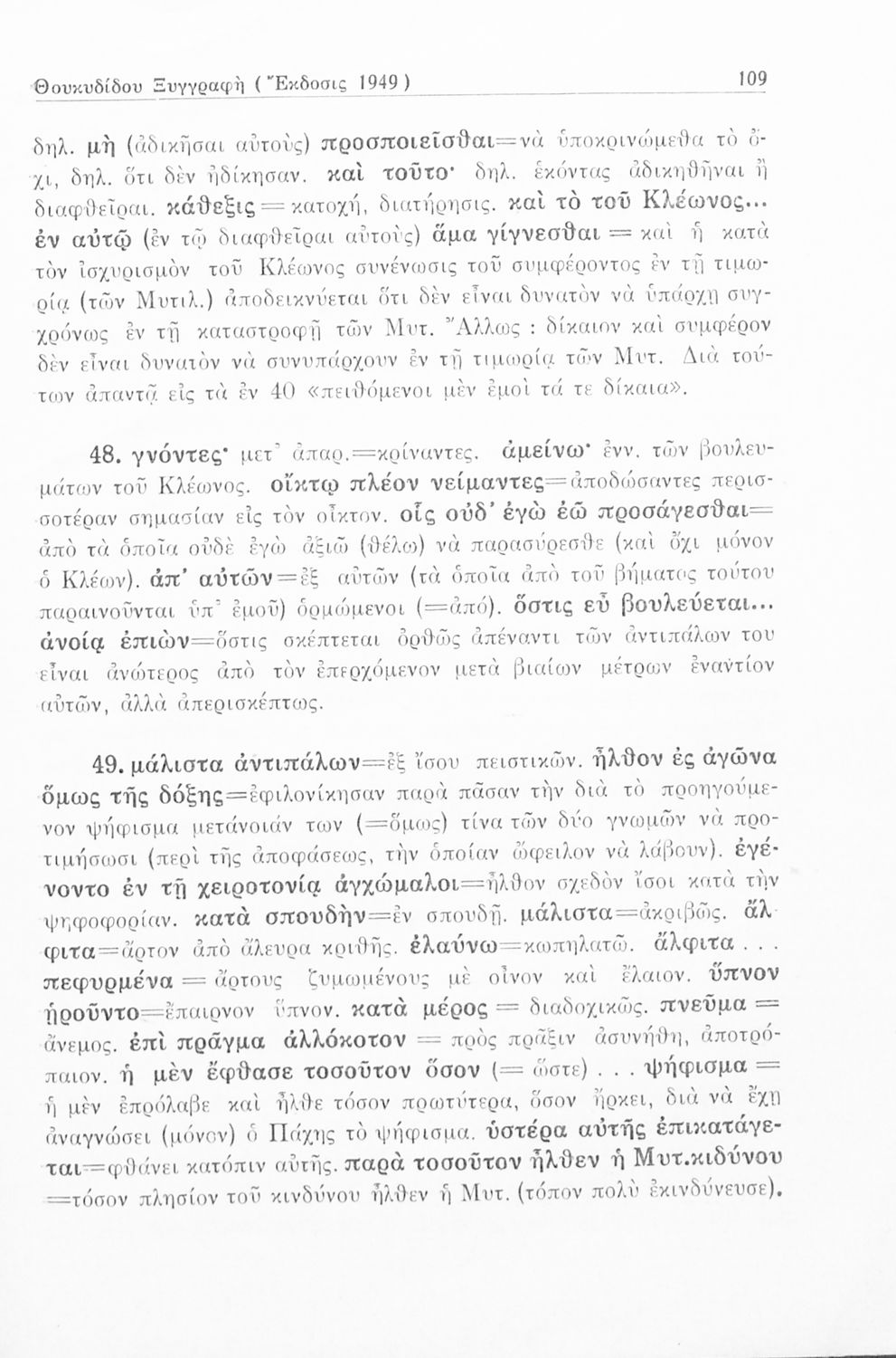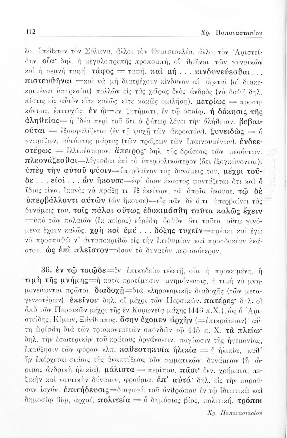 Θουκυδίδης, Χρισ. Παπαναστασίου (σχόλια)