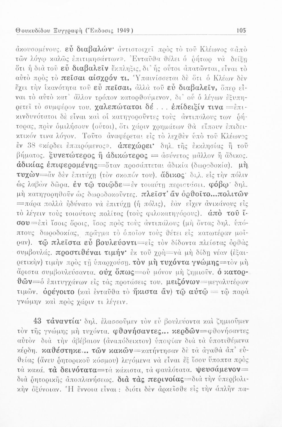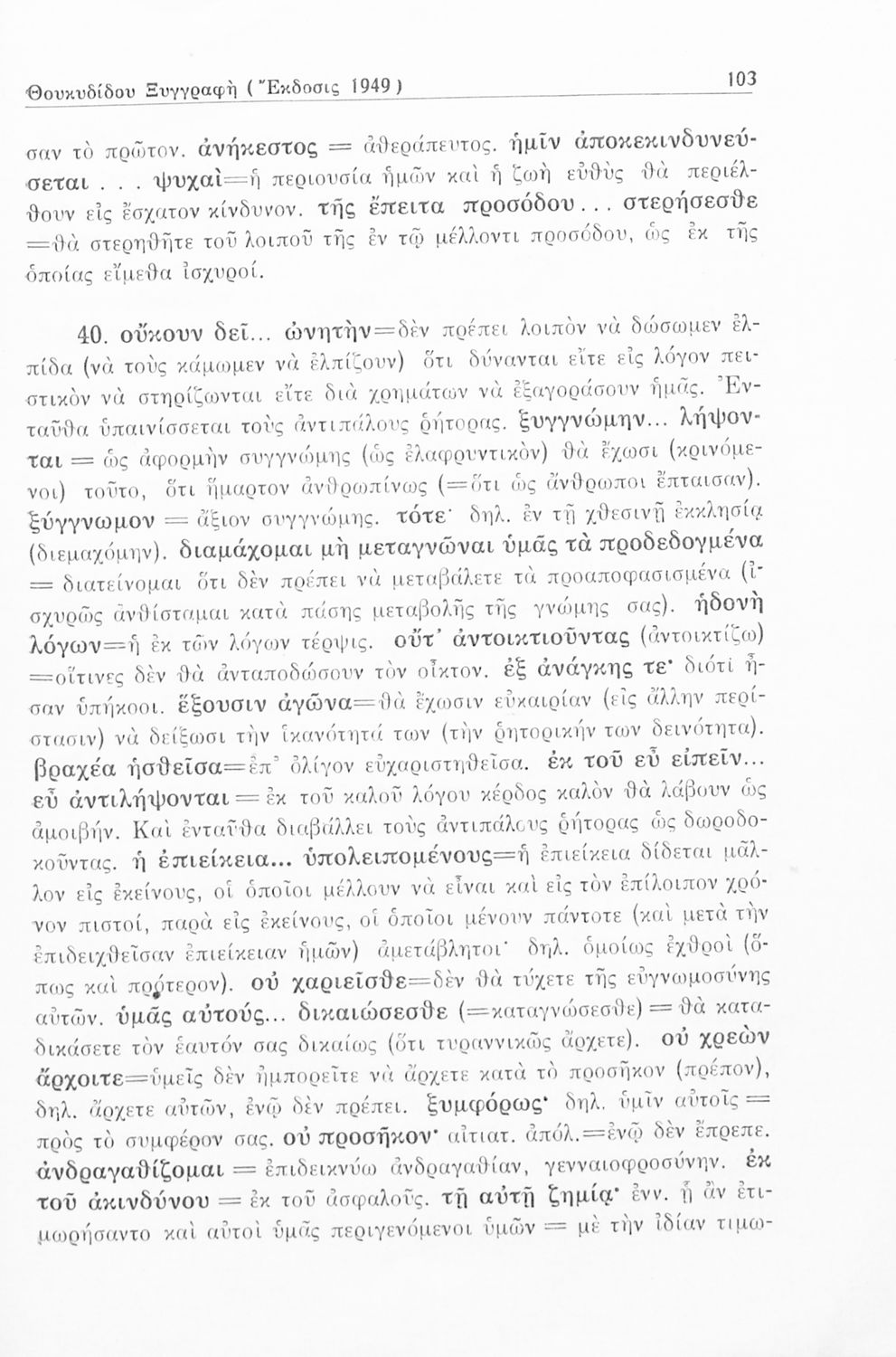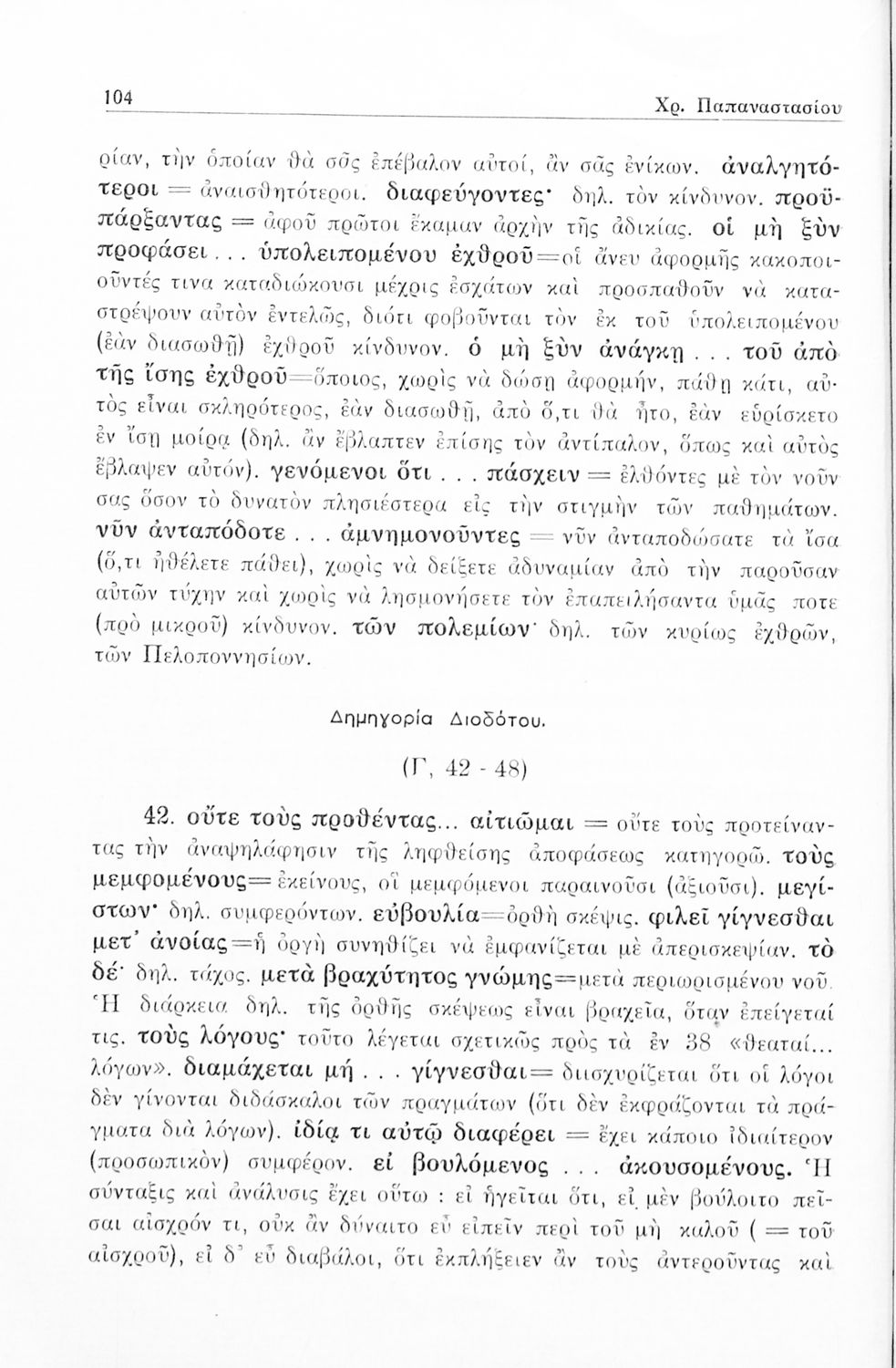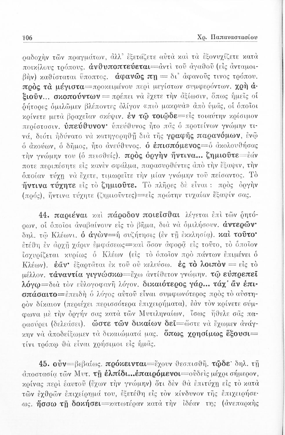Θουκυδίδης, Χρισ. Παπαναστασίου (σχόλια)