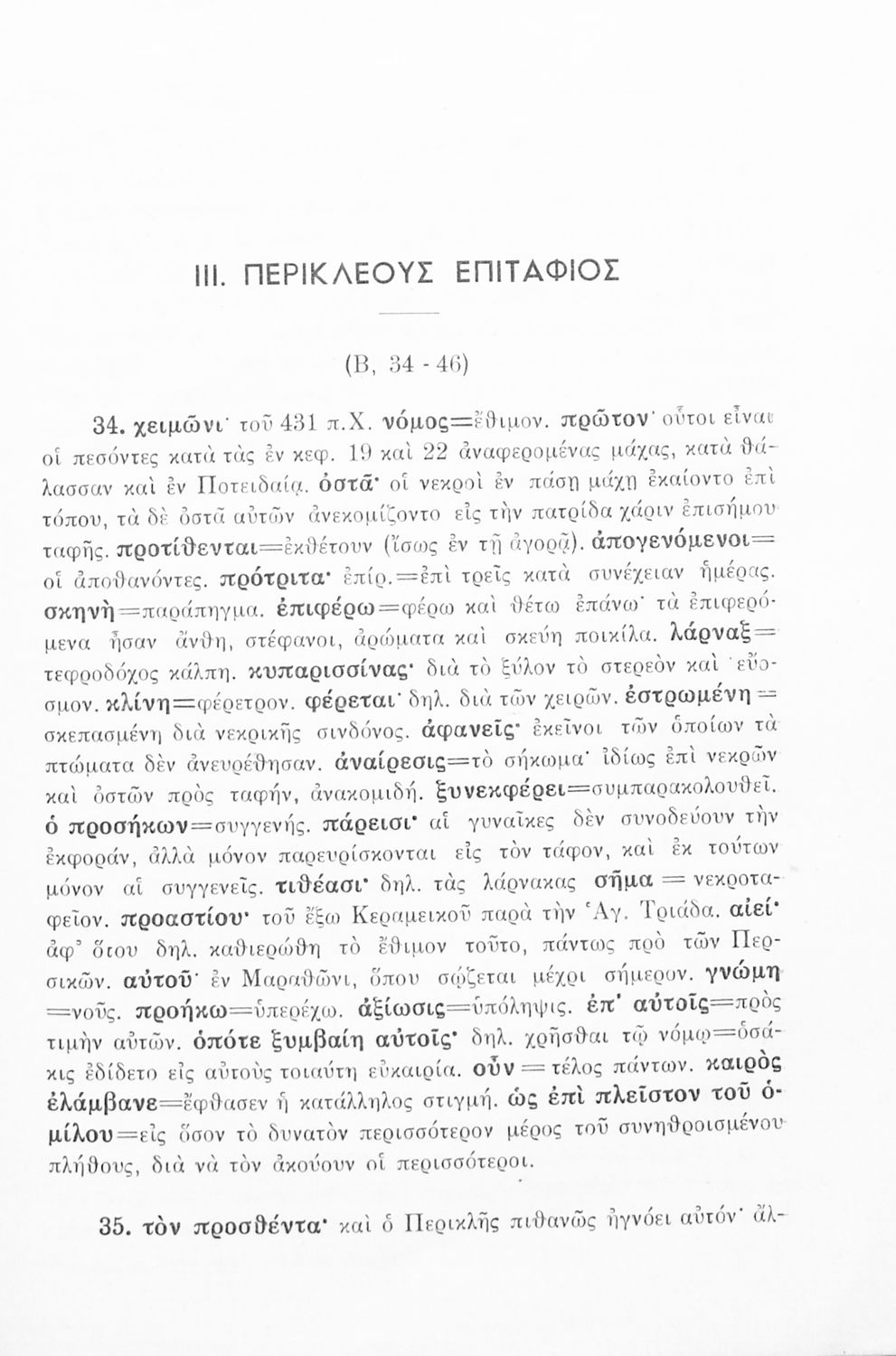 Σχολικό εγχειρίδιο Αρχαίων Ελληνικών για τις τάξεις του Γυμνασίου το οποίο περιέχει αποσπάσματα από το έργο του Θουκυδίδη, εισαγωγή στη ζωή και το έργο του και ερμηνευτικές σημειώσεις.