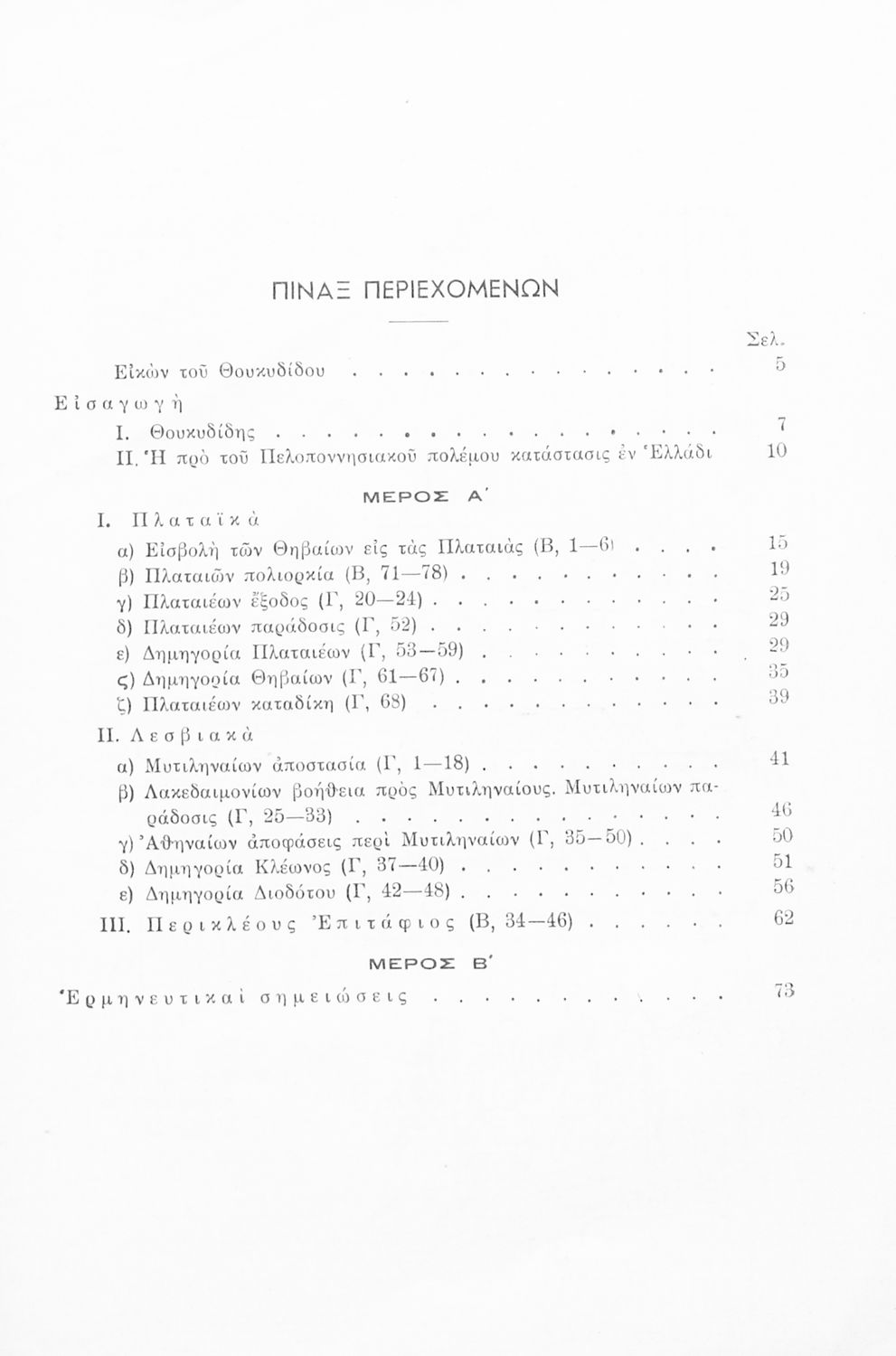 Σχολικό εγχειρίδιο Αρχαίων Ελληνικών για τις τάξεις του Γυμνασίου το οποίο περιέχει αποσπάσματα από το έργο του Θουκυδίδη, εισαγωγή στη ζωή και το έργο του και ερμηνευτικές σημειώσεις.