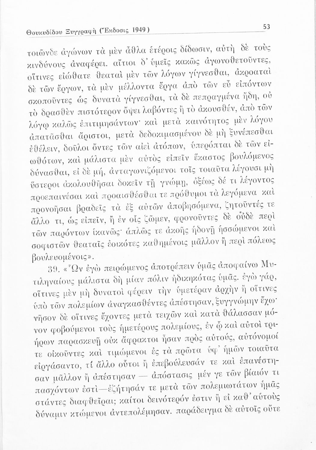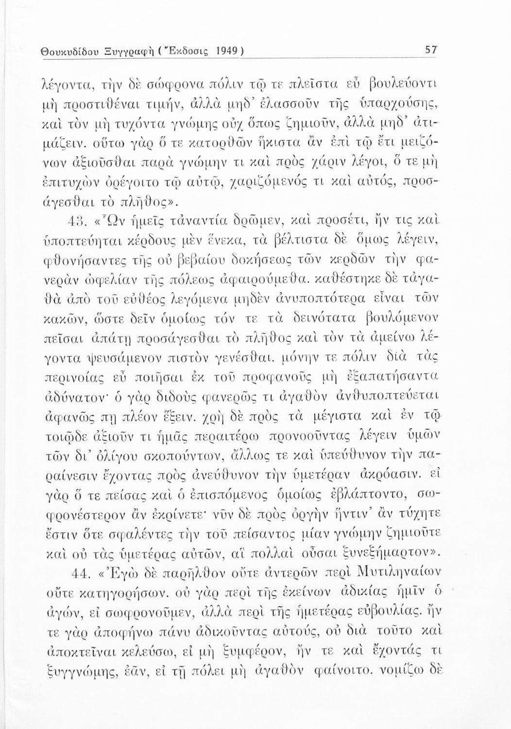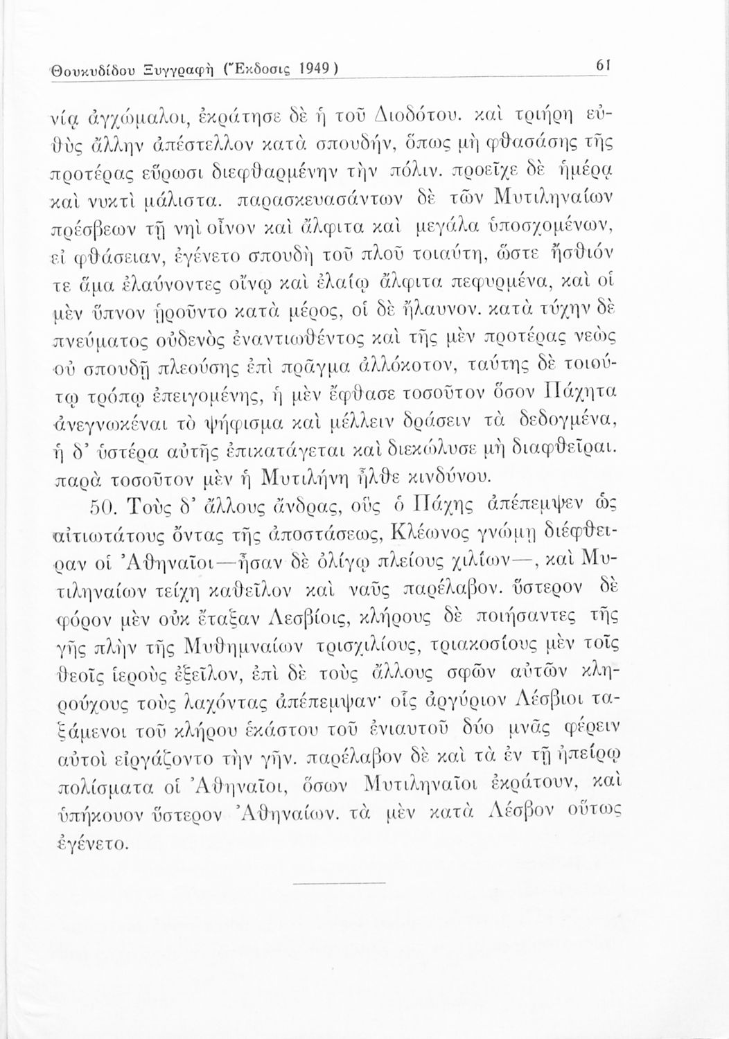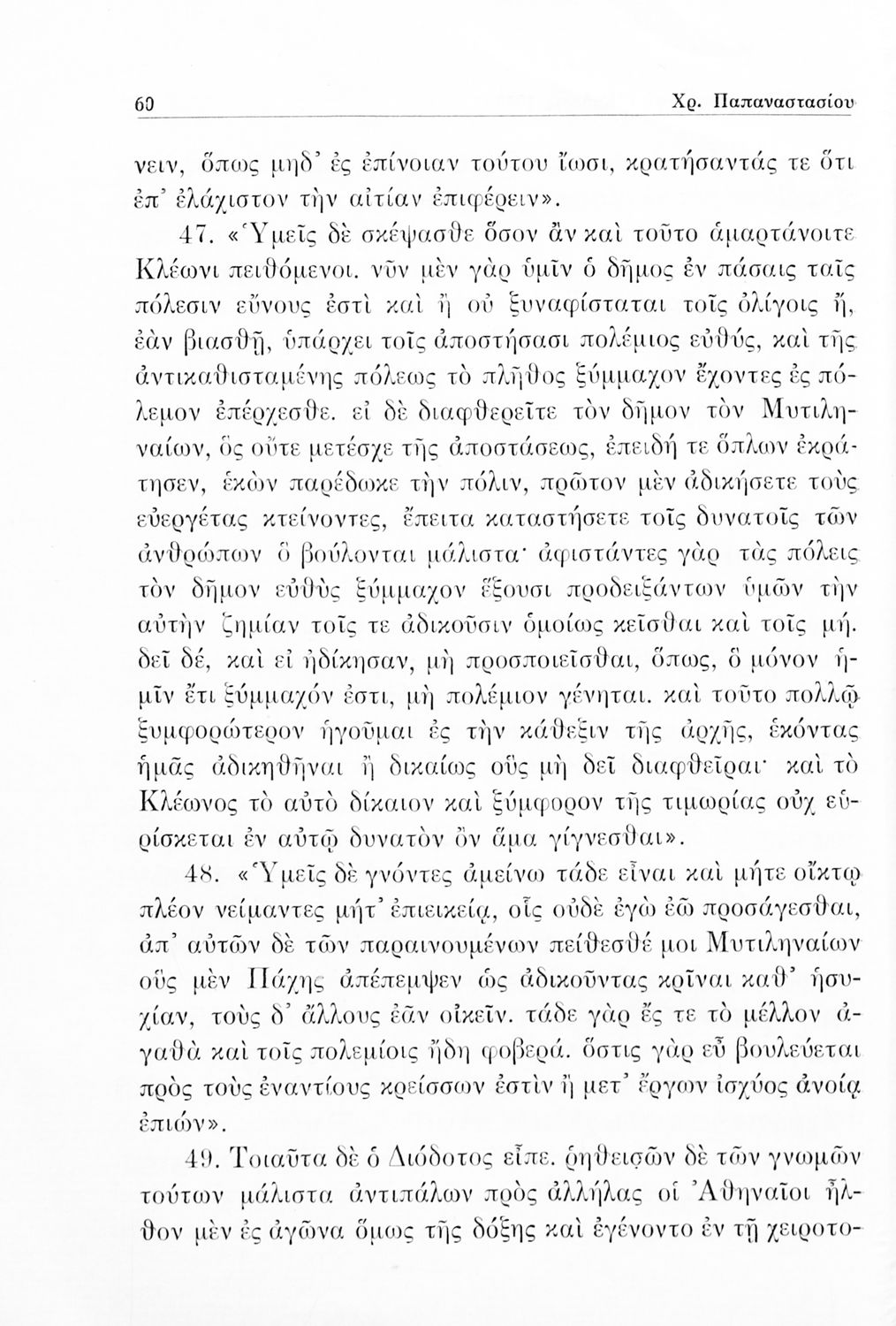 Σχολικό εγχειρίδιο Αρχαίων Ελληνικών για τις τάξεις του Γυμνασίου το οποίο περιέχει αποσπάσματα από το έργο του Θουκυδίδη, εισαγωγή στη ζωή και το έργο του και ερμηνευτικές σημειώσεις.