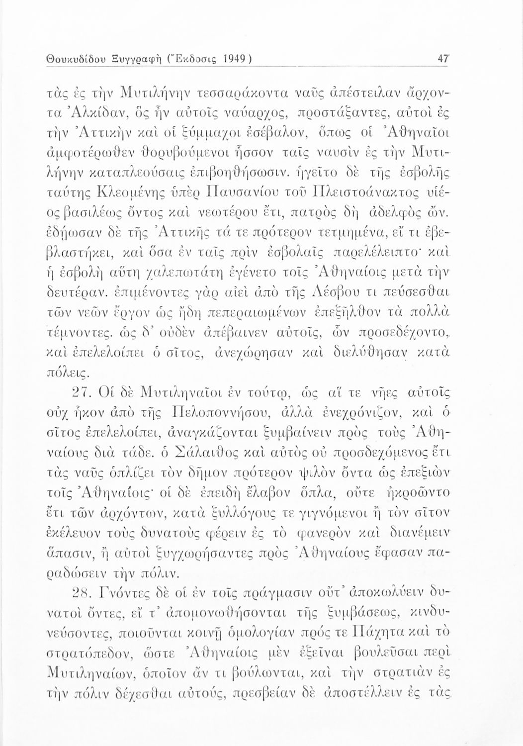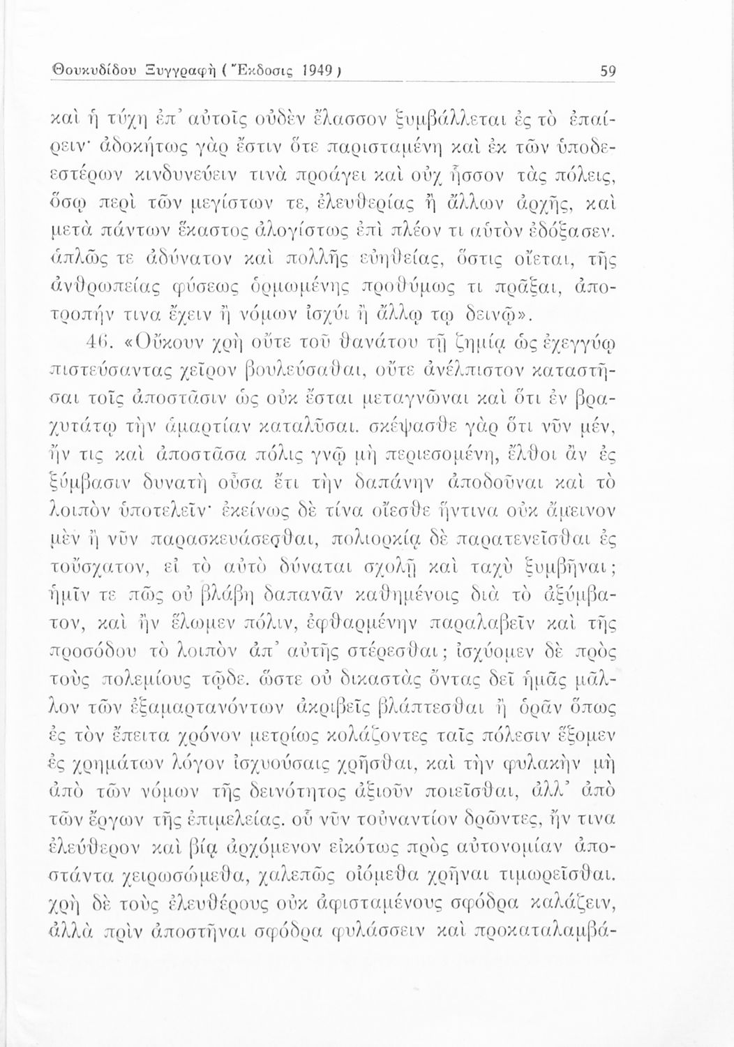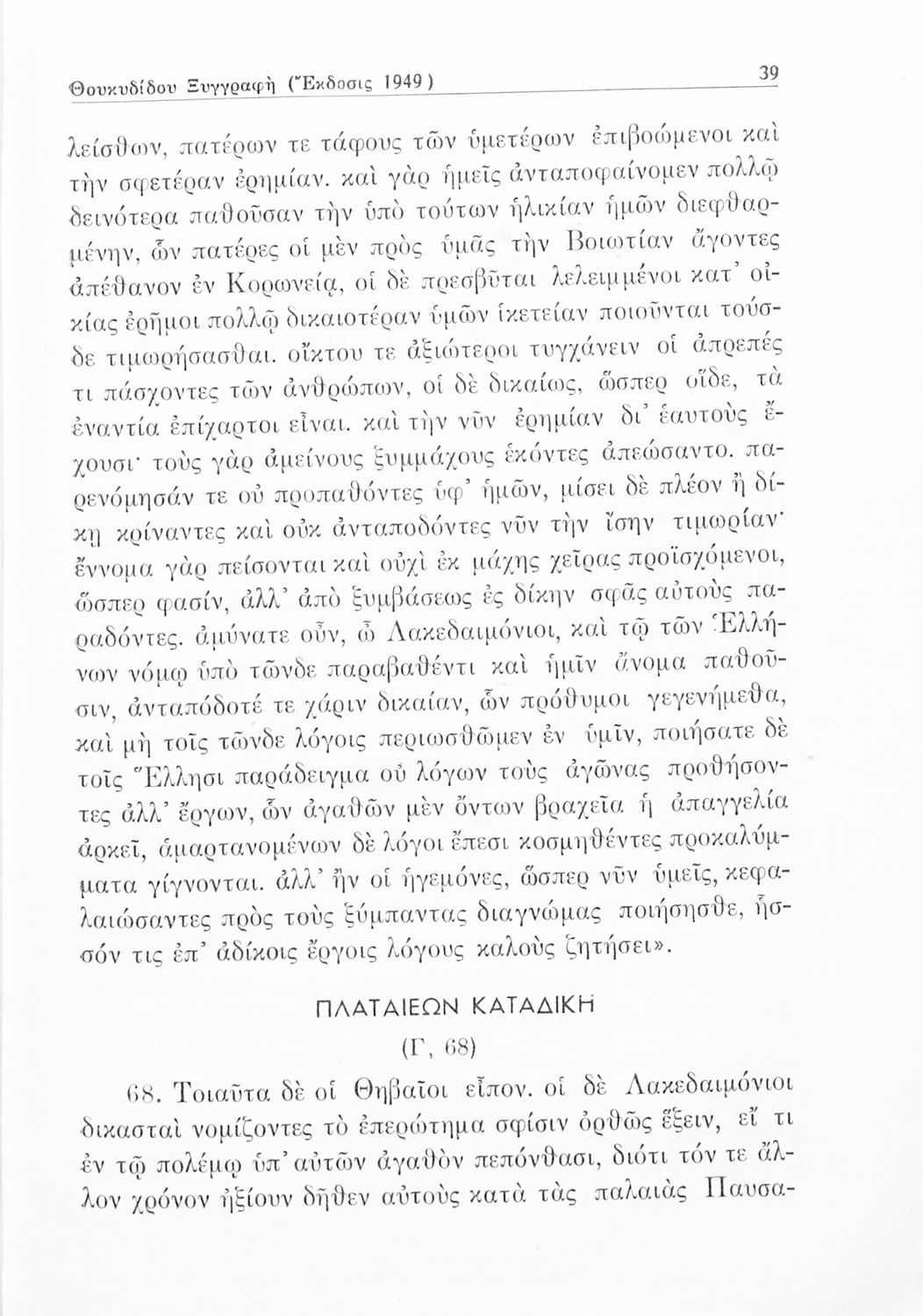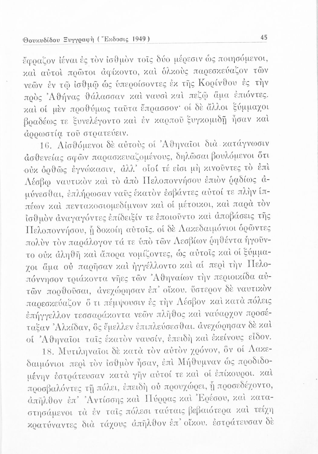 Σχολικό εγχειρίδιο Αρχαίων Ελληνικών για τις τάξεις του Γυμνασίου το οποίο περιέχει αποσπάσματα από το έργο του Θουκυδίδη, εισαγωγή στη ζωή και το έργο του και ερμηνευτικές σημειώσεις.