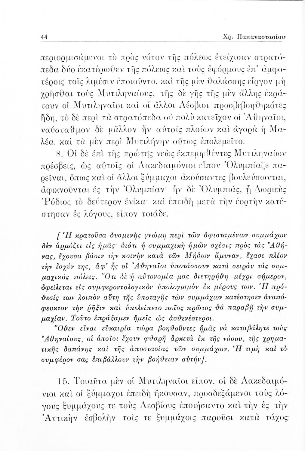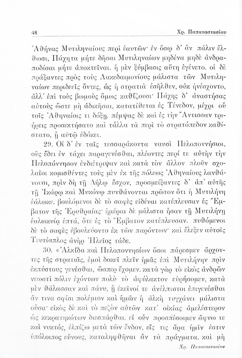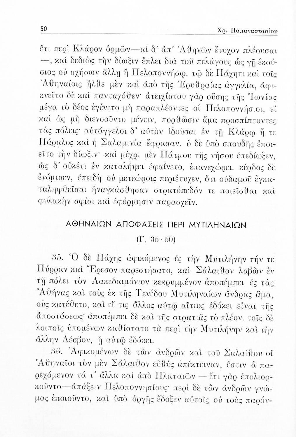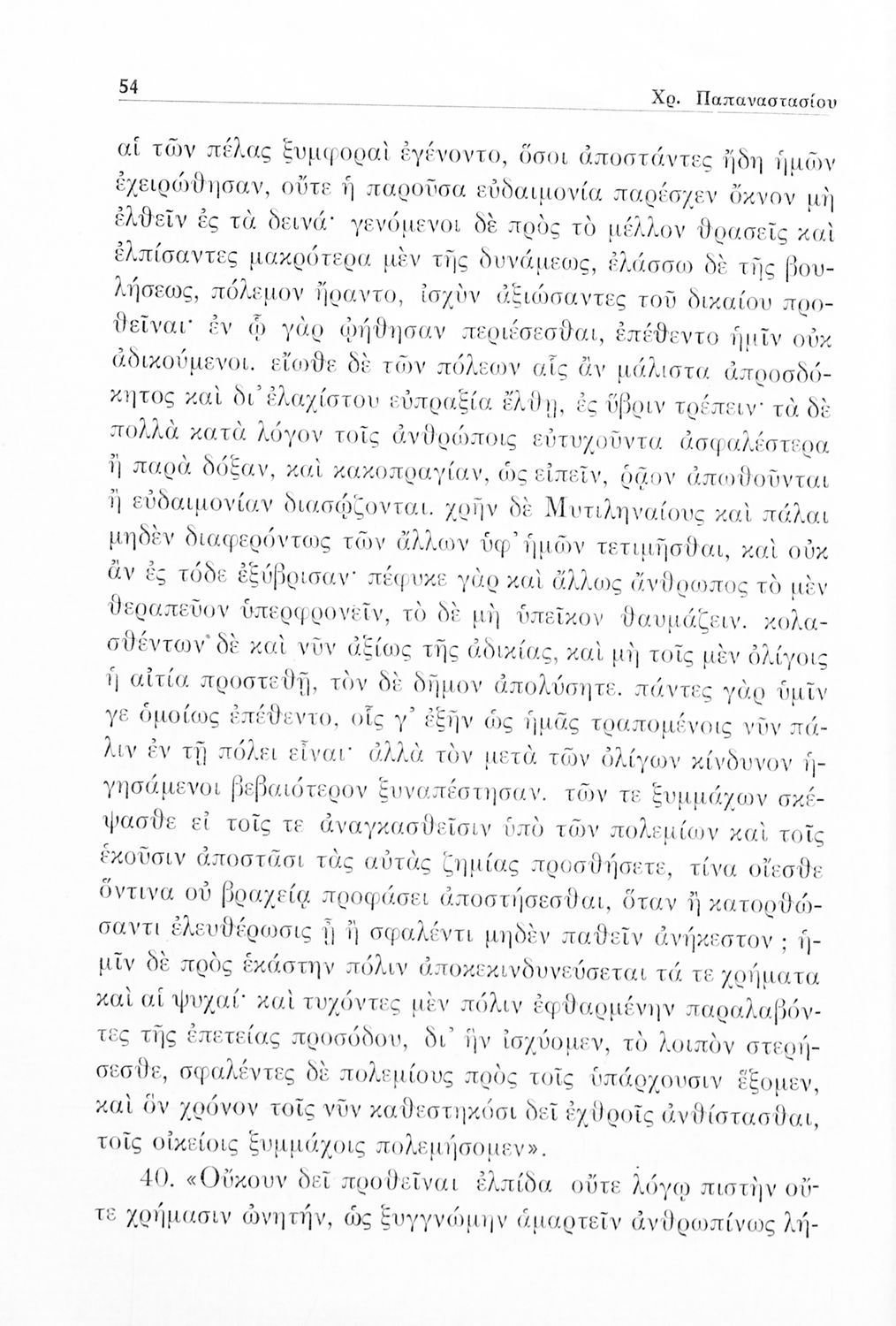 Σχολικό εγχειρίδιο Αρχαίων Ελληνικών για τις τάξεις του Γυμνασίου το οποίο περιέχει αποσπάσματα από το έργο του Θουκυδίδη, εισαγωγή στη ζωή και το έργο του και ερμηνευτικές σημειώσεις.
