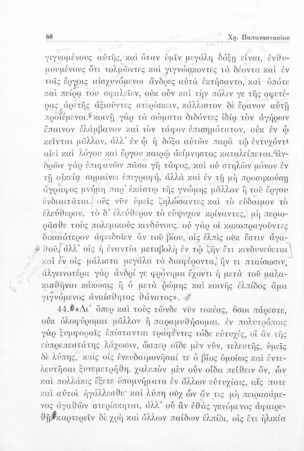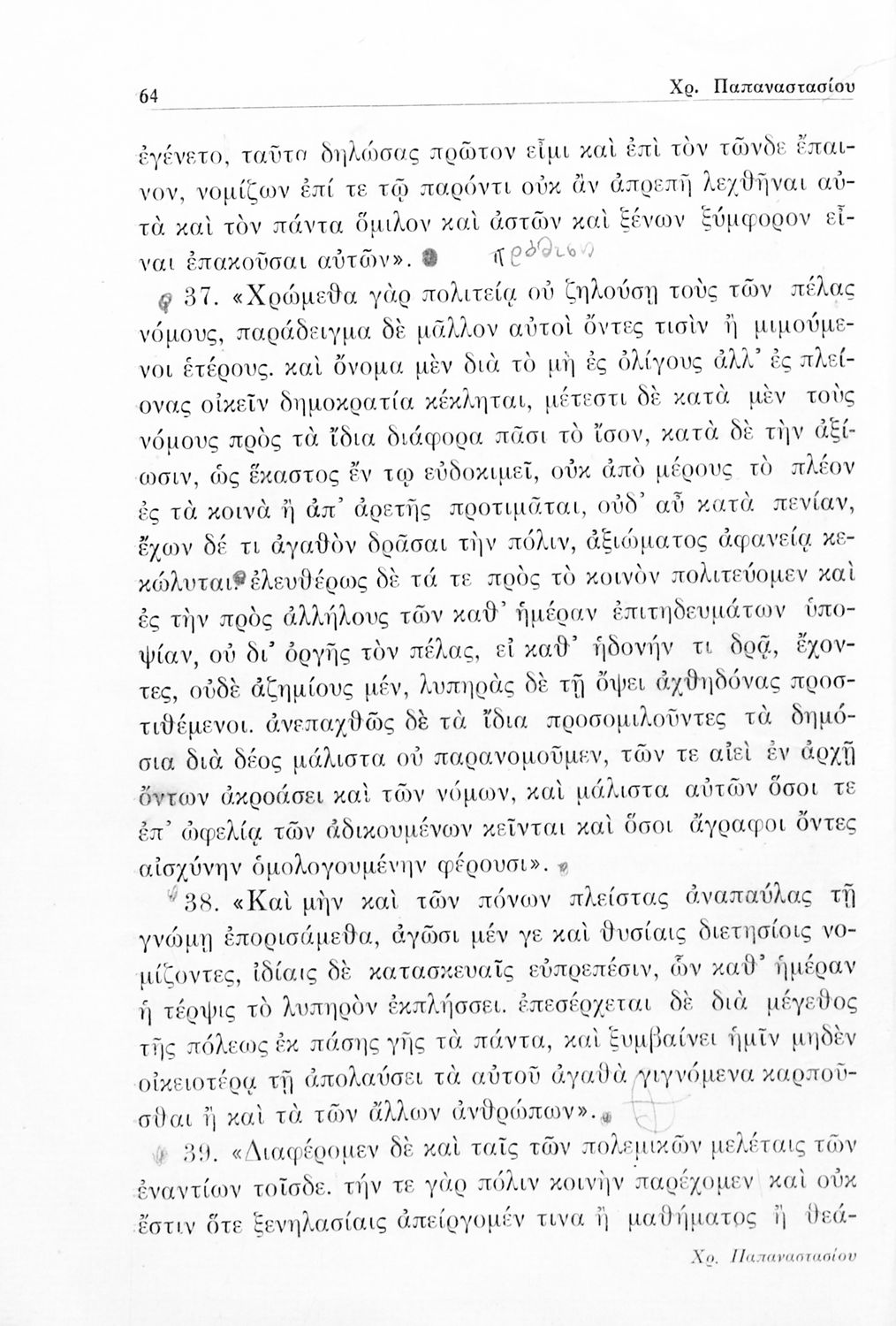 Θουκυδίδης, Χρισ. Παπαναστασίου (σχόλια)
