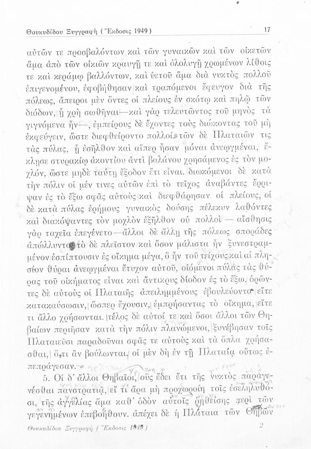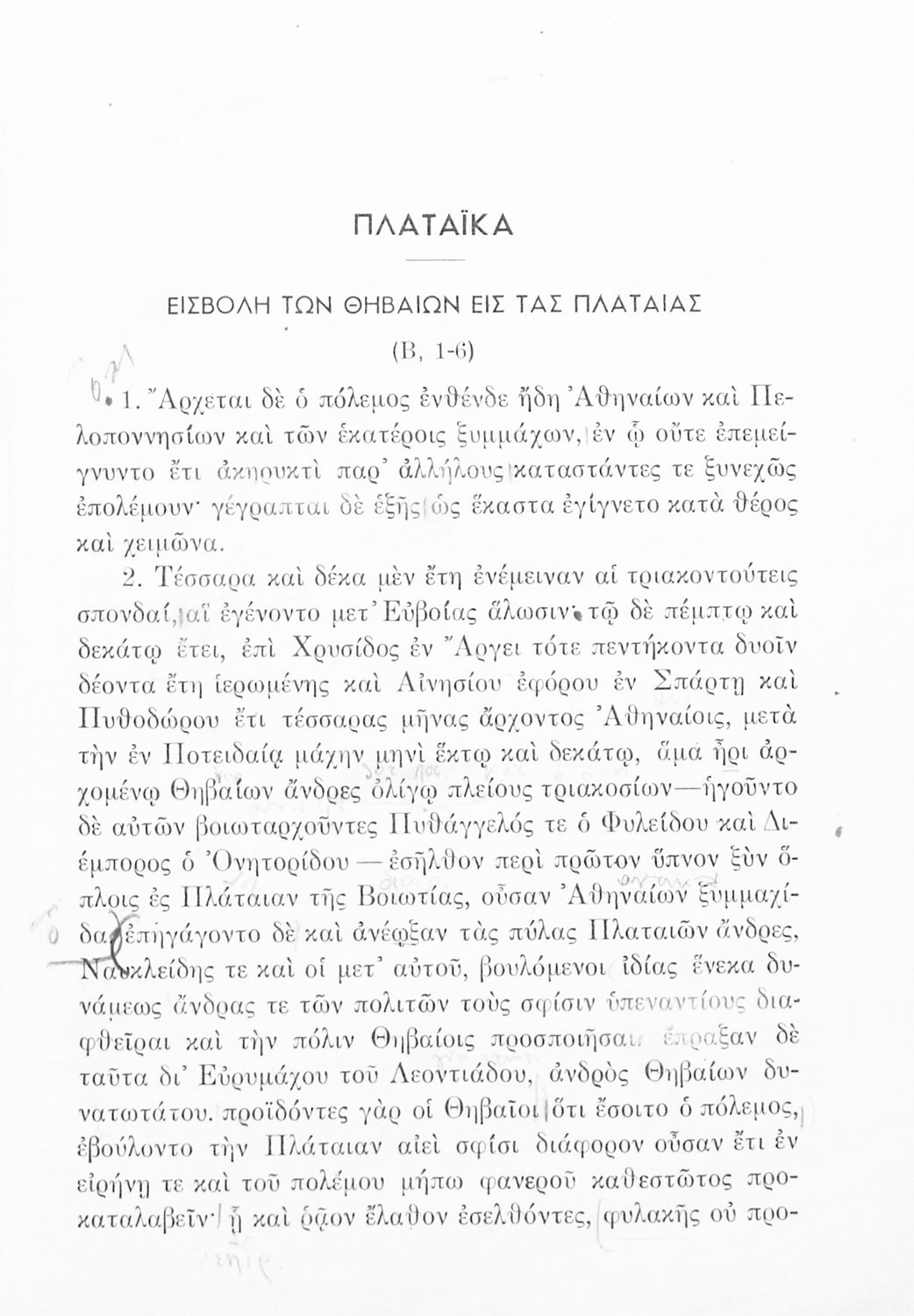 Σχολικό εγχειρίδιο Αρχαίων Ελληνικών Γυμνασίου που περιέχει εισαγωγή στη ζωή και το έργο του Θουκυδίδη, αποσπάσματα από τα Πλαταιϊκά, τα Λεσβιακά και τον Επιτάφιο του Περικλή και ερμηνευτικές σημειώσεις.