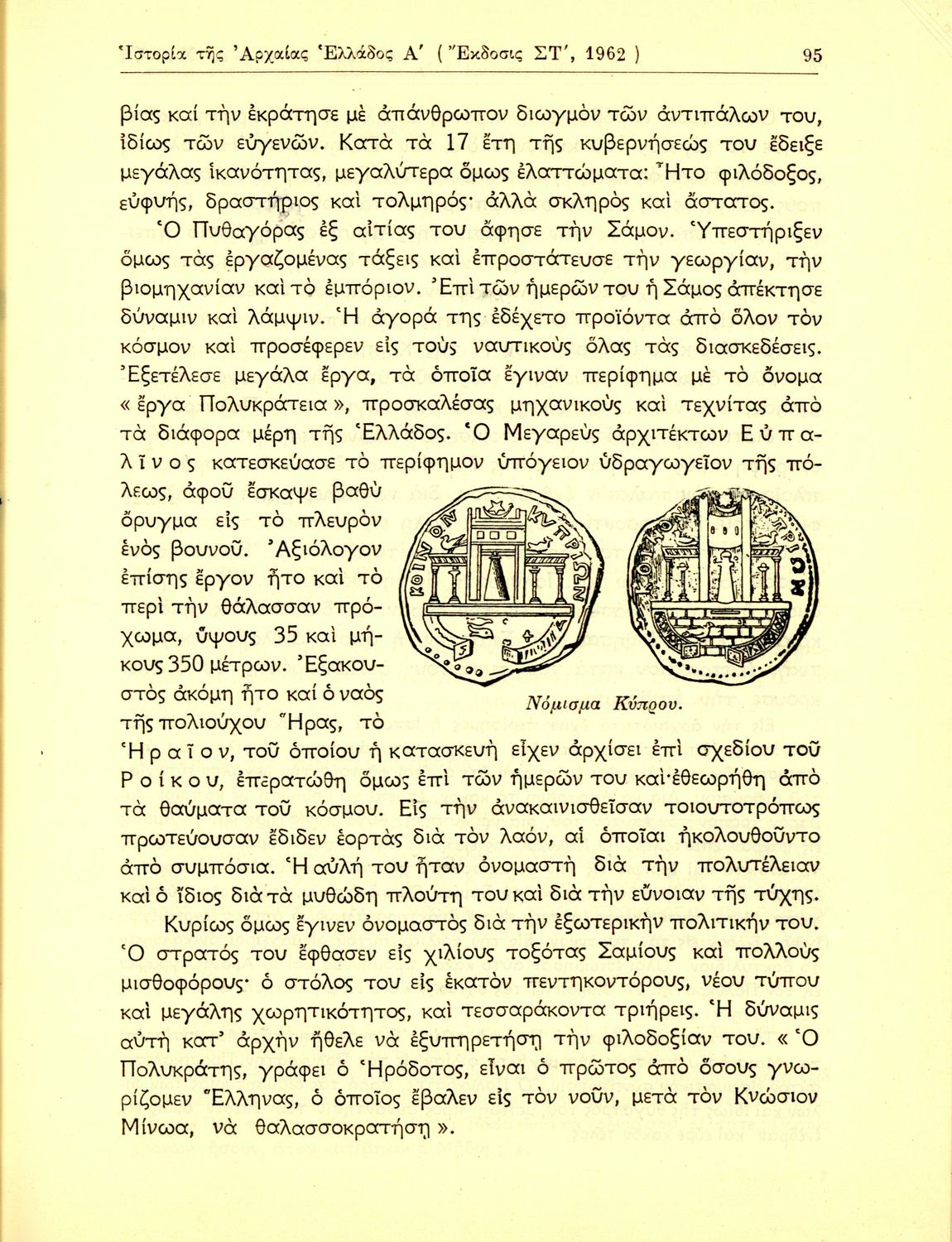 Σχολικό εγχειρίδιο Ιστορίας Α΄ Γυμνασίου που καλύπτει την περίοδο από τους προϊστορικούς χρόνους ως τις μεταρρυθμίσεις του Κλεισθένη. Περιέχει και εκτενή αναφορά στην ανάπτυξη των γραμμάτων, των τεχνών και του εμπορίου.