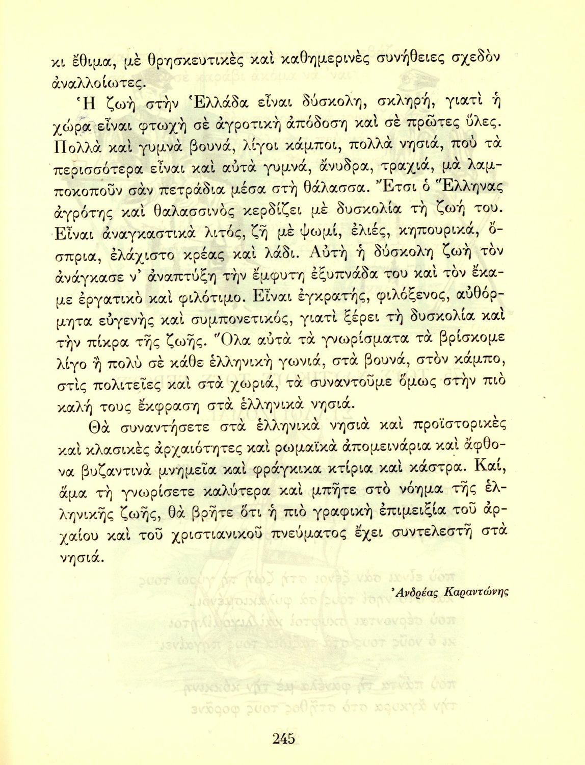 Αναγνωστικό ΣΤ΄ Δημοτικού που αντλεί τα θέματά του από τη θρησκευτική, εθνική, οικογενειακή, κοινωνική και επαγγελματική ζωή και την σύγχρονη ελληνική ιστορία. Φέρει το σύμβολο της δικτατορίας.