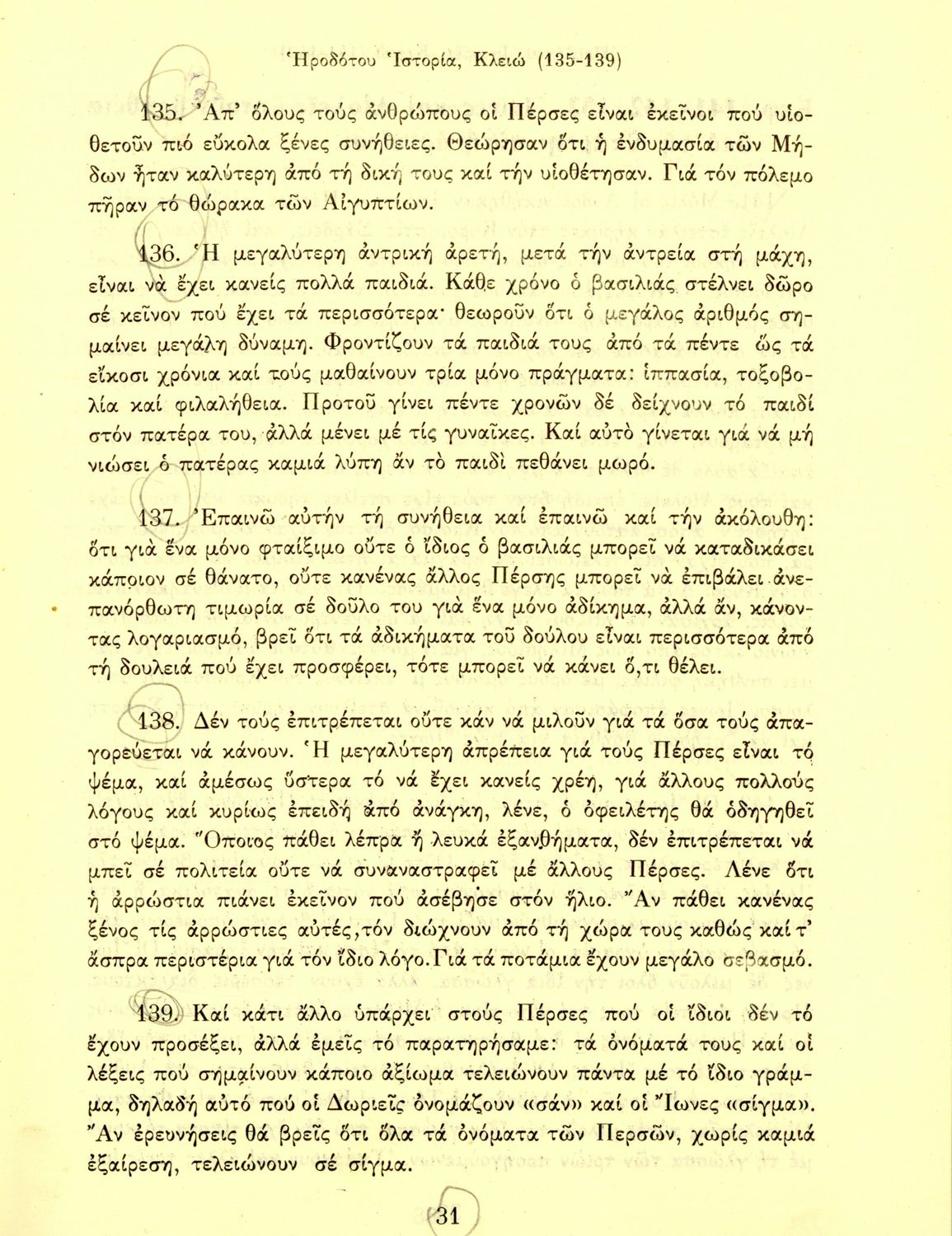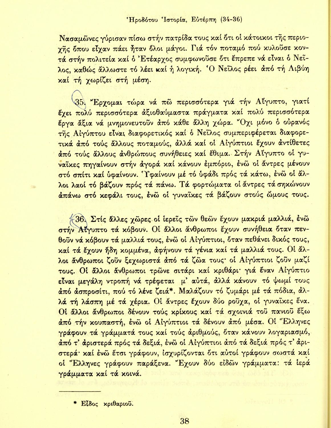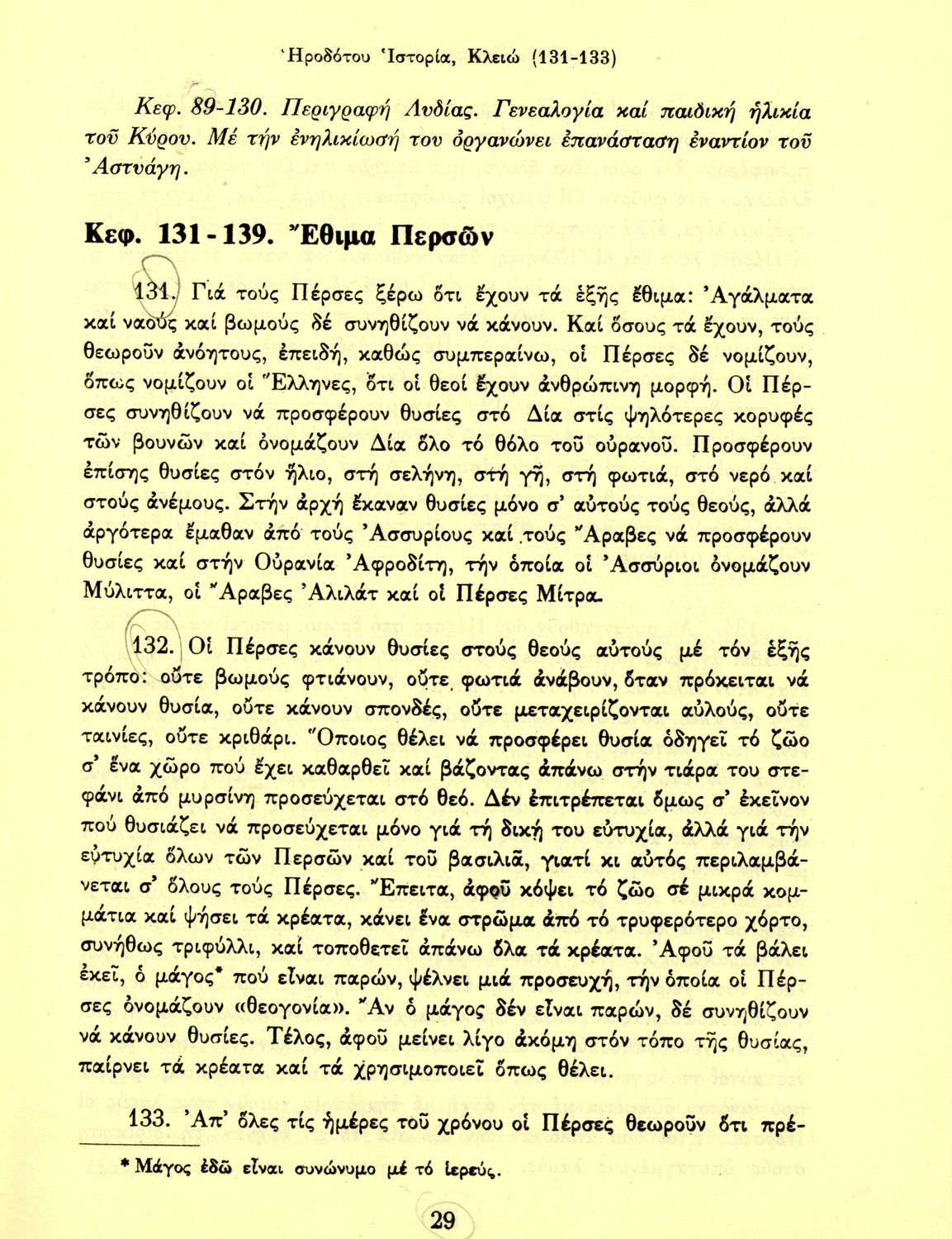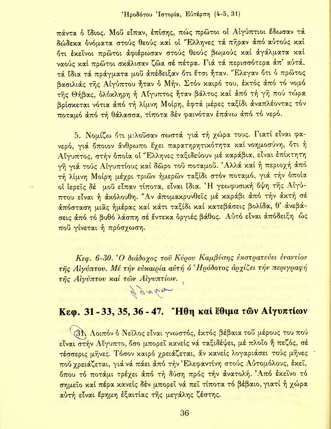 Σχολικό εγχειρίδιο Αρχαίων Ελληνικών Α΄ Γυμνασίου που περιλαμβάνει αποσπάσματα από την Ιστορία του Ηρόδοτου σε μετάφραση, εισαγωγή στη ζωή, το έργο και τη διάλεκτό του και ερμηνευτικά και πραγματολογικά σχόλια.