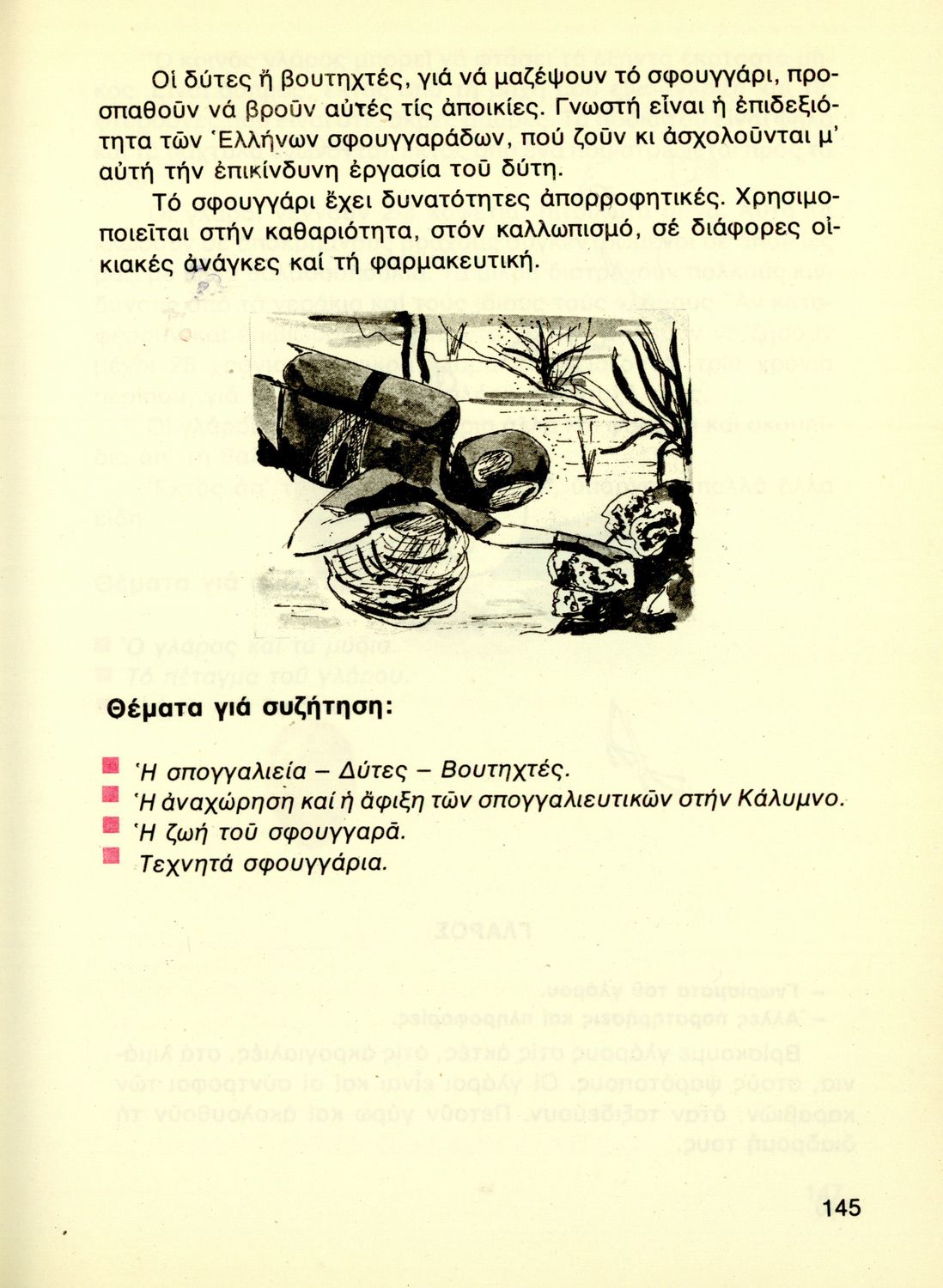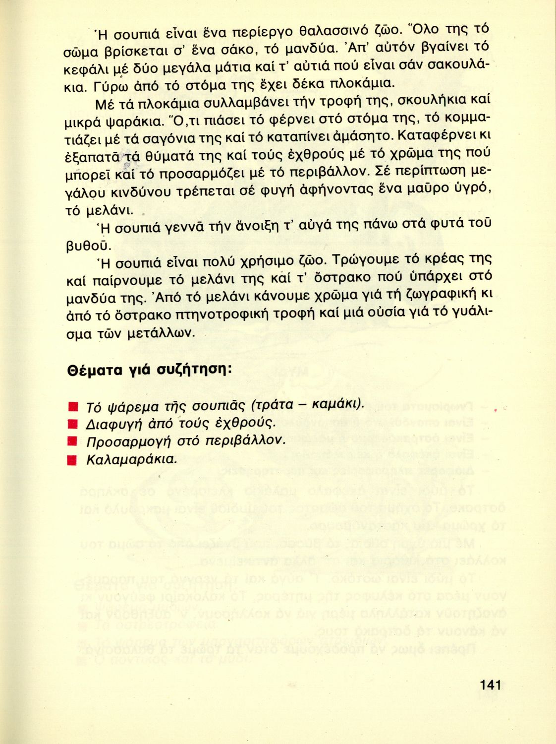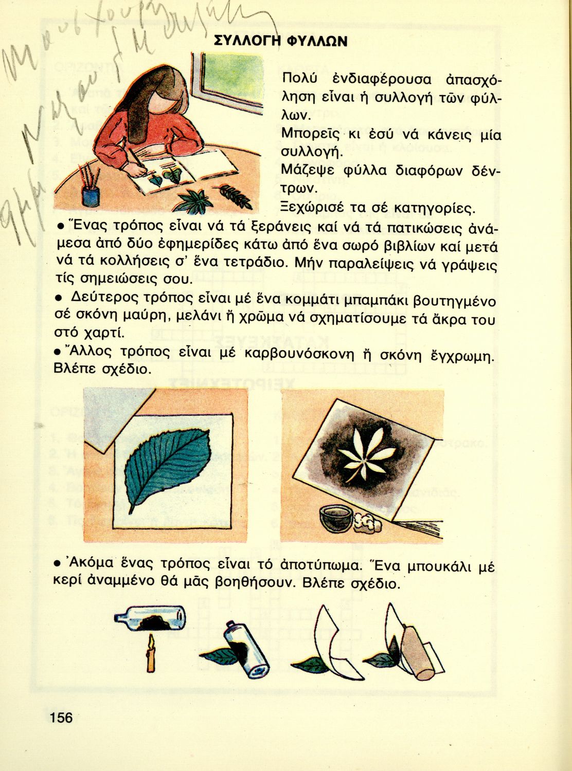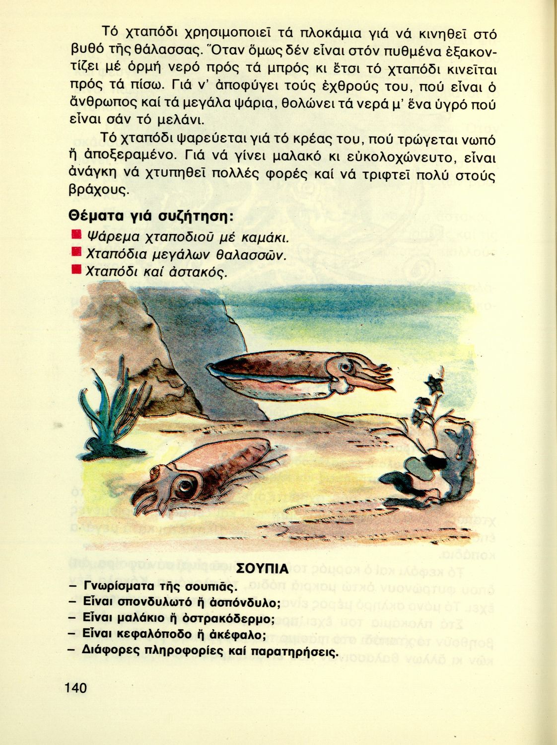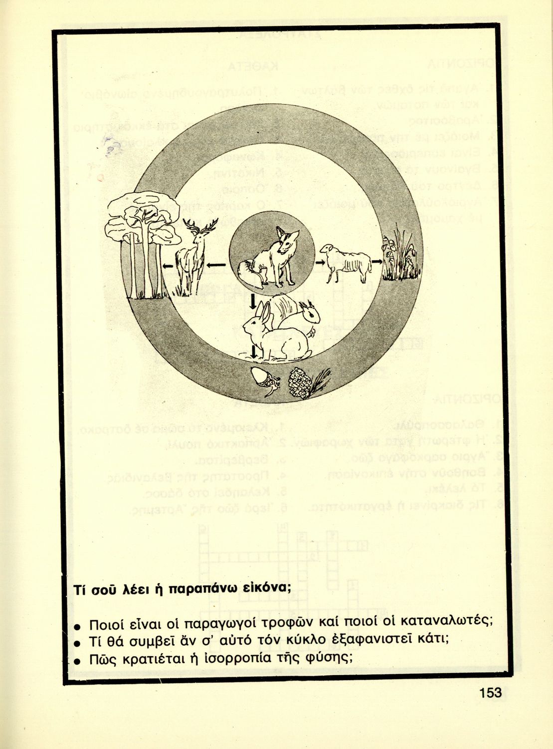 Σχολικό εγχειρίδιο για την Δ΄ Δημοτικού για το μάθημα της Μελέτης του Περιβάλλοντος. Το εγχειρίδιο περιλαμβάνει εισαγωγικά γενικές γνώσεις για το περιβάλλον, για το έδαφος κ.α. Το κύριο μέρος του βιβλίου ασχολείται με όλους τους έμβιους οργανισμούς της ξηράς και της θάλασσας και την σημασία και σπουδαιότητα του φυσικού και ζωικού βασιλείου. Το τελευταίο κεφάλαιο περιλαμβάνει την ανακεφαλαίωση των προηγούμενων αλλά δίνει ακόμα πολύτιμες συμβουλές για τους μικρούς μαθητές και μαθήτριες για την καλύτερη και ασφαλέστερη καθημερινότητά τους.
