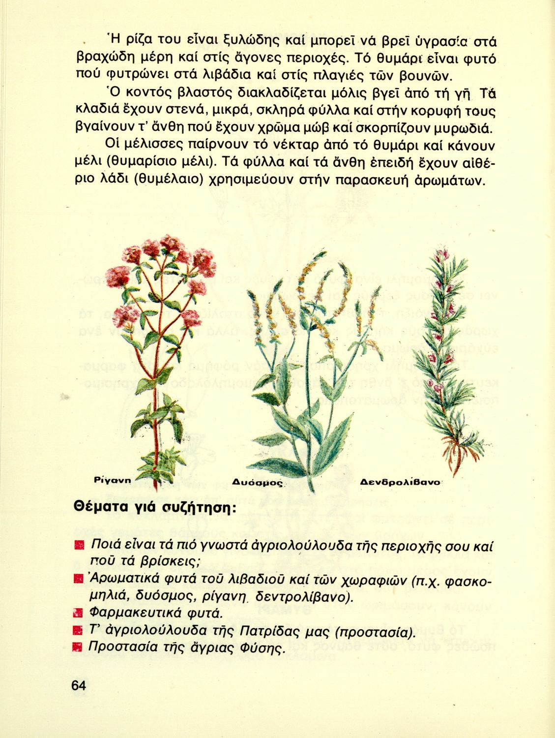 Σχολικό εγχειρίδιο Φυτολογίας για τη Δ' Δημοτικού. Πληροφορεί τους μαθητές για τον τρόπο παρατήρησης του περιβάλλοντος και δίνει στοιχεία για φυτά και ζώα που υπάρχουν στο ελληνικό φυσικό περιβάλλον. Κάθε ...