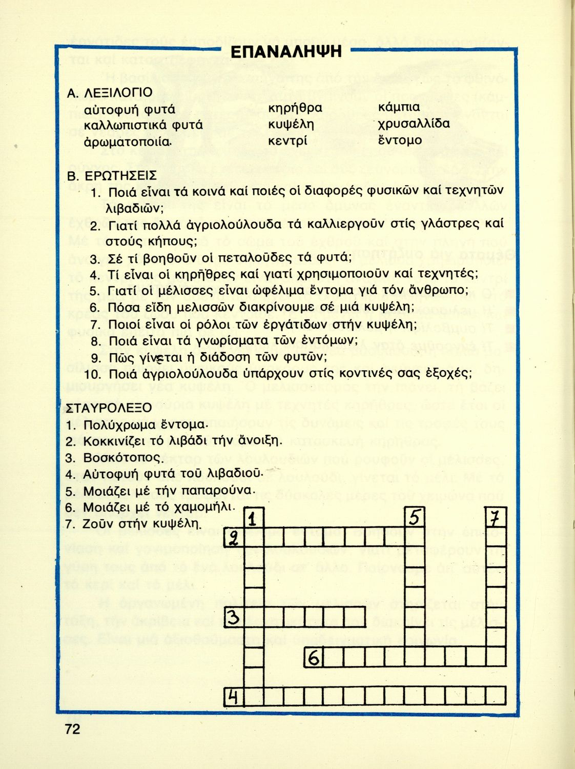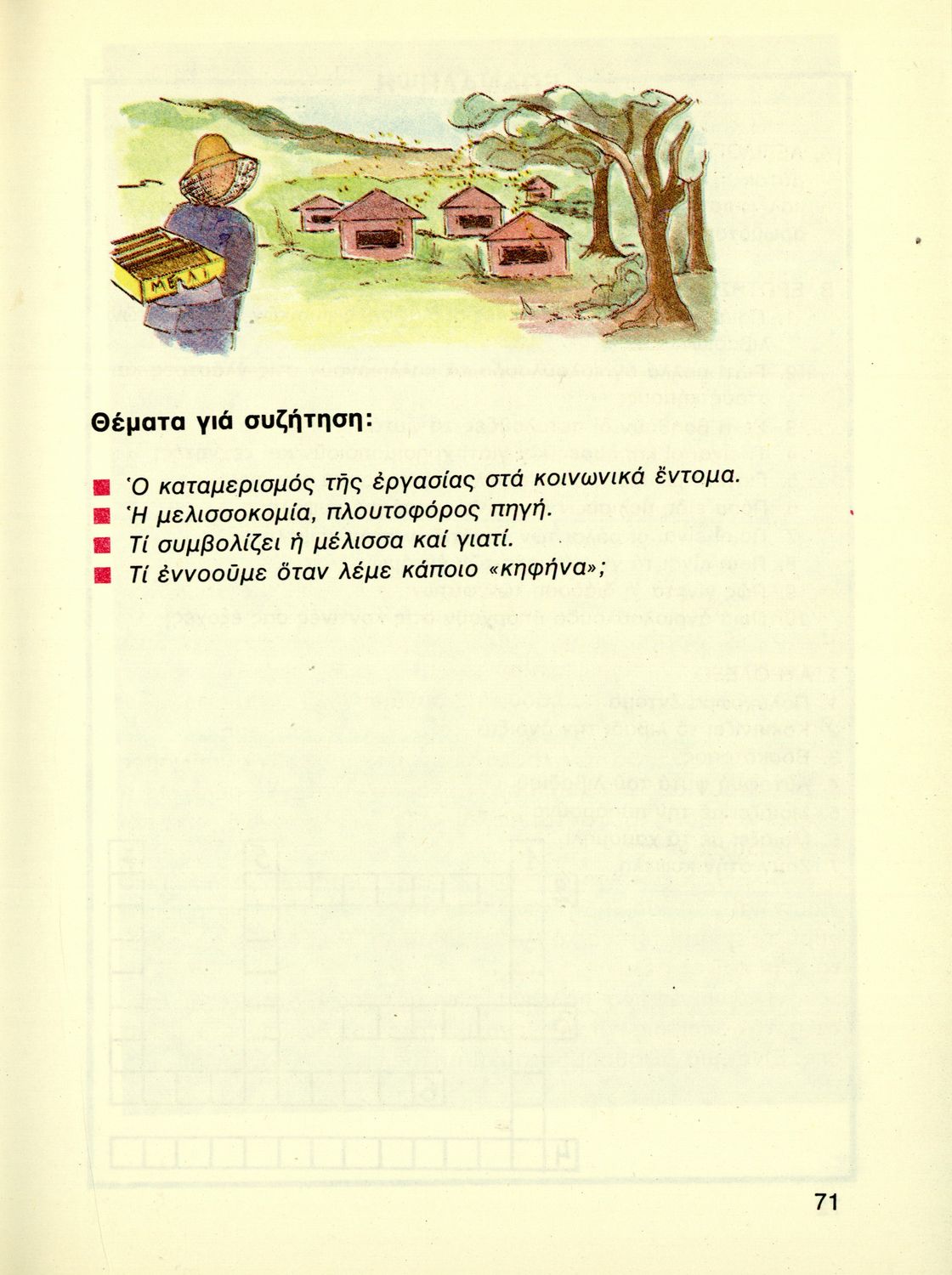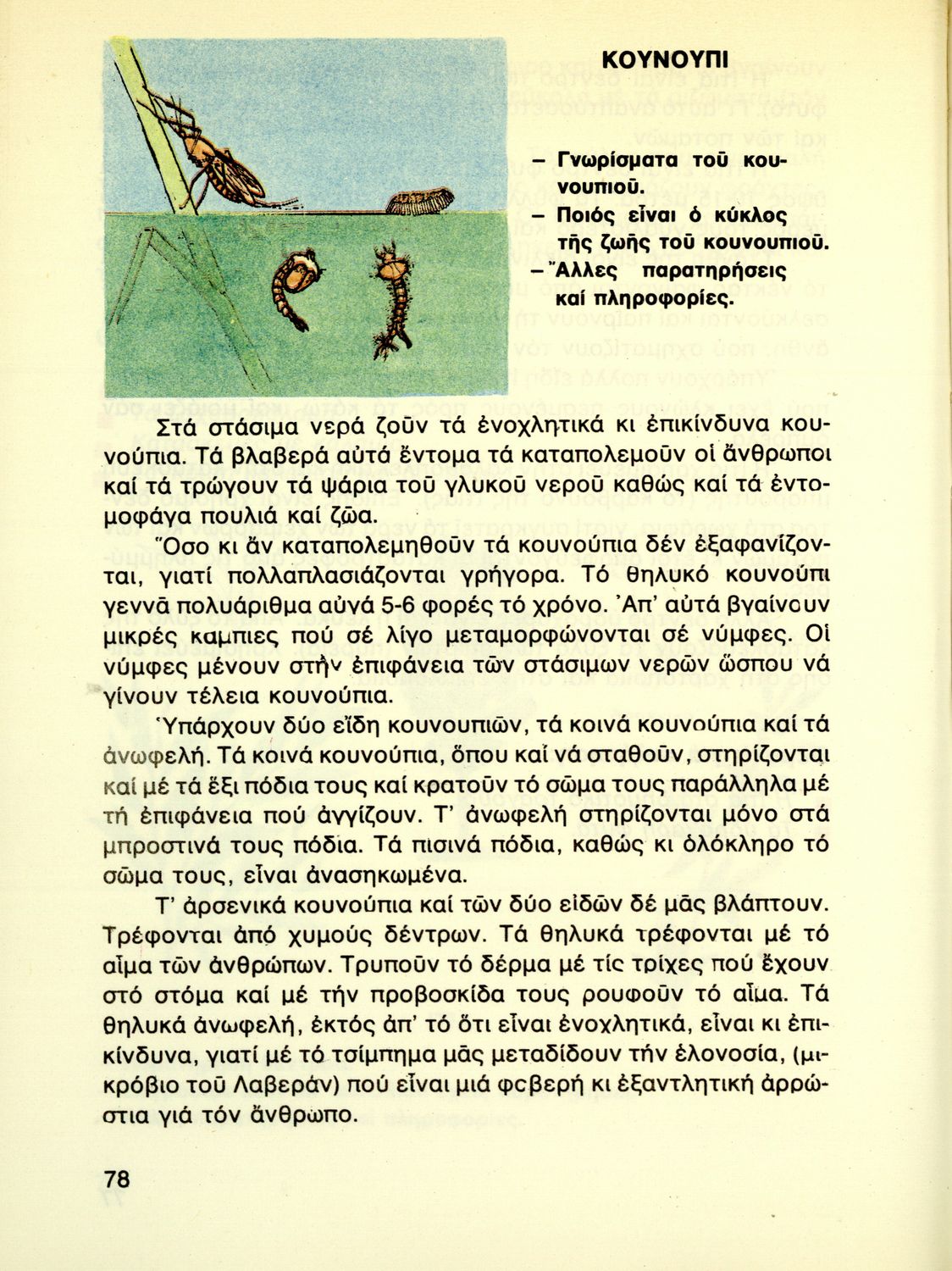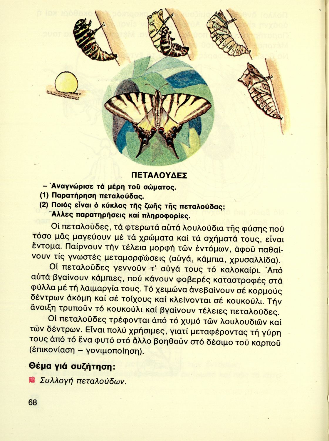 Σχολικό εγχειρίδιο Φυτολογίας και Ζωολογίας για τη Δ΄ Δημοτικού που γράφτηκε στη σειρά εκδόσεων της Σχολή Μωραΐτη. Παρουσιάζει πλήθος φυτών και ζώων και εστιάζει στην αναπαραγωγή, τους εχθρούς, τις διατροφικές